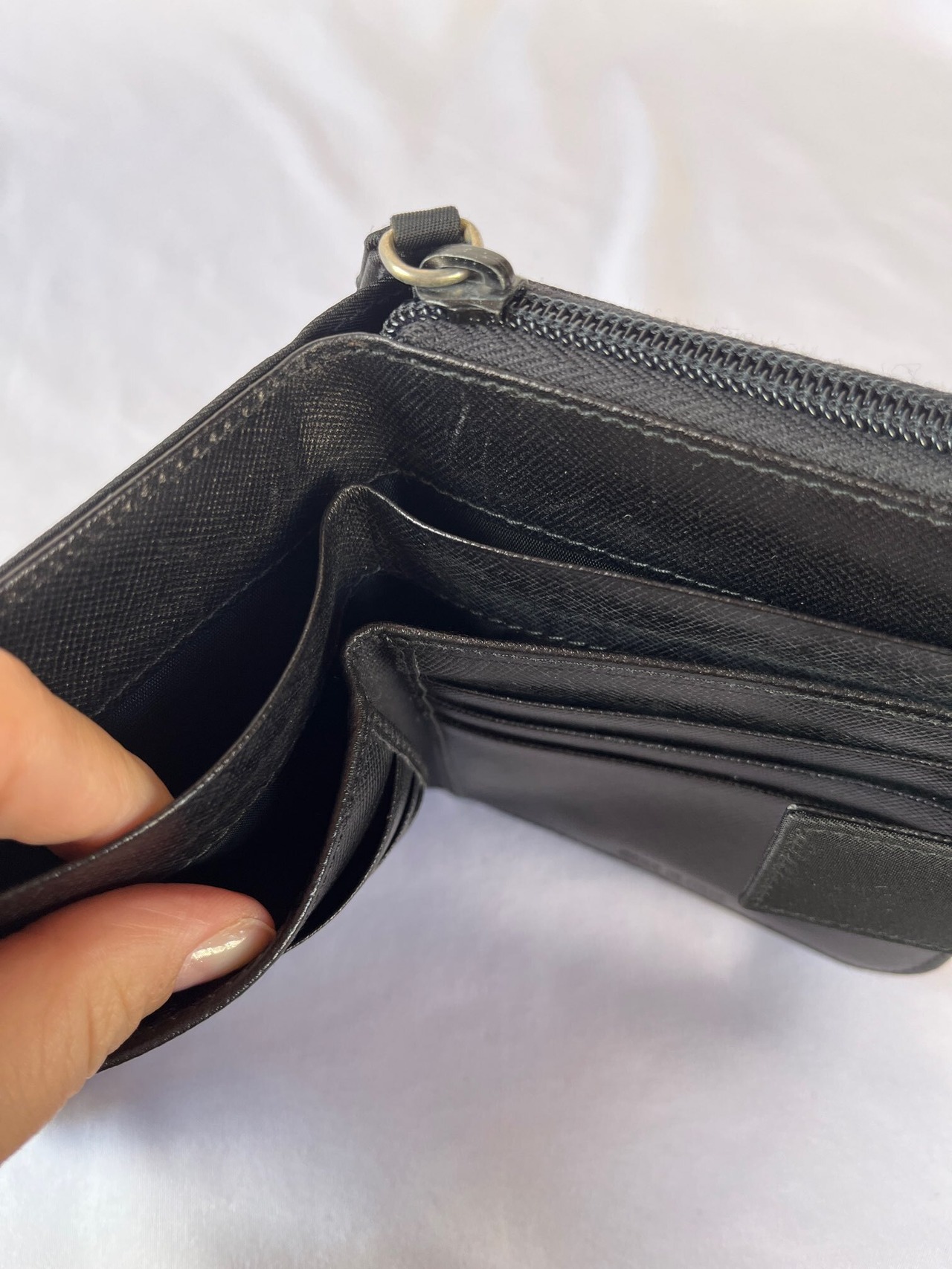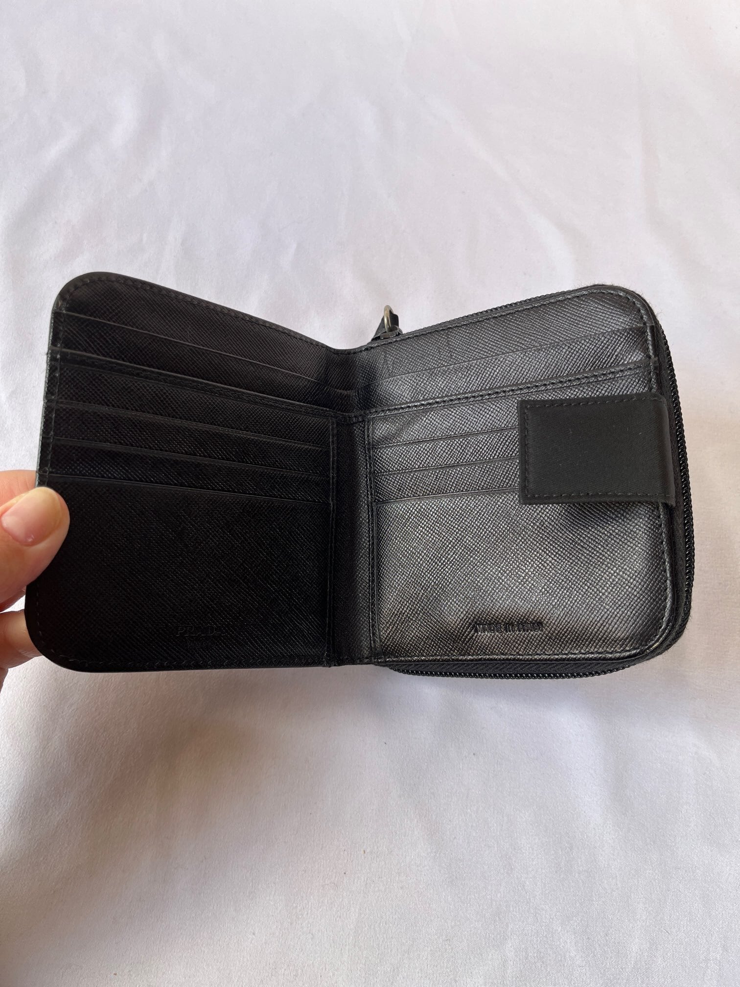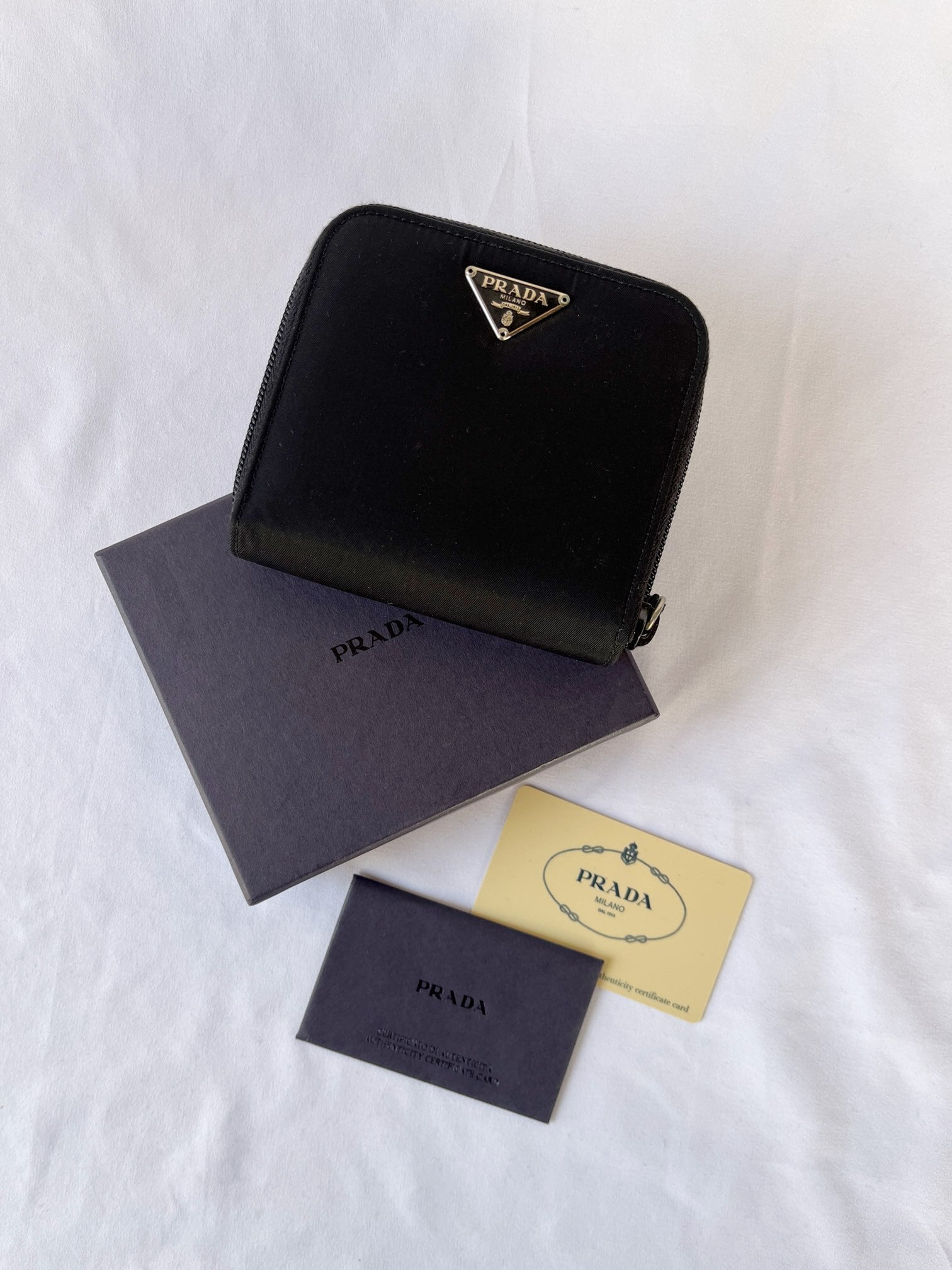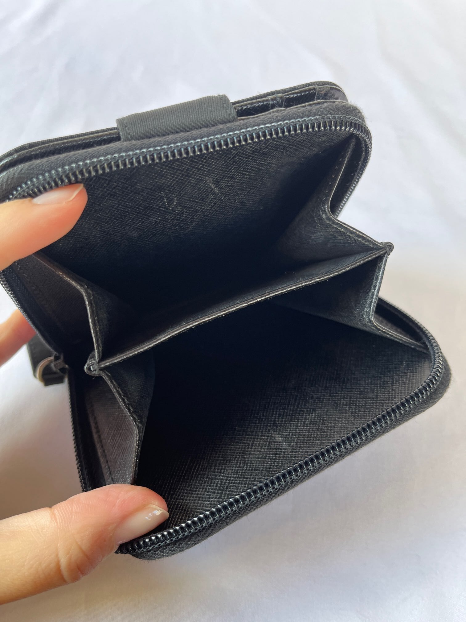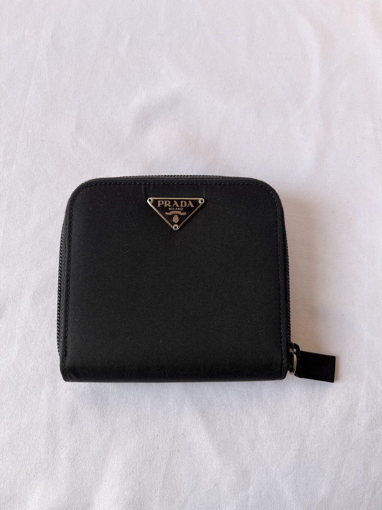 センターの三角ロゴが目をひくPPADAおりたたみ財布。ブラックのナイロン地がモードで洗味された 印影⭐︎コインポケットのZipがサイドまで開くので、中も見やすいつくりです。カードもたっぷり入り、機能的な一品です。箱付きなのでギフトにもオススメ!