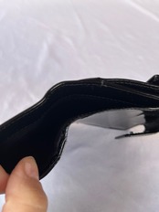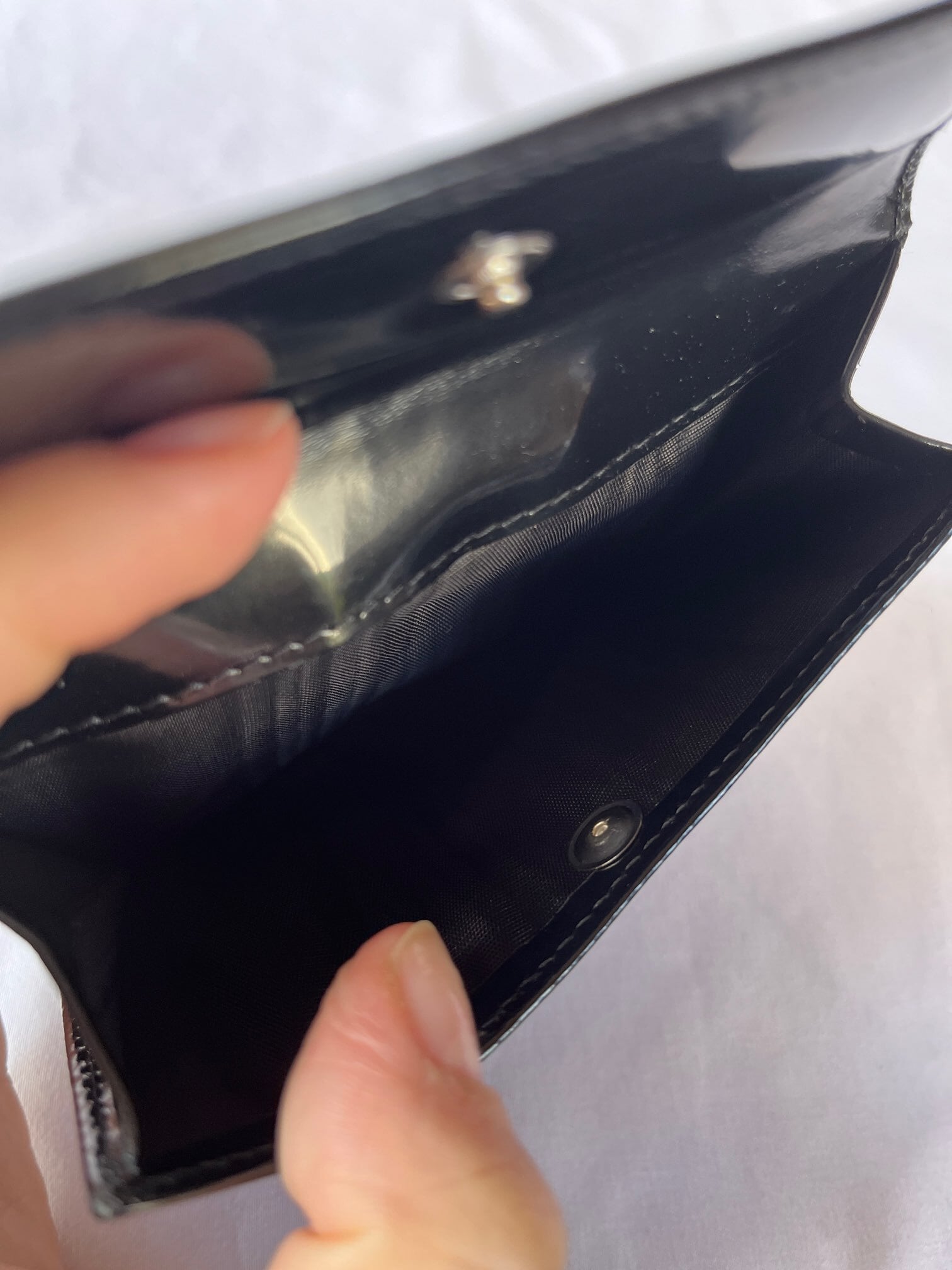 エンボスのブランドロゴがさりげなく、上品 な佇まい。オールエナメルでムダのないすっきりとたデザインが魅力的。
