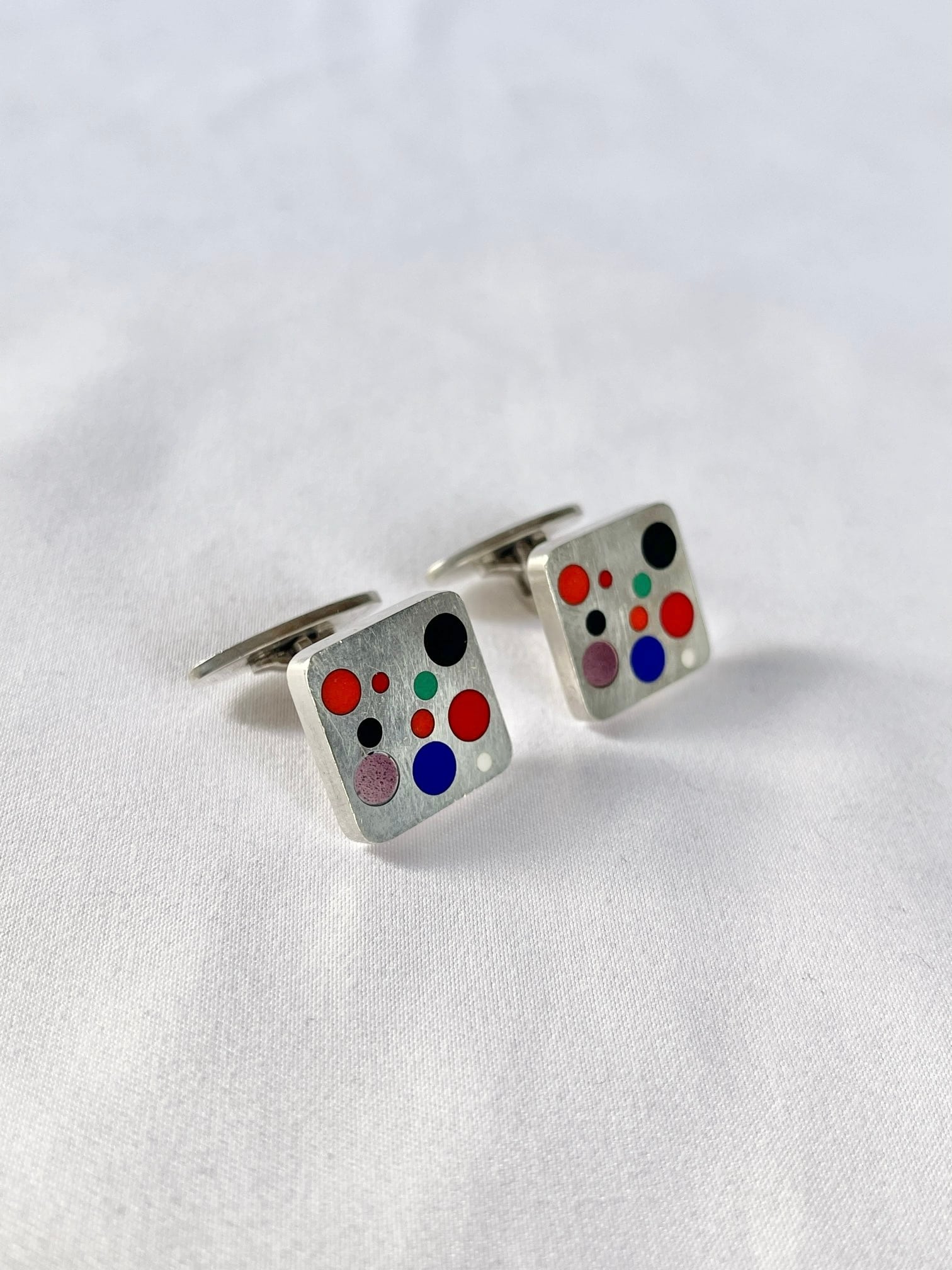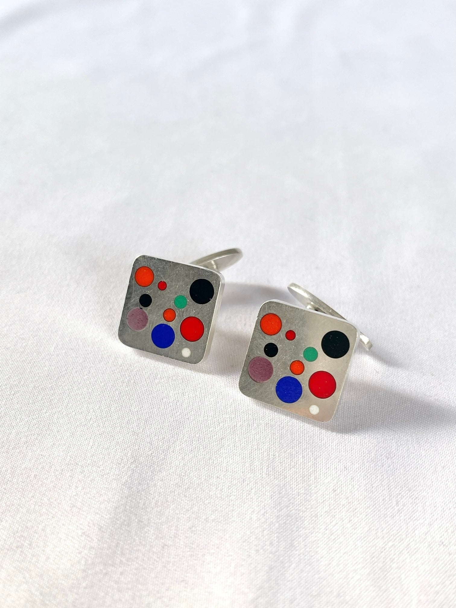 Silver925にマルチカラーのドットモチーフがアーバンなGEORGE JENSEN Vintageカフス。
