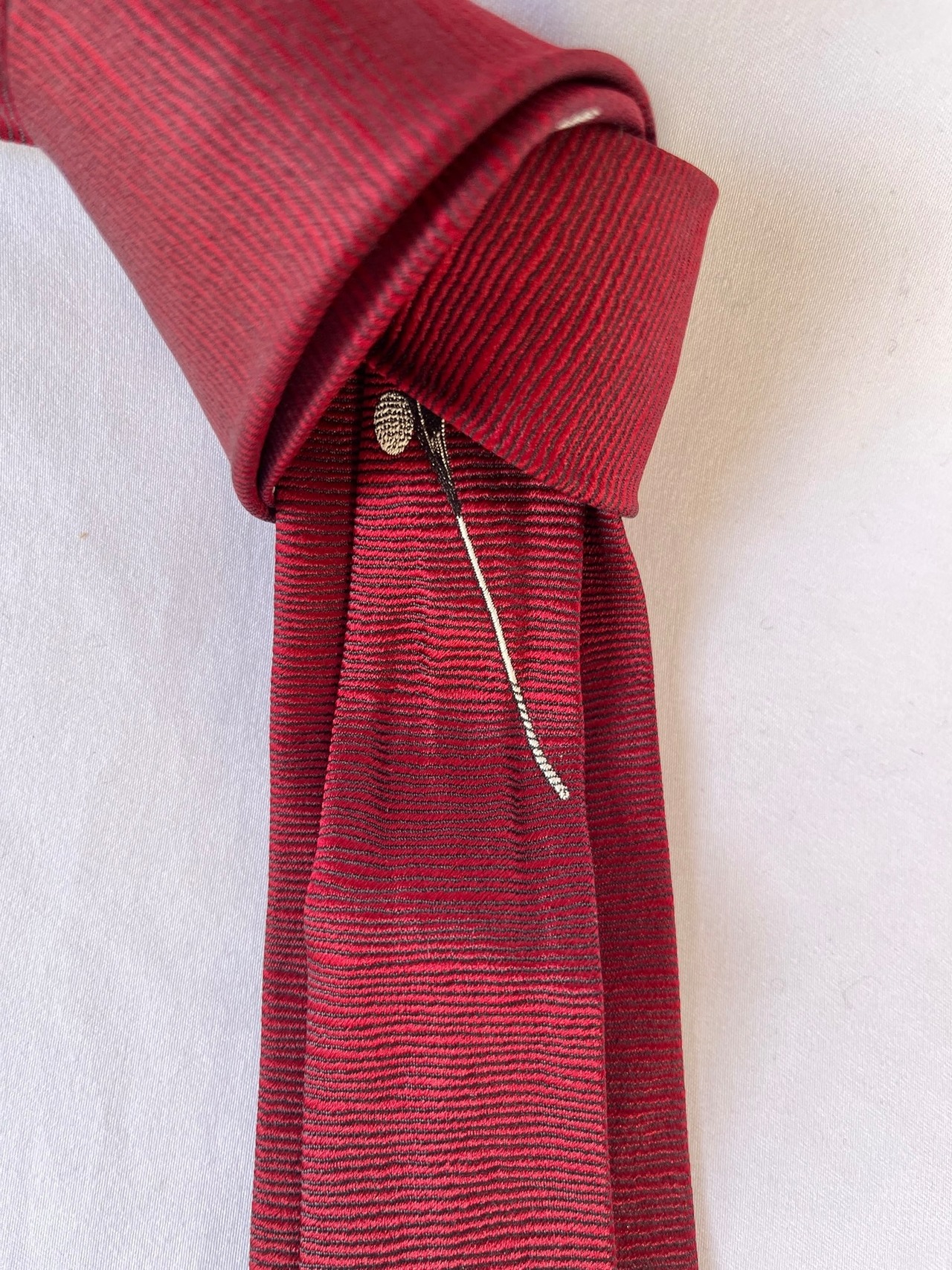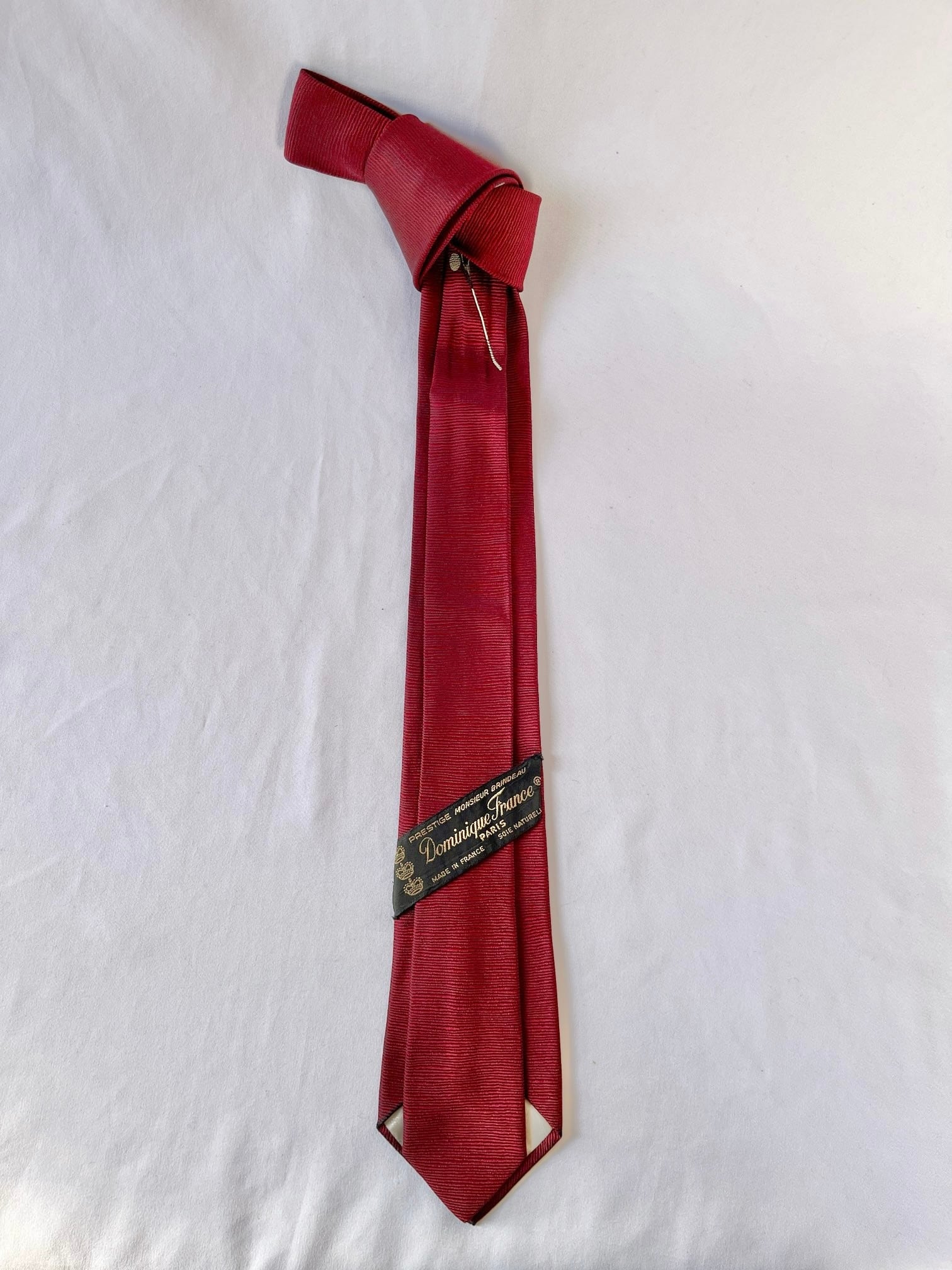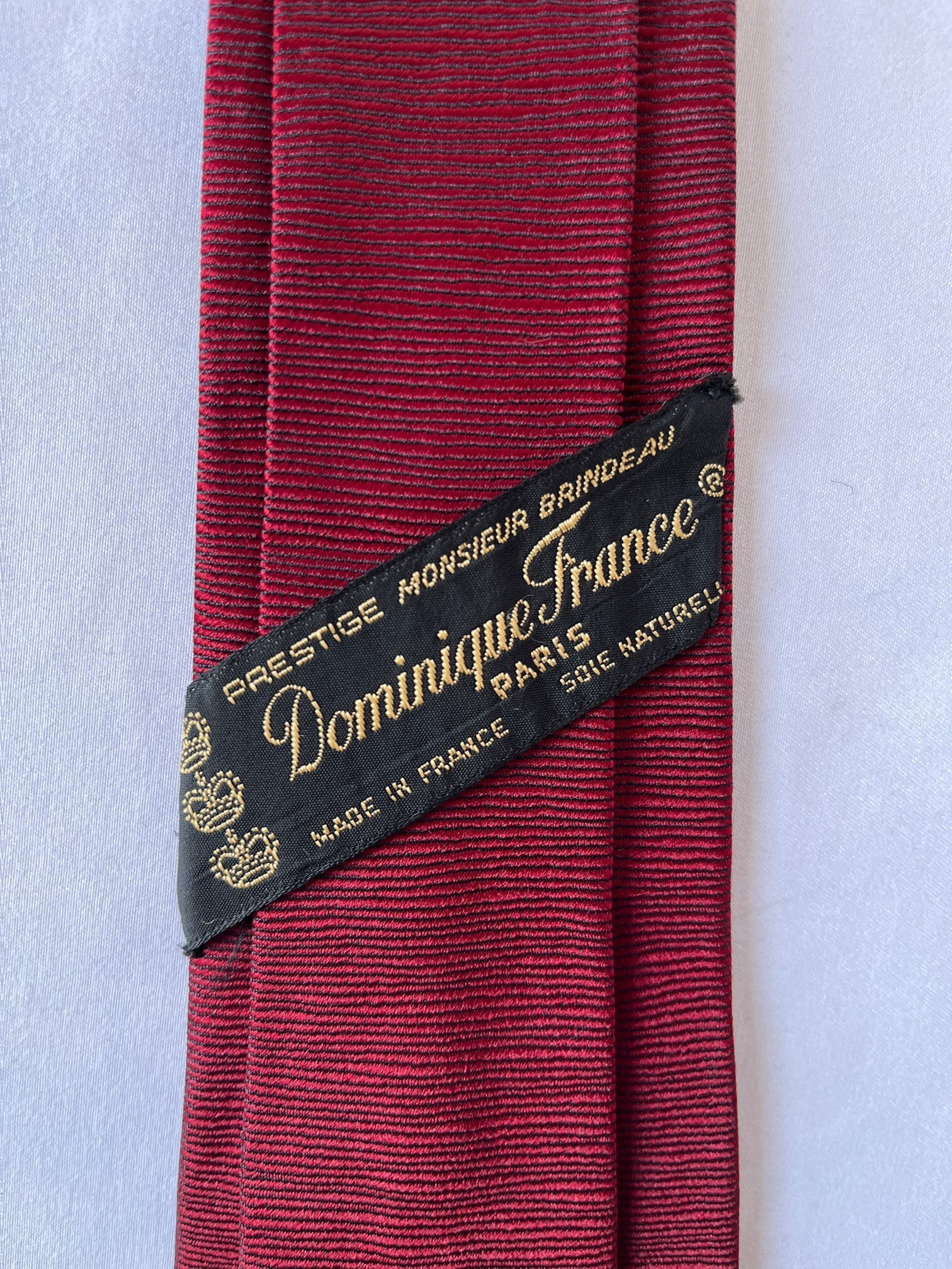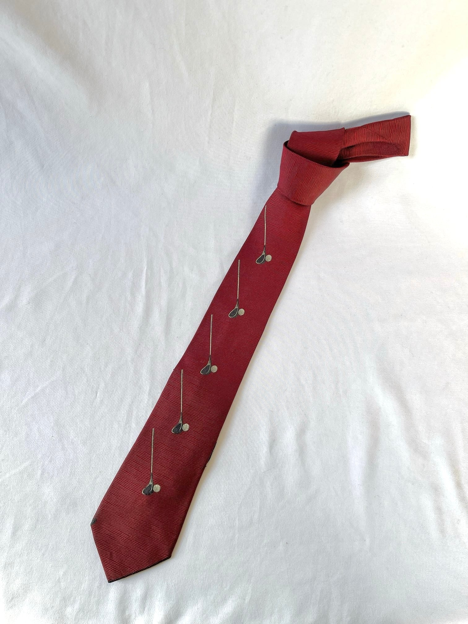 パリの老舗ネクタイメーカー「ドミニクフランス」の Vintage ネクタイ。通常の絹の3倍近い密度を持つヘビーシルクを使用した最高級品質。ボルドー地にゴルフパットとボールが遊び心のあるデザインです。