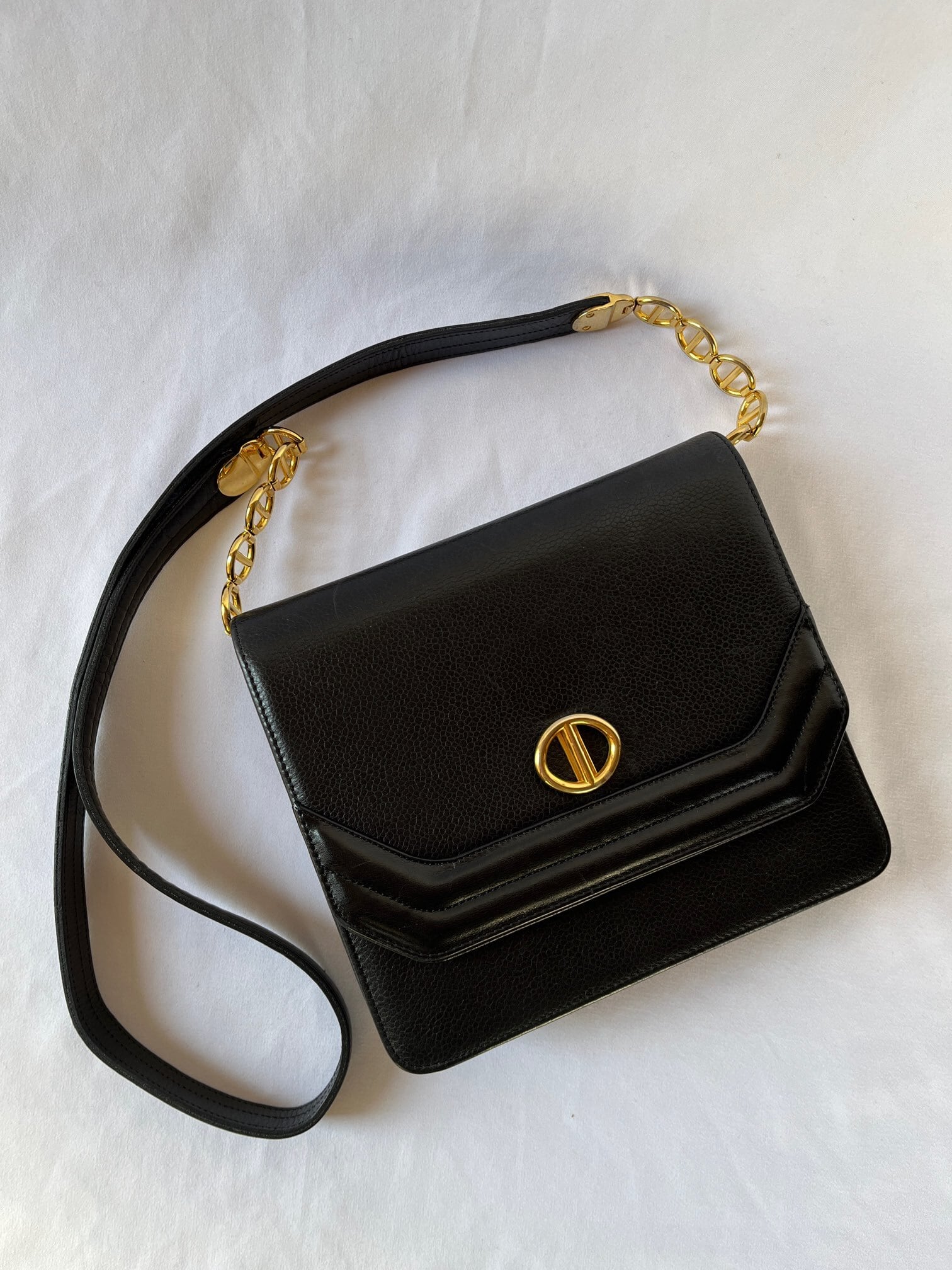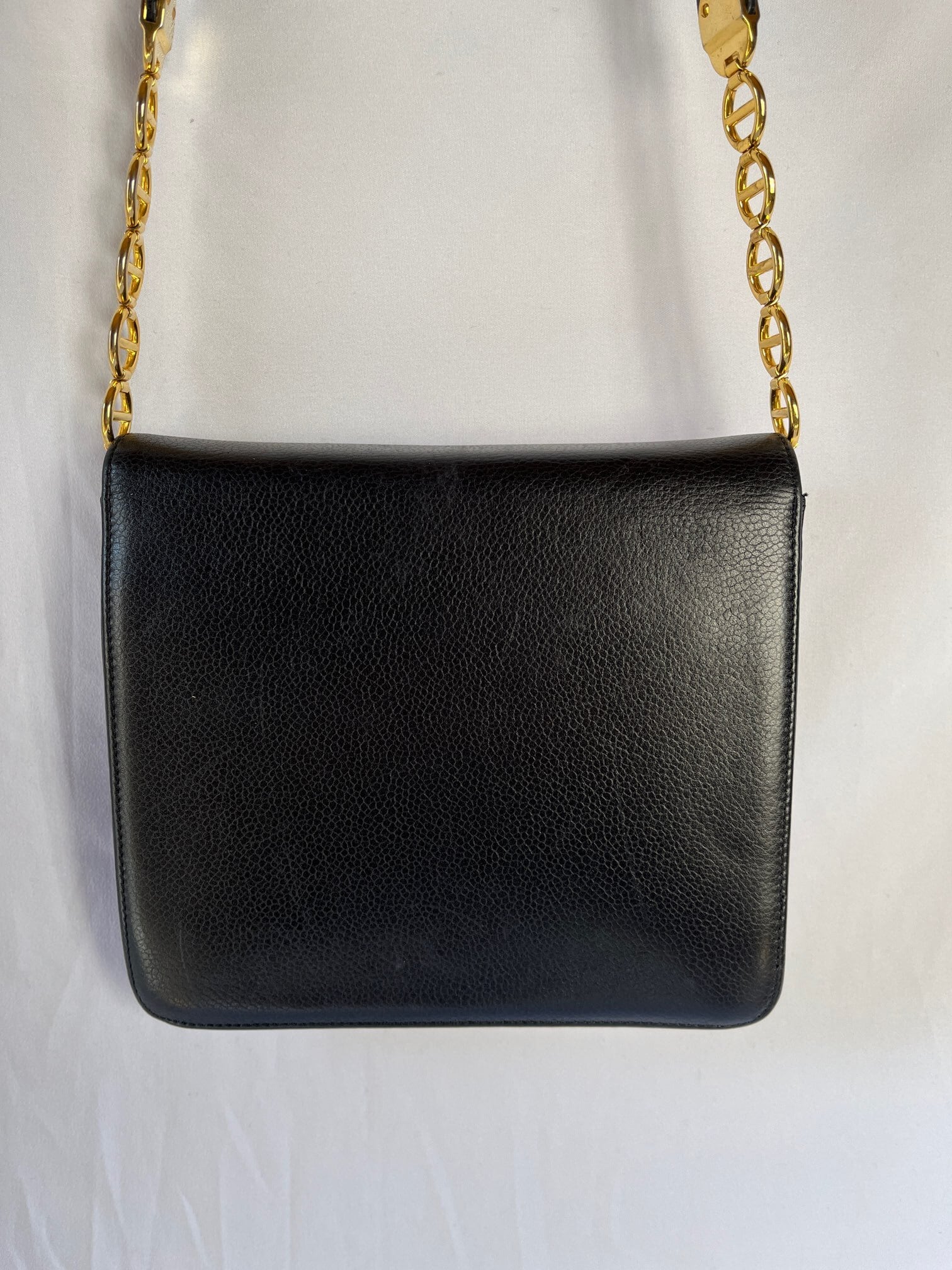 Dior 80's “Gold CD Logo” Black Leather Shoulder Bag