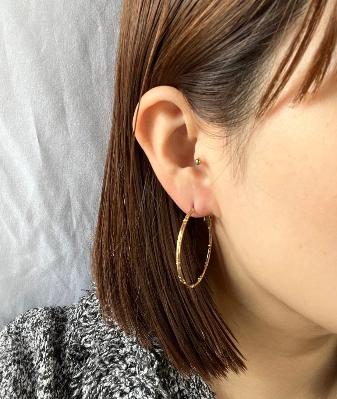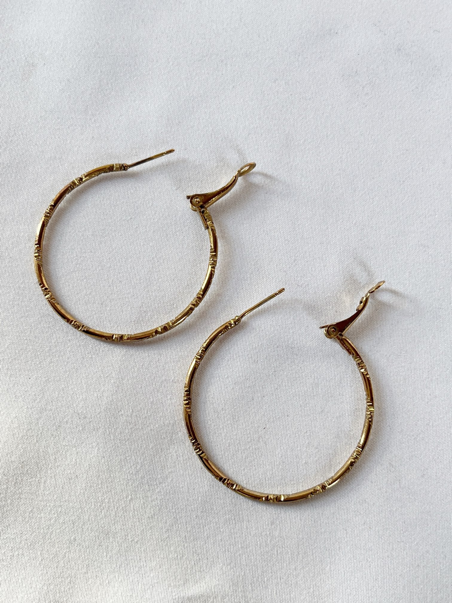 細いゴールドのフープが、華奢な印象のVintage ピアス。よく見ると小さく切り込みが入ったデザインで繊細さが魅力の一品です。