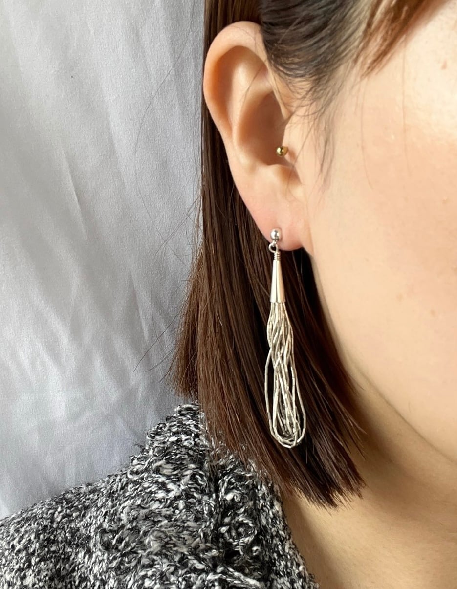 わしゃわしゃと連なる細いチェーンが個性的で目をひくSilver 925vintage ピアス。動くたびにゆらゆらと 揺れて、一気に洒落感の出る一品です。