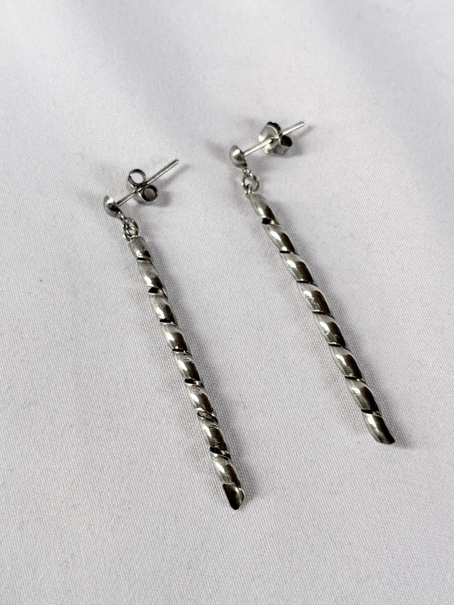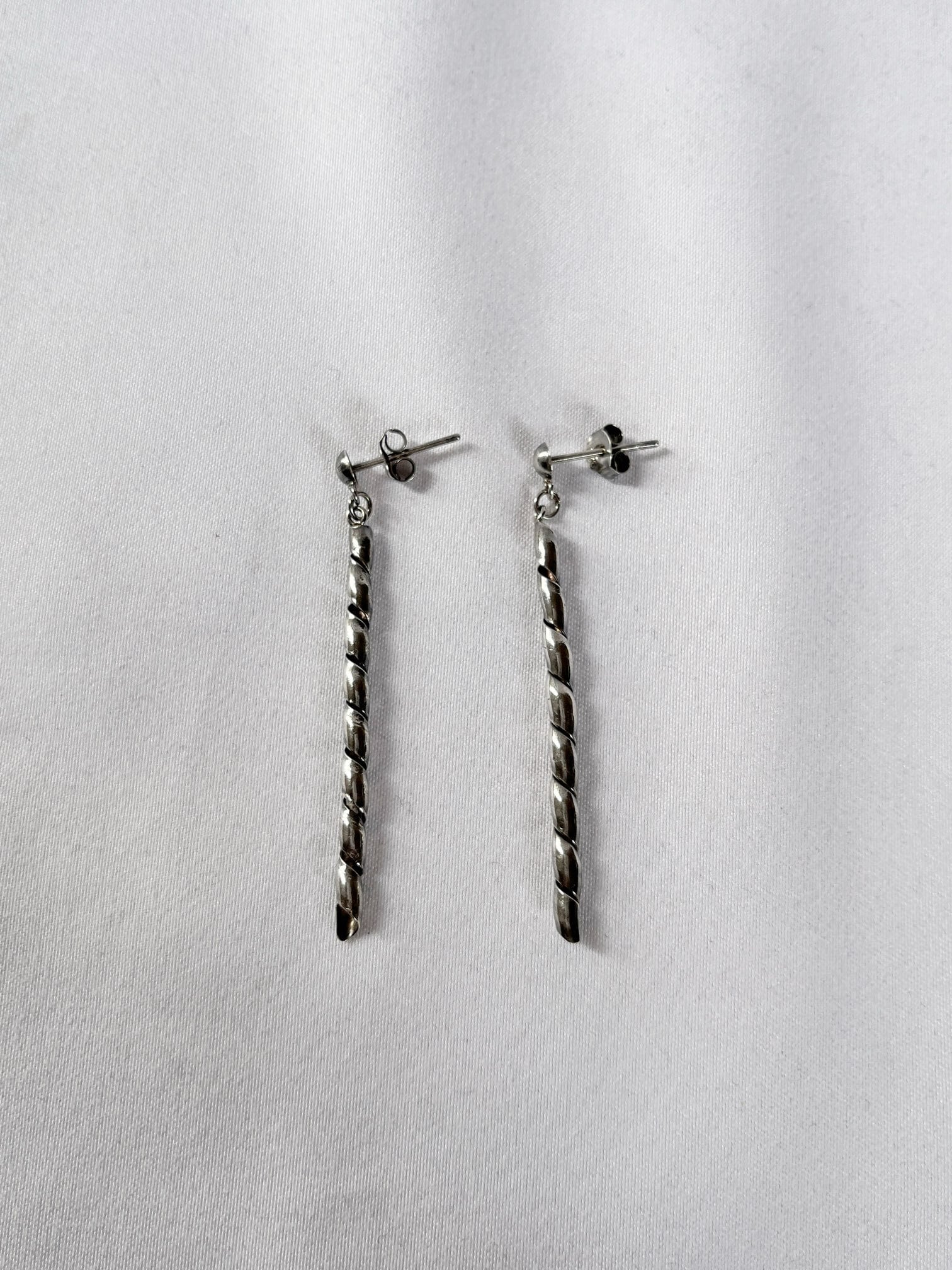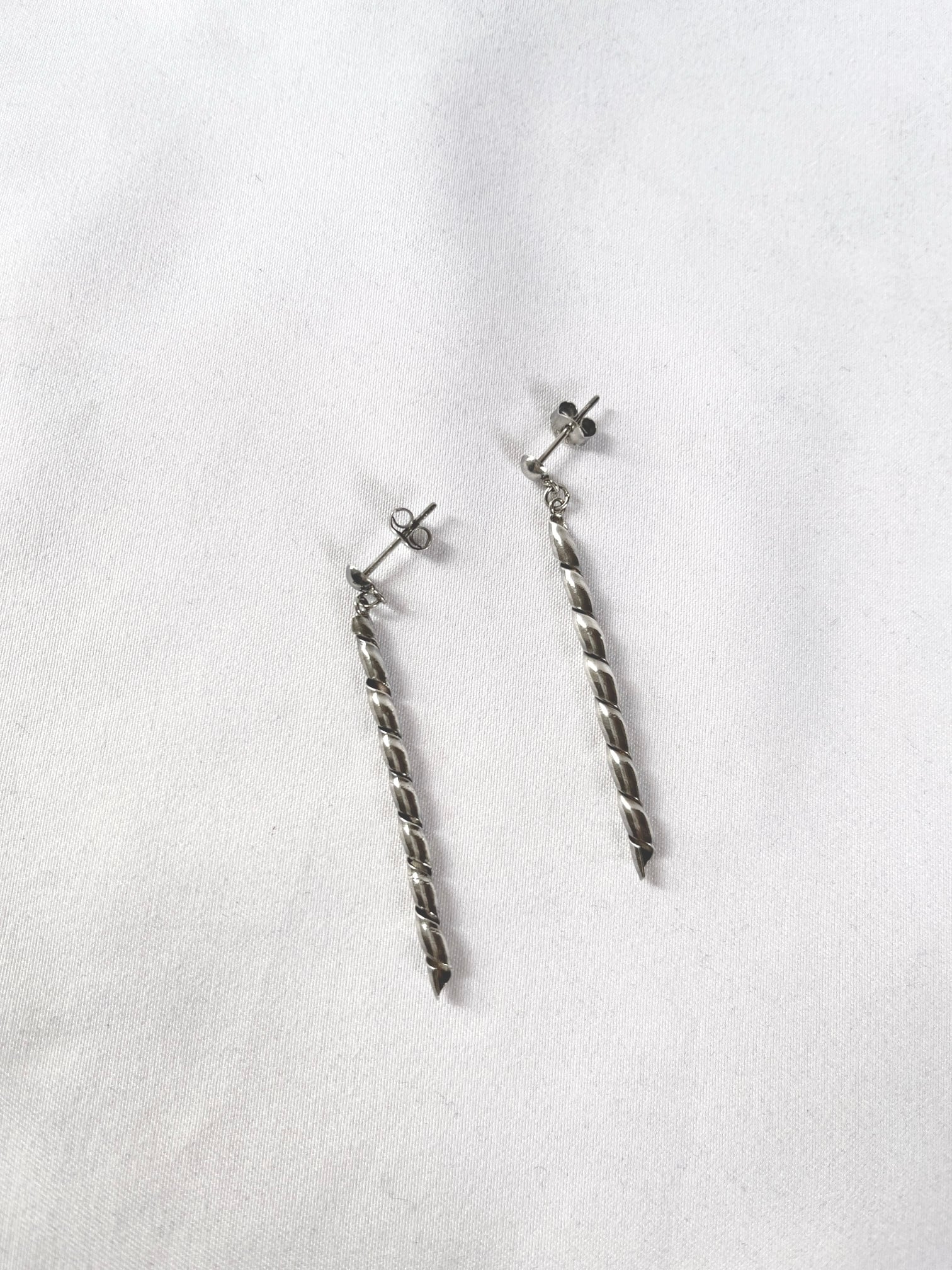スパイラル状のモチーフがクールなVintage Silver925 ピアス。縦に線が美しいモチーフで顔回りがモードになる逸品です。