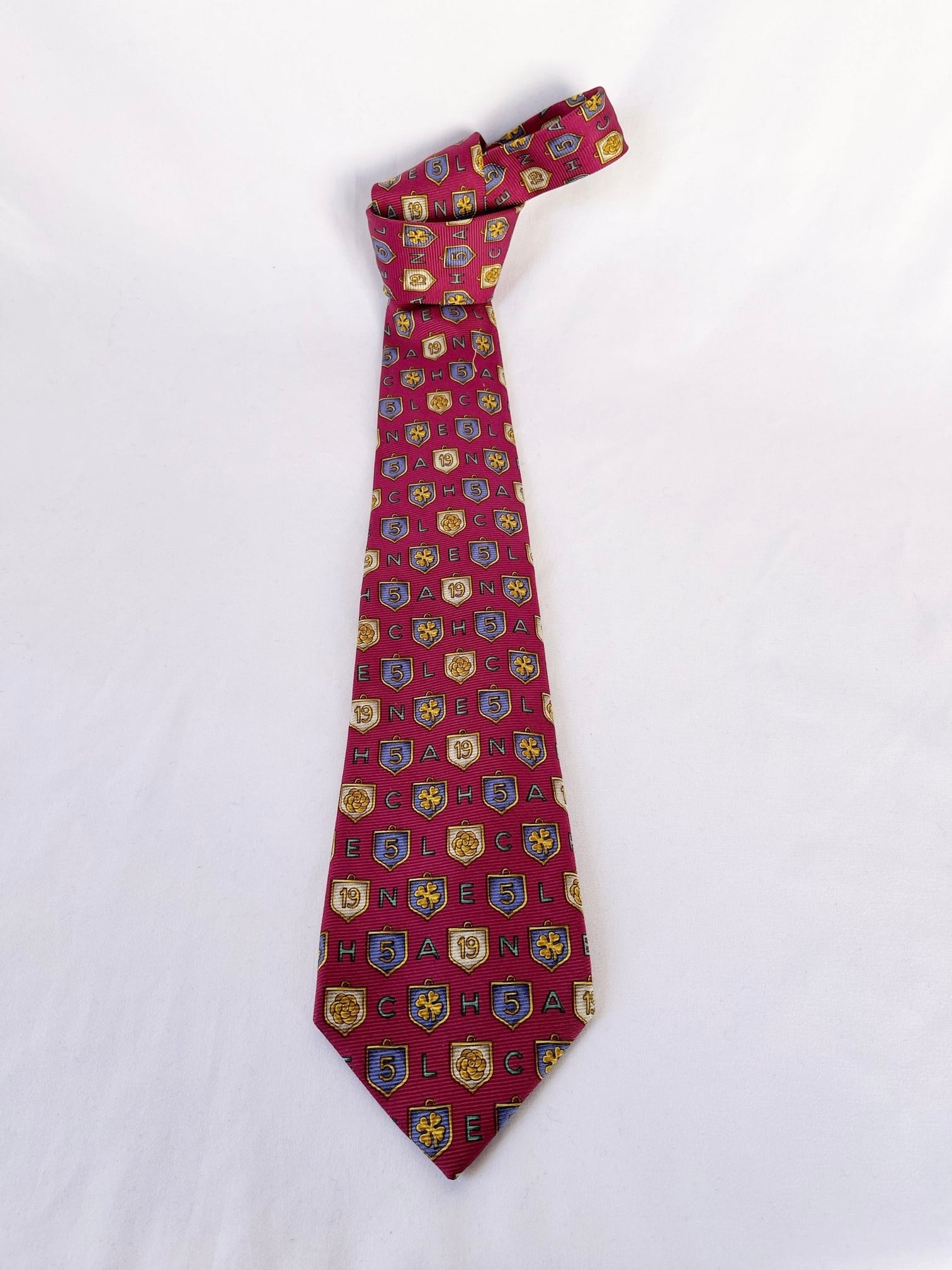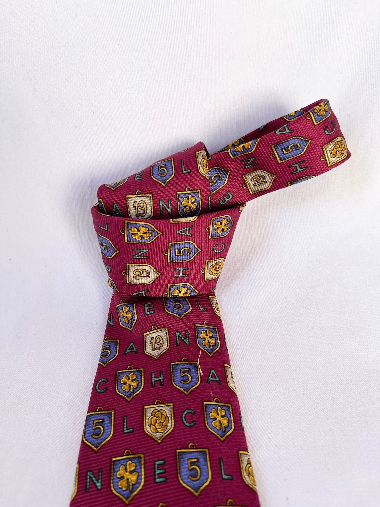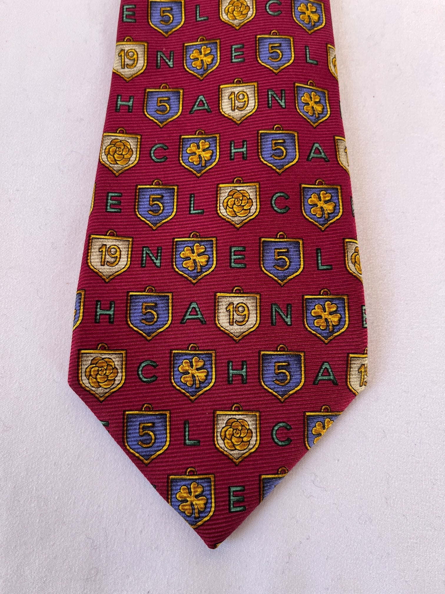 CHANEL “No.5&19” Logo Bordeaux Tie