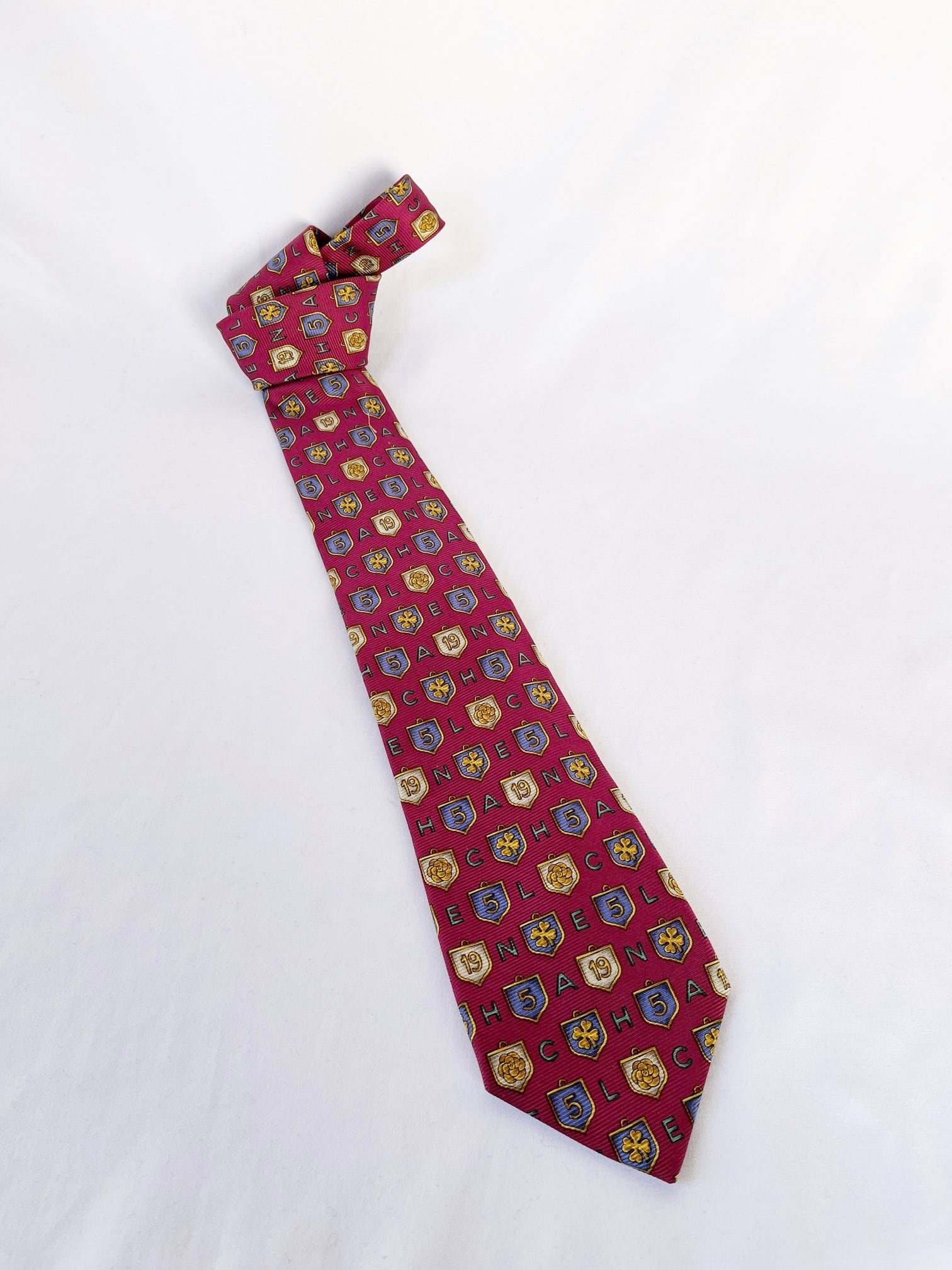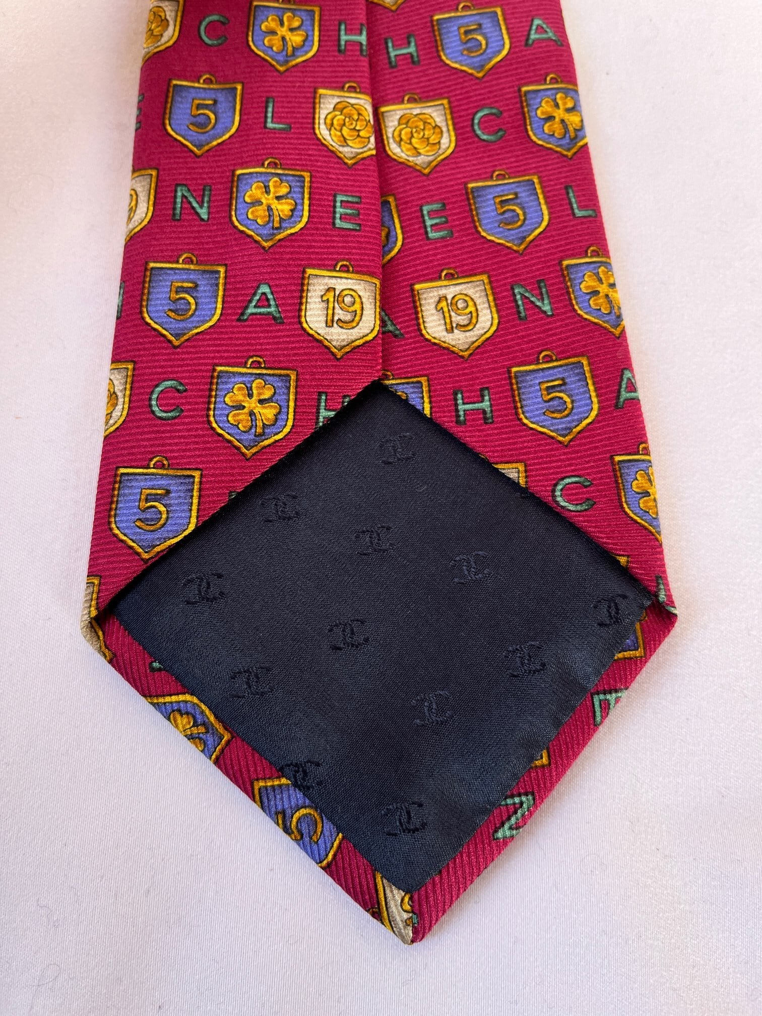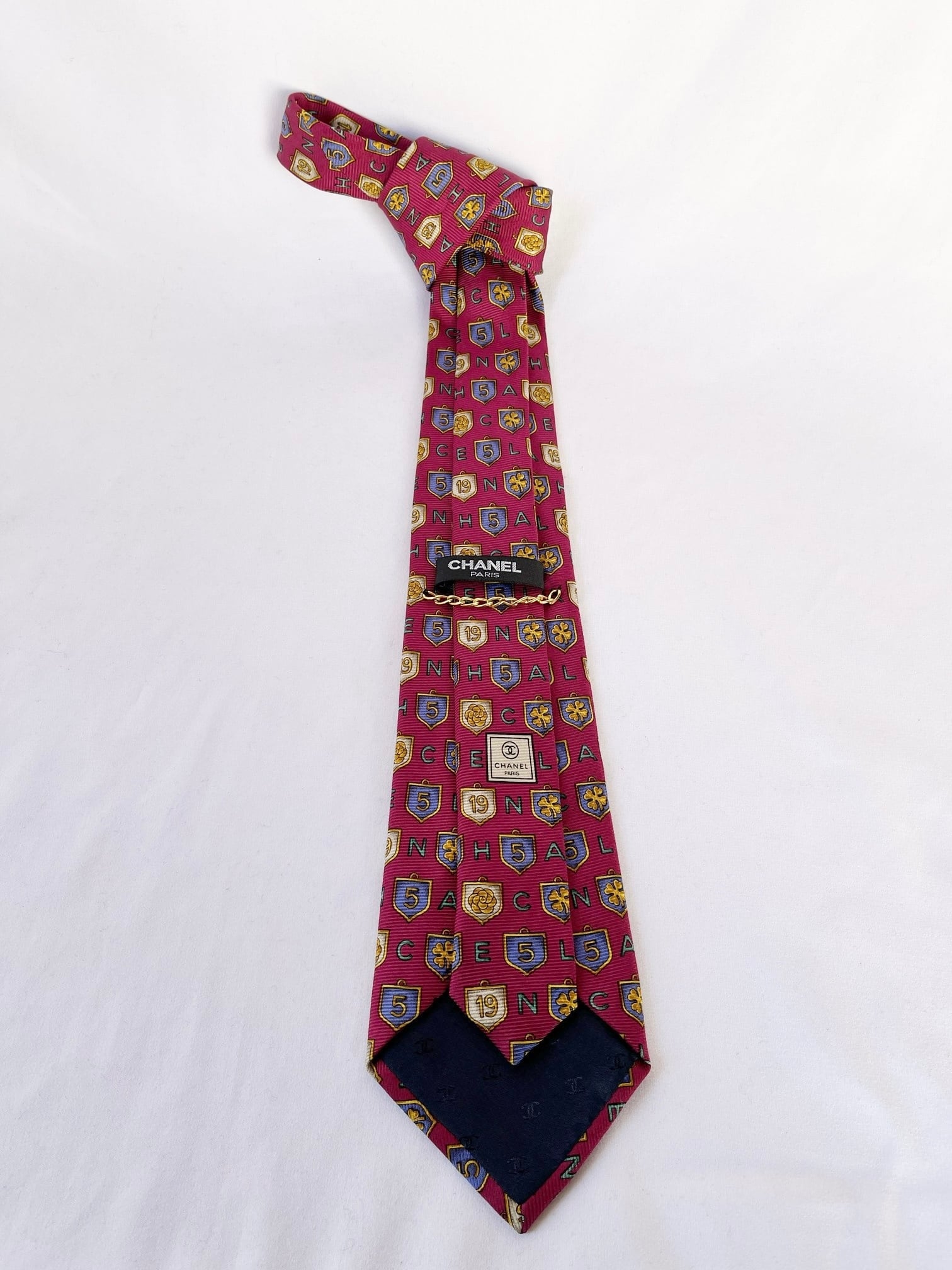 CHANEL “No.5&19” Logo Bordeaux Tie