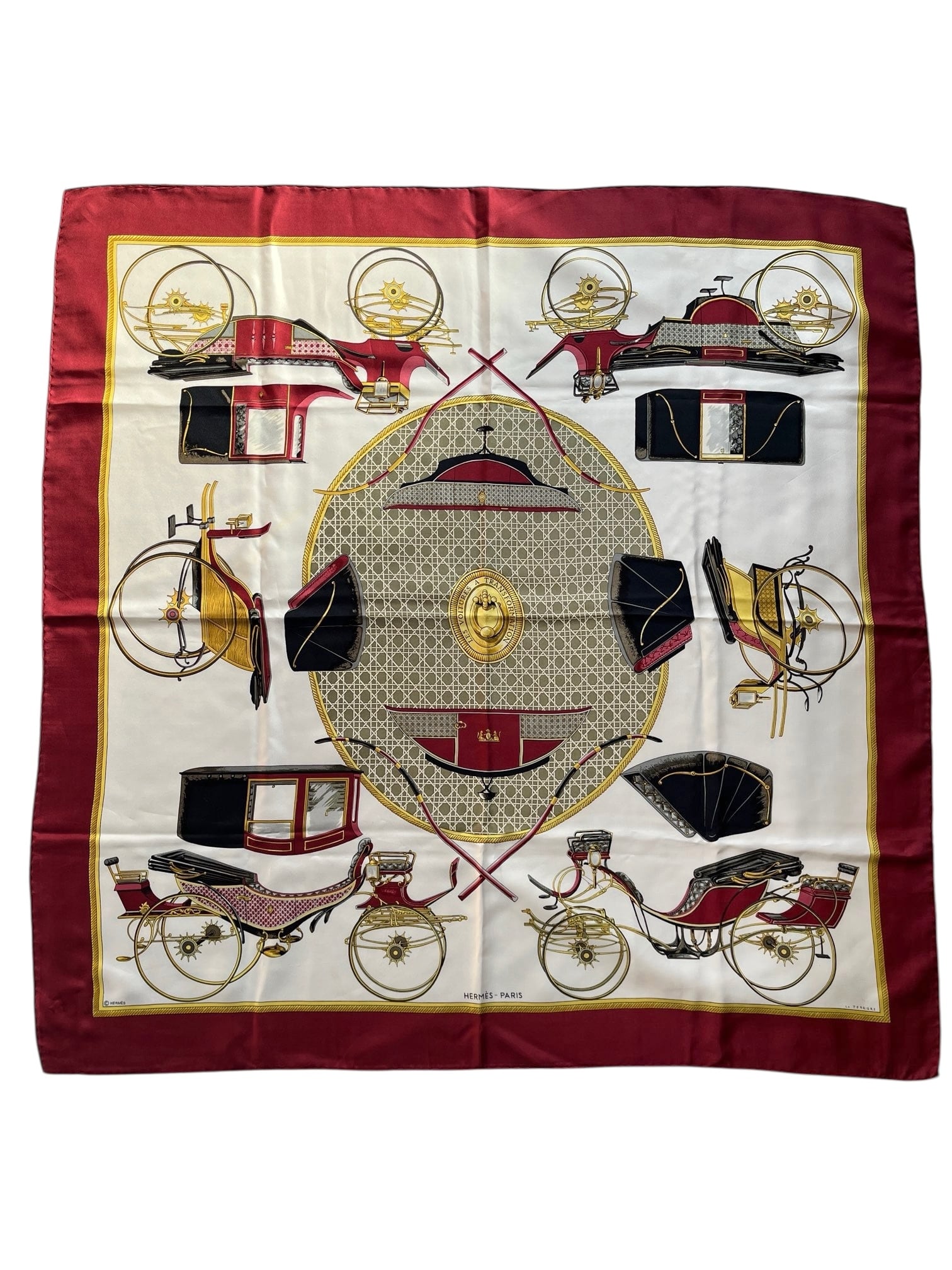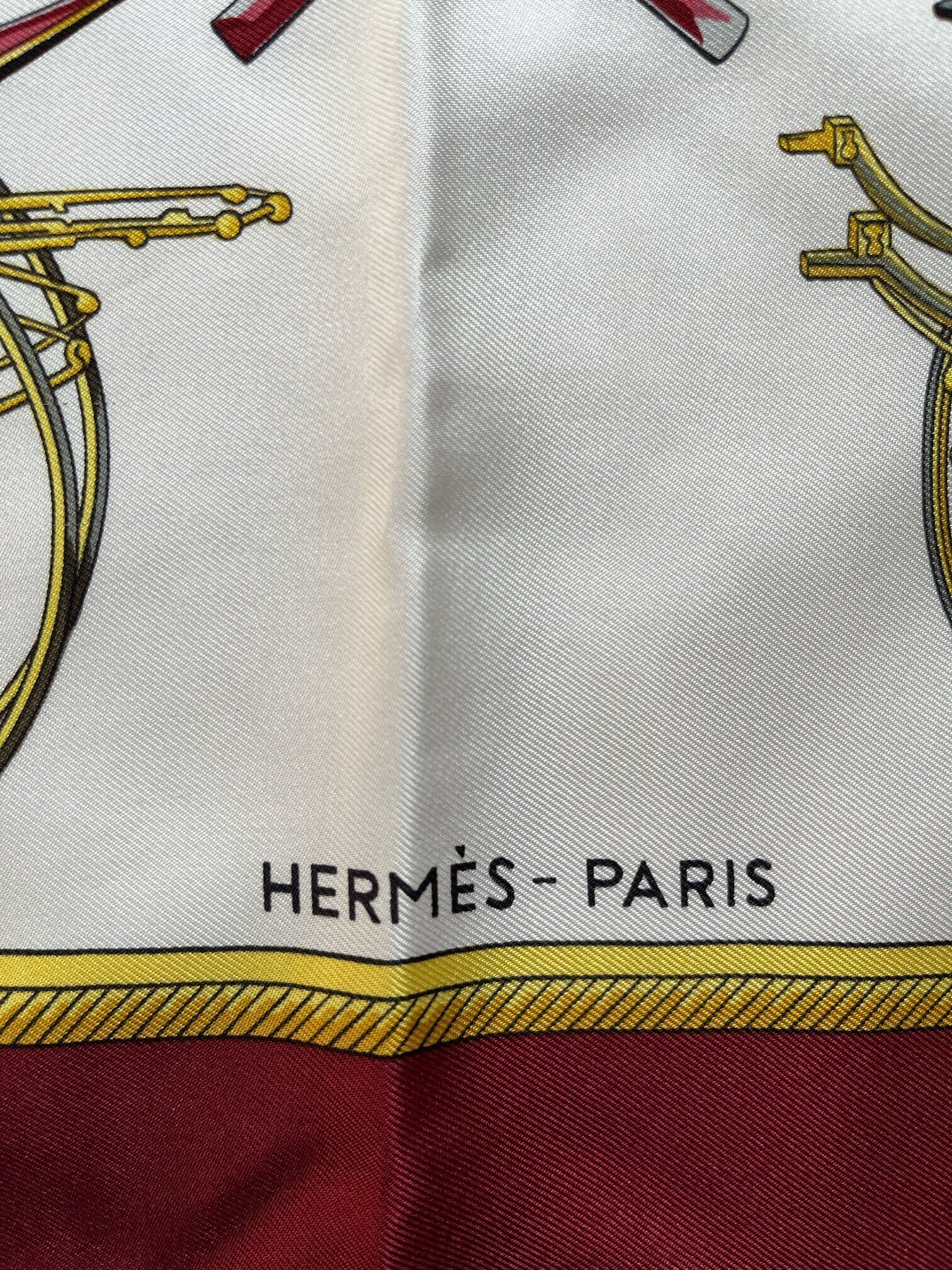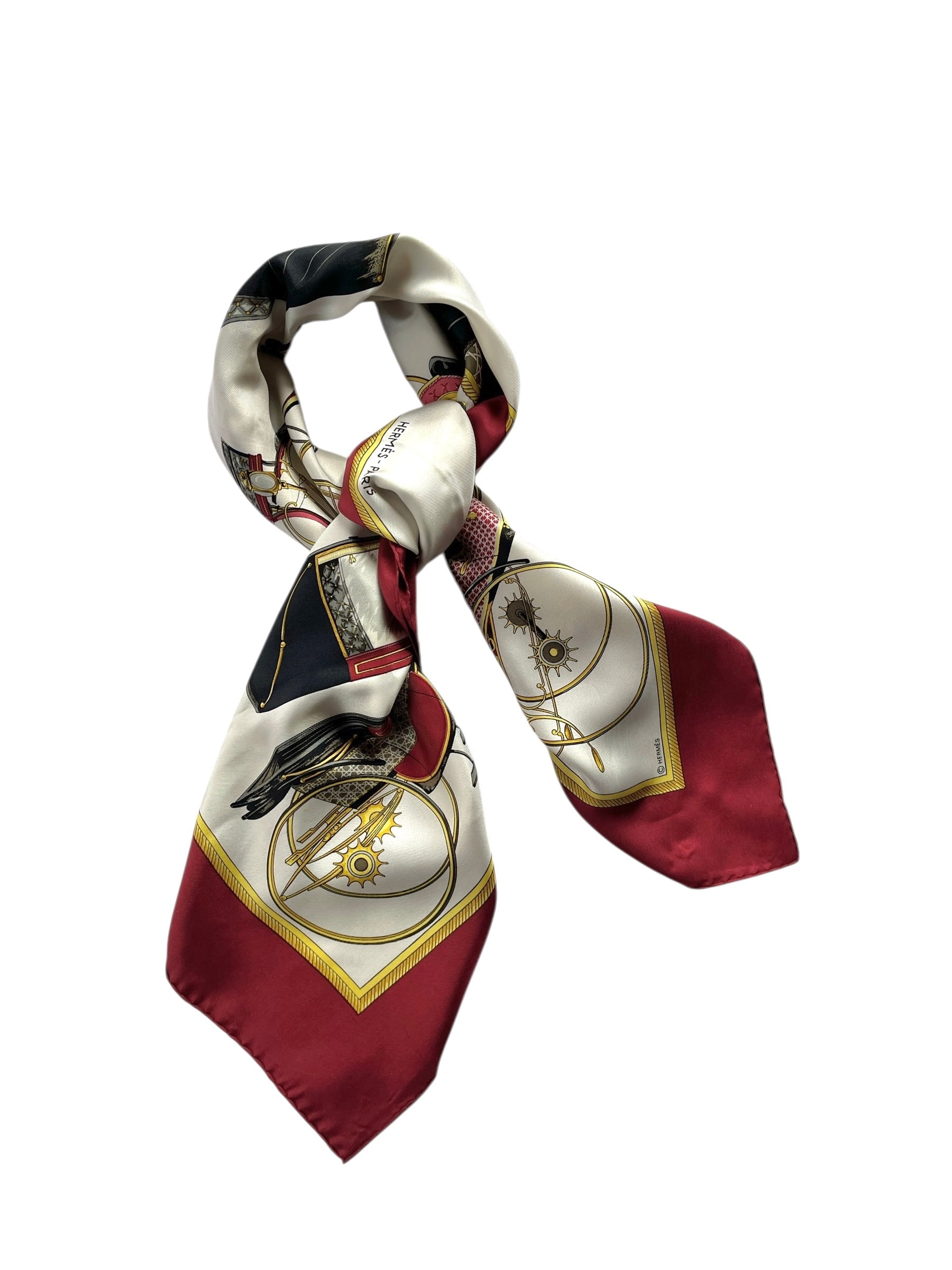 HERMES “Carriage” Bordeaux×Gold×Ivory Scarf