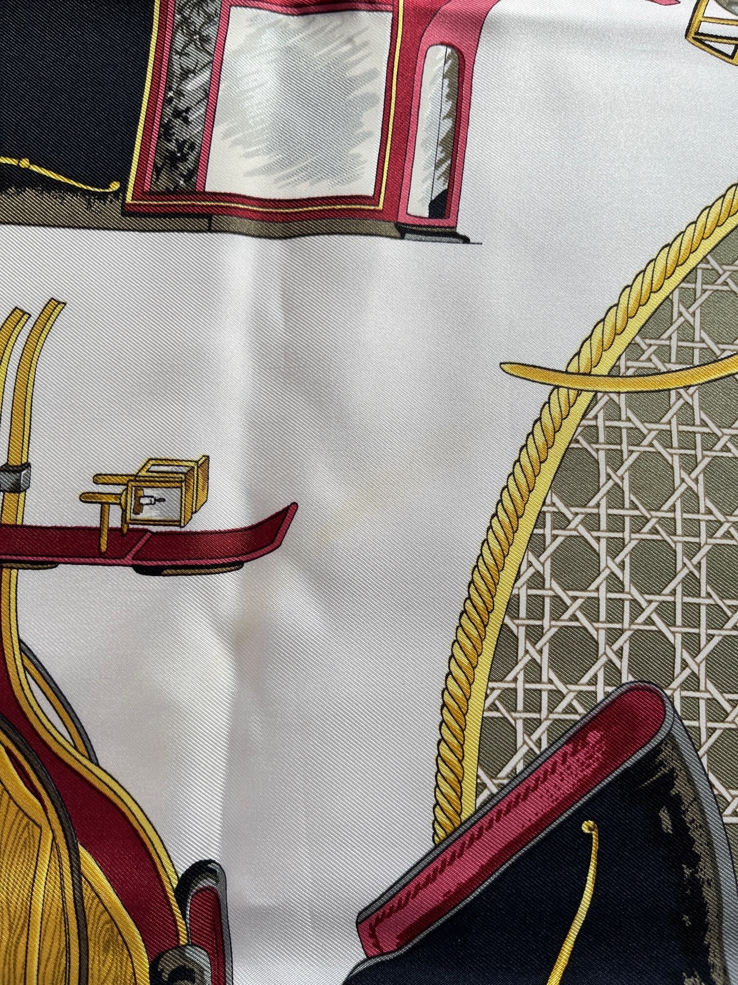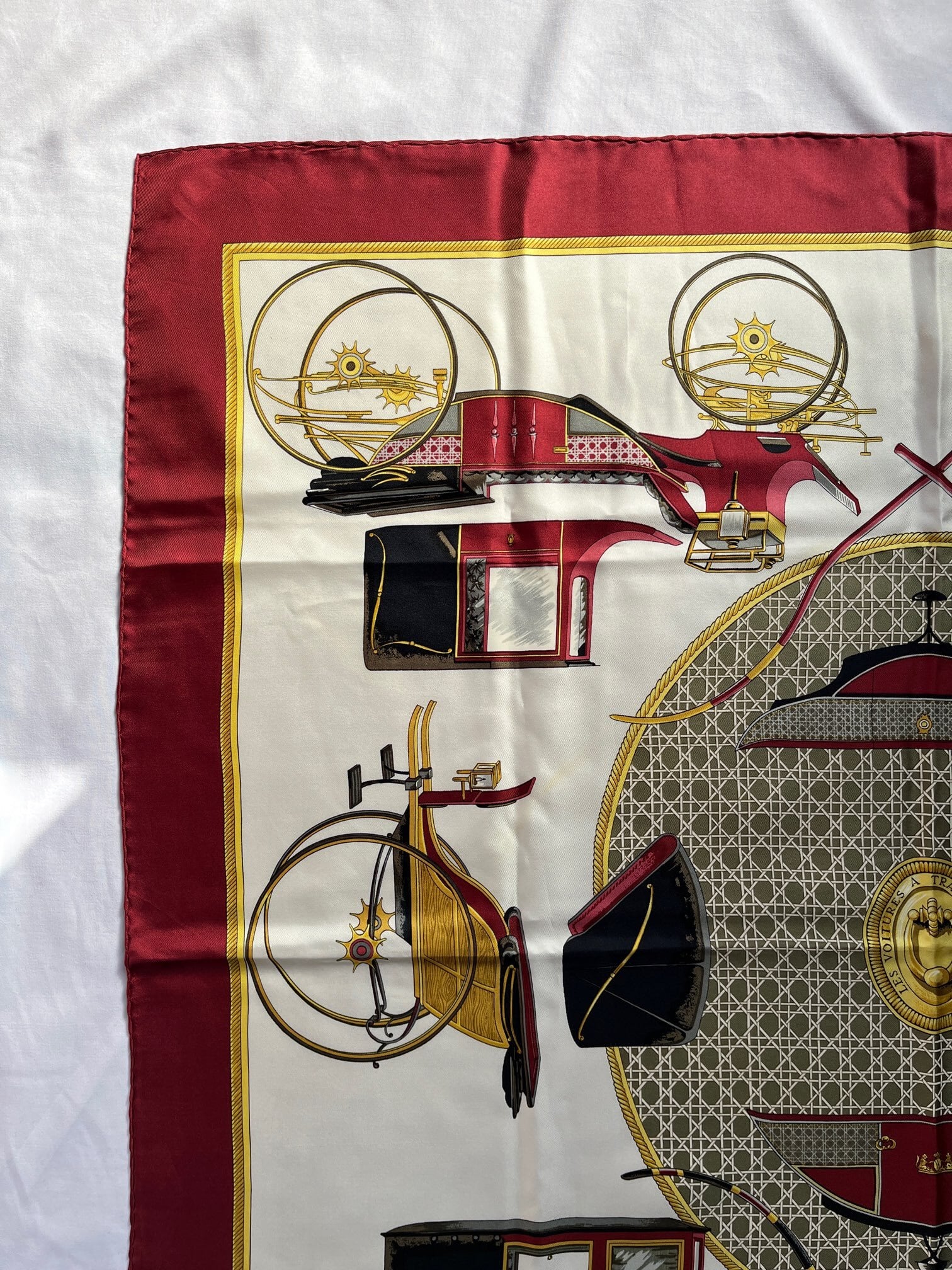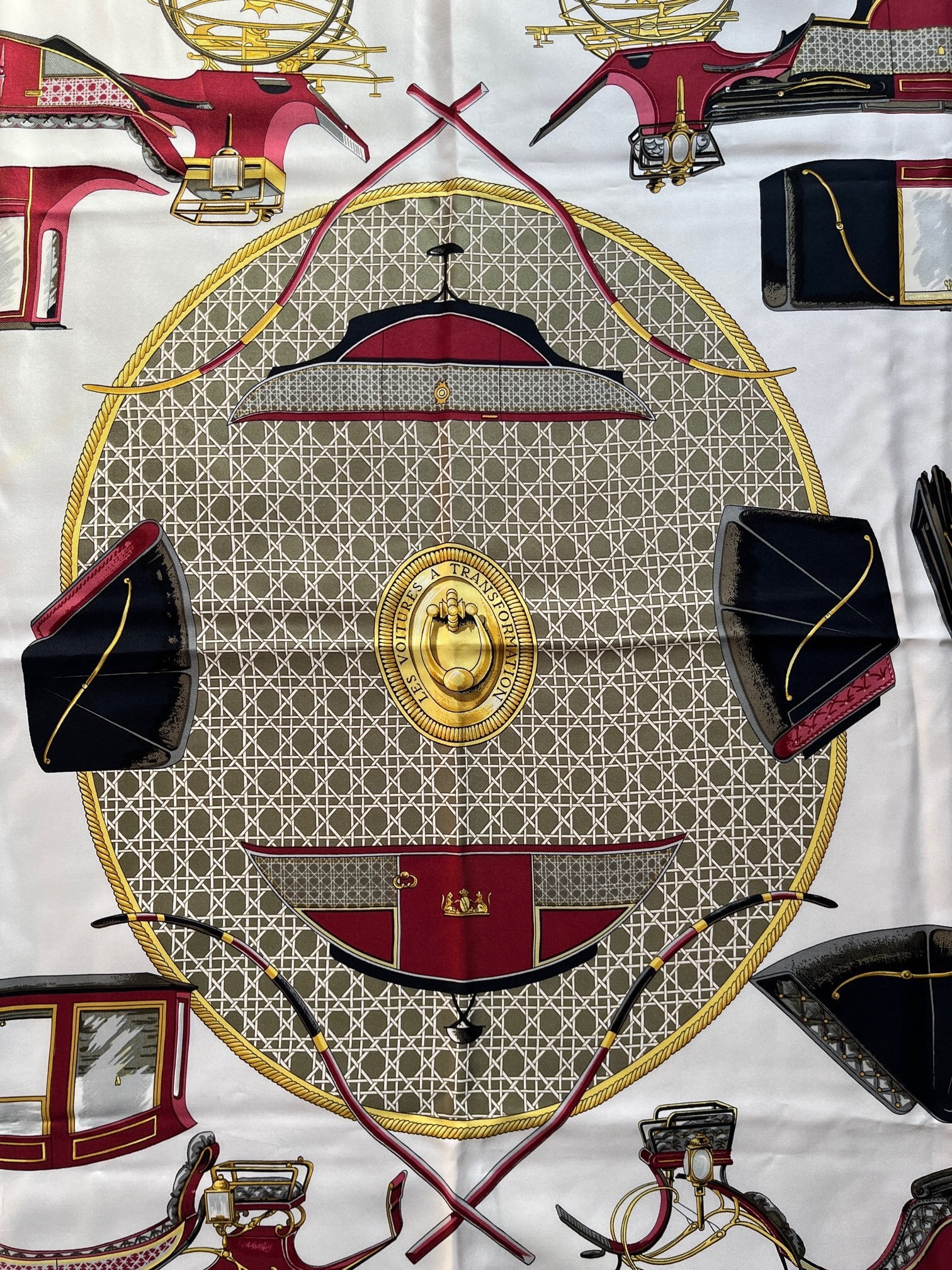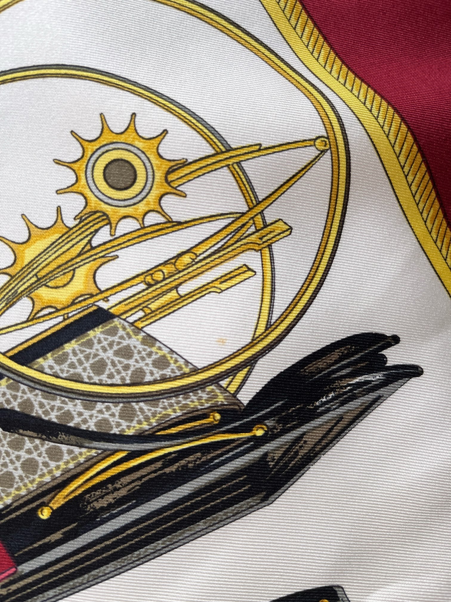 HERMES “Carriage” Bordeaux×Gold×Ivory Scarf