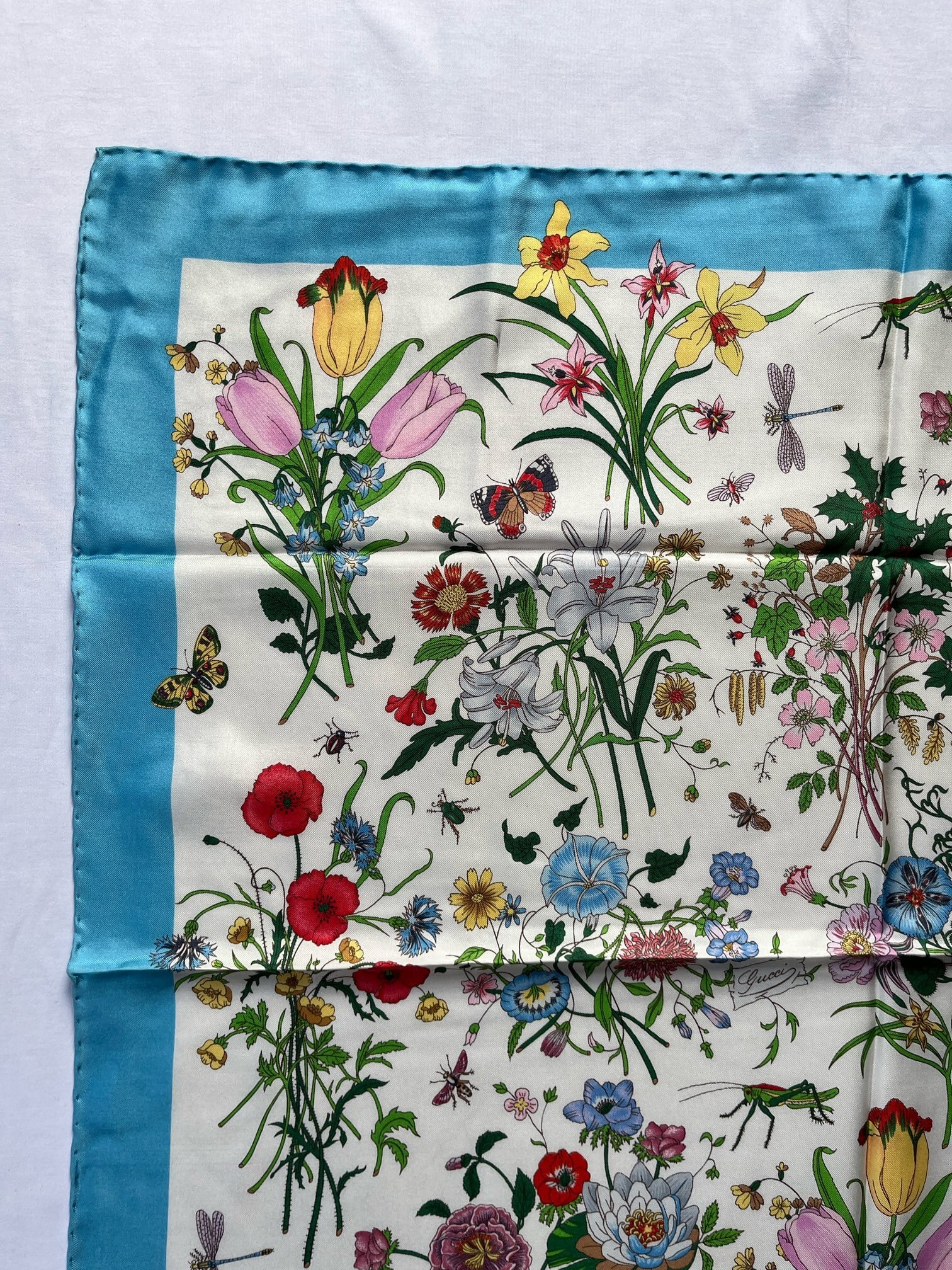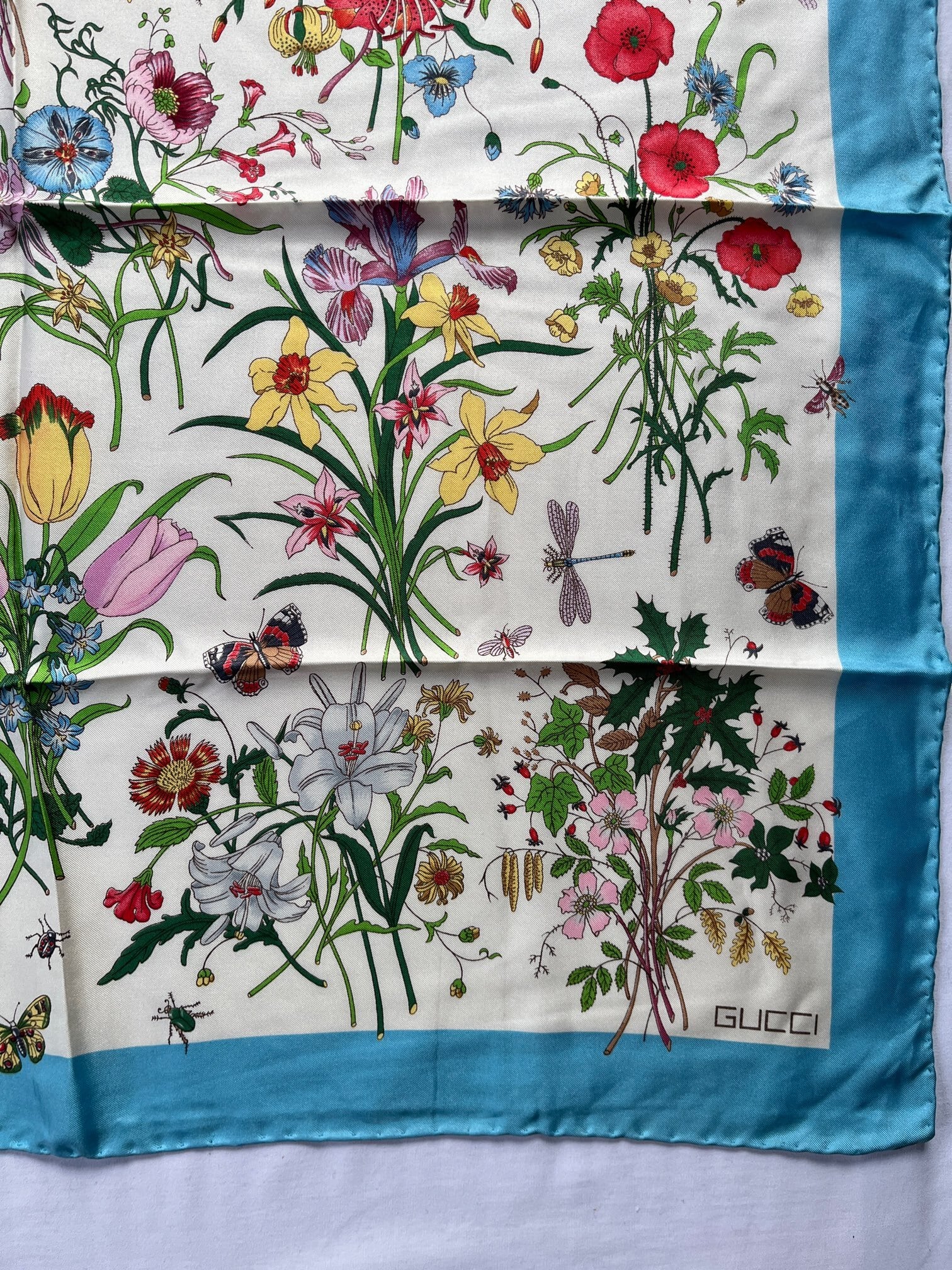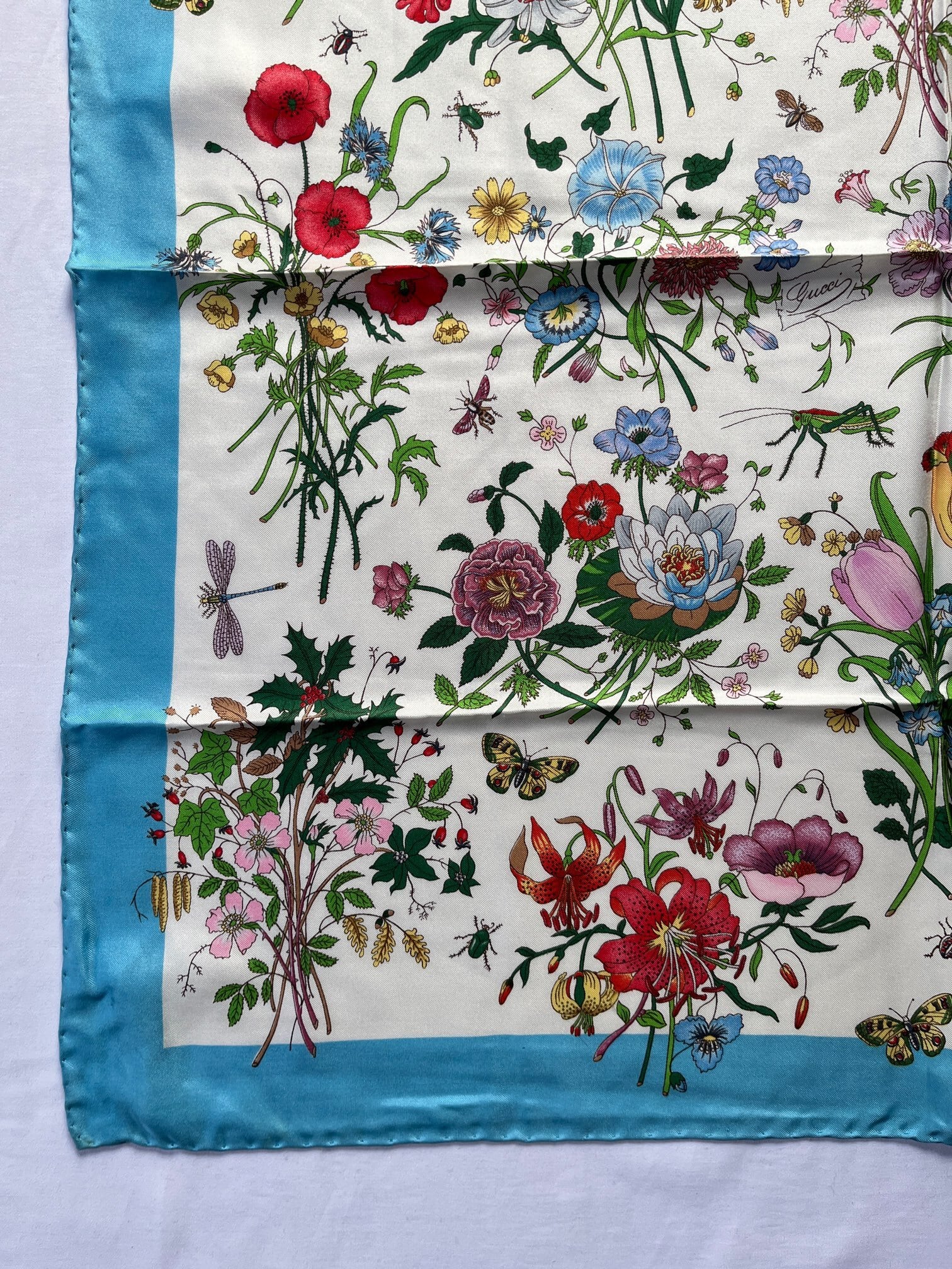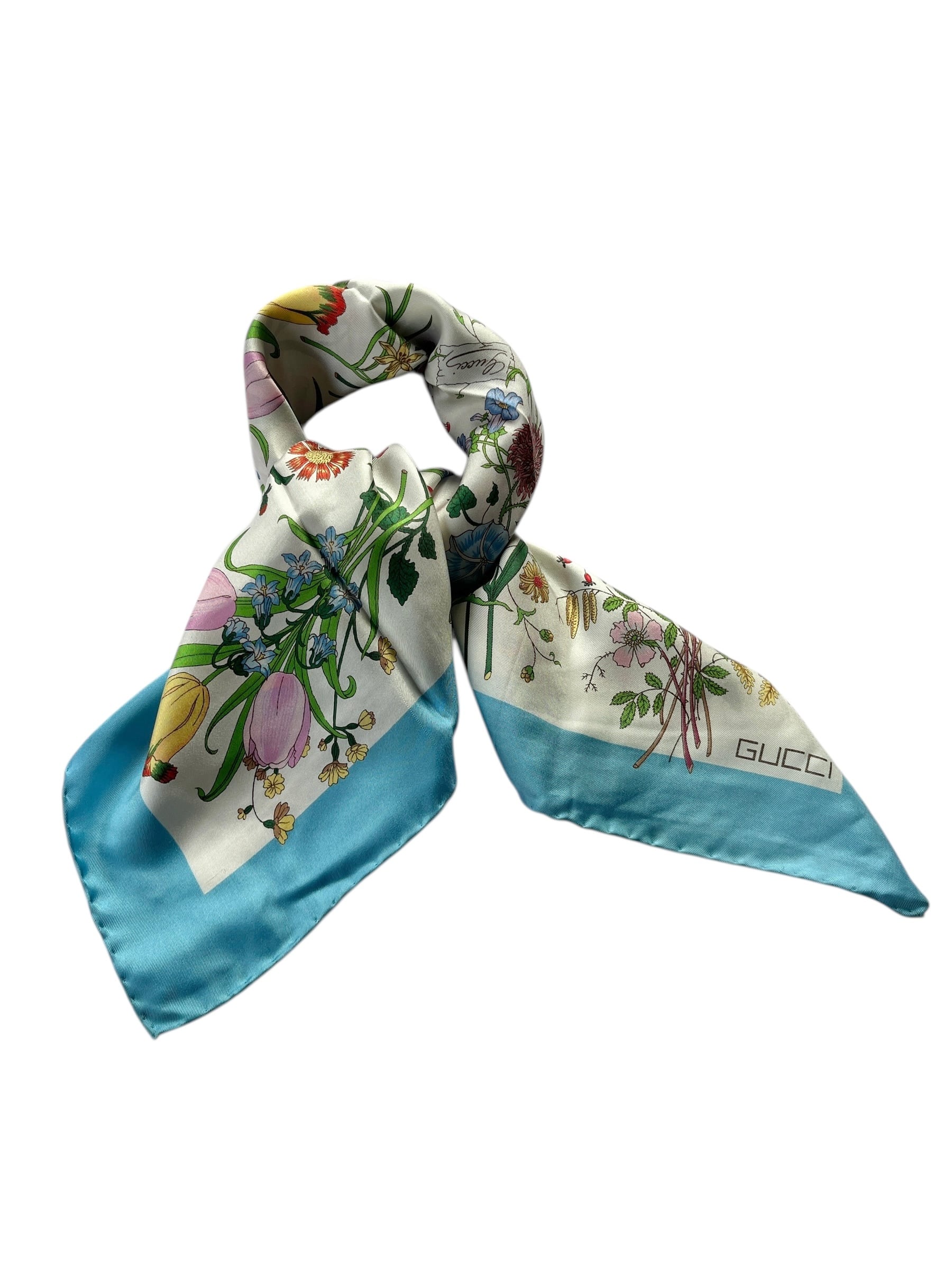 GUCCI “Flora”Turquoise Blue Scarf