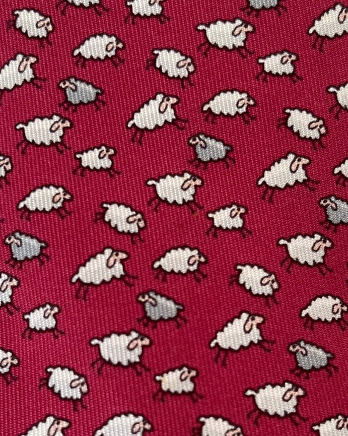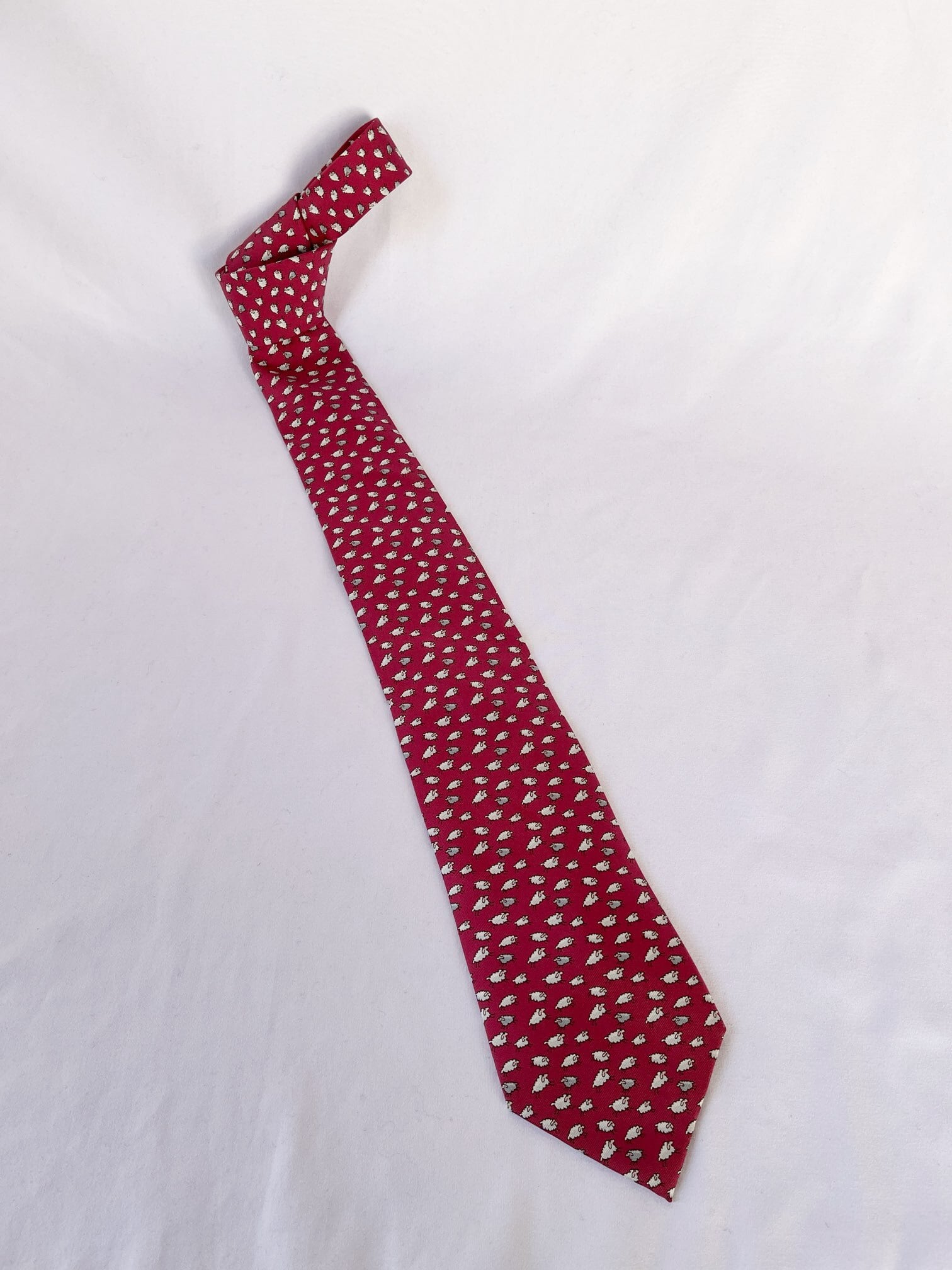 小さな羊のモチーフがかわいらしいHERMESのVintageネクタイ。深い赤の色味がエレガントな印象★