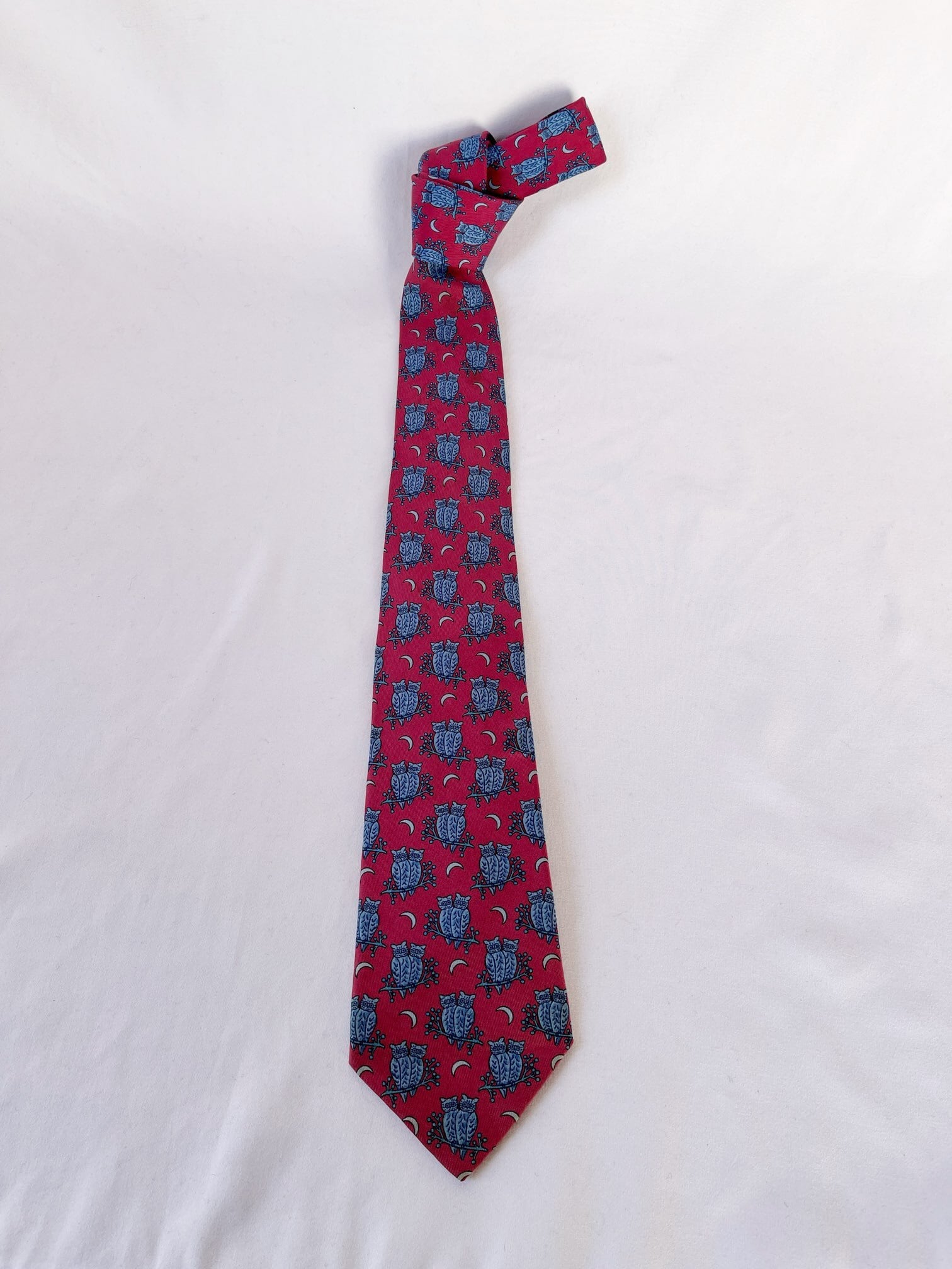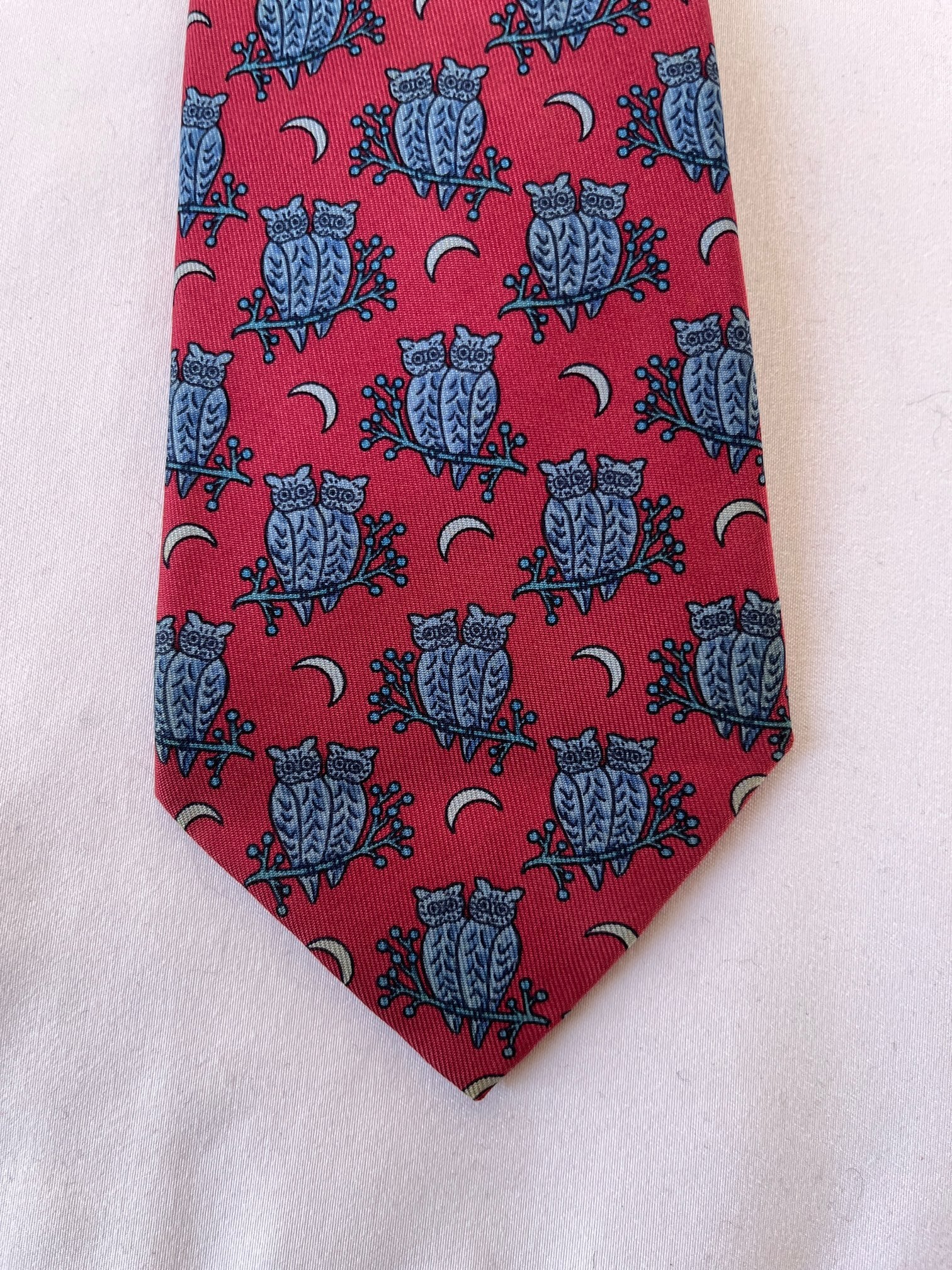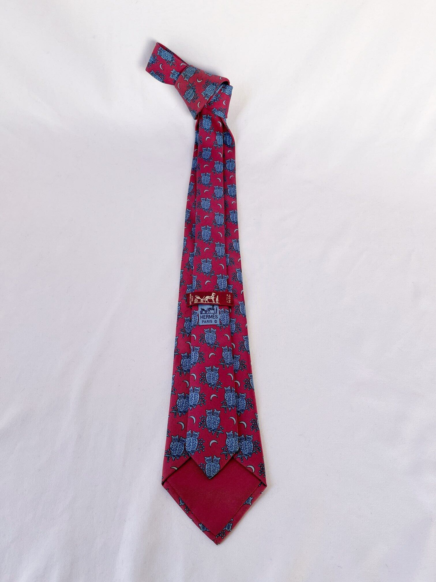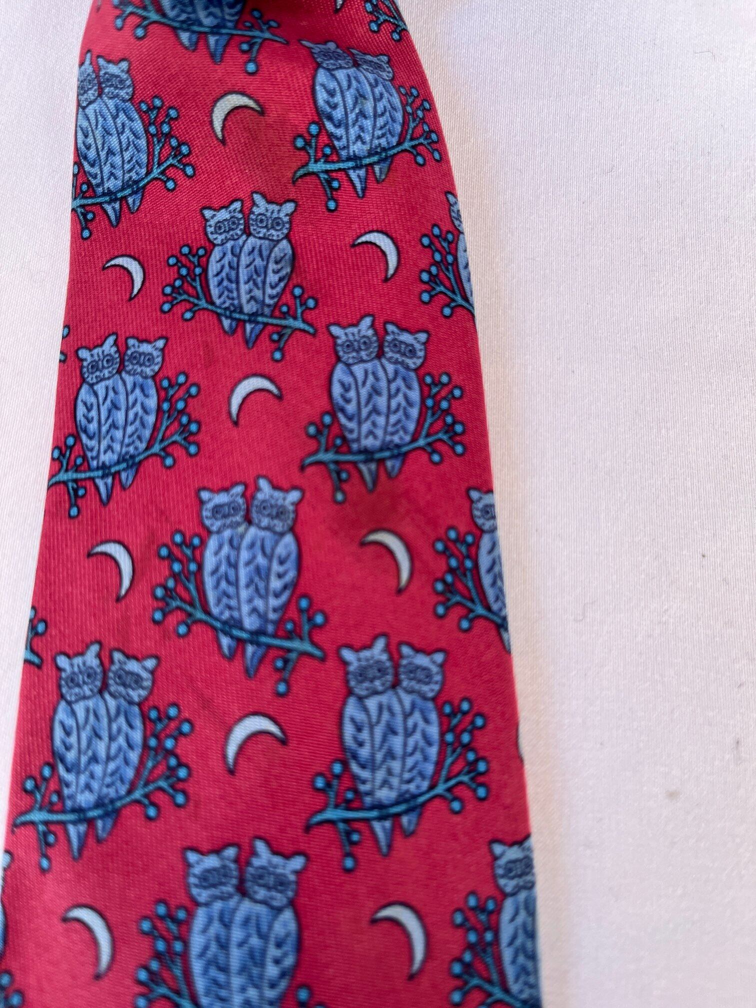 Hermes “Owl Motif”Red Tie