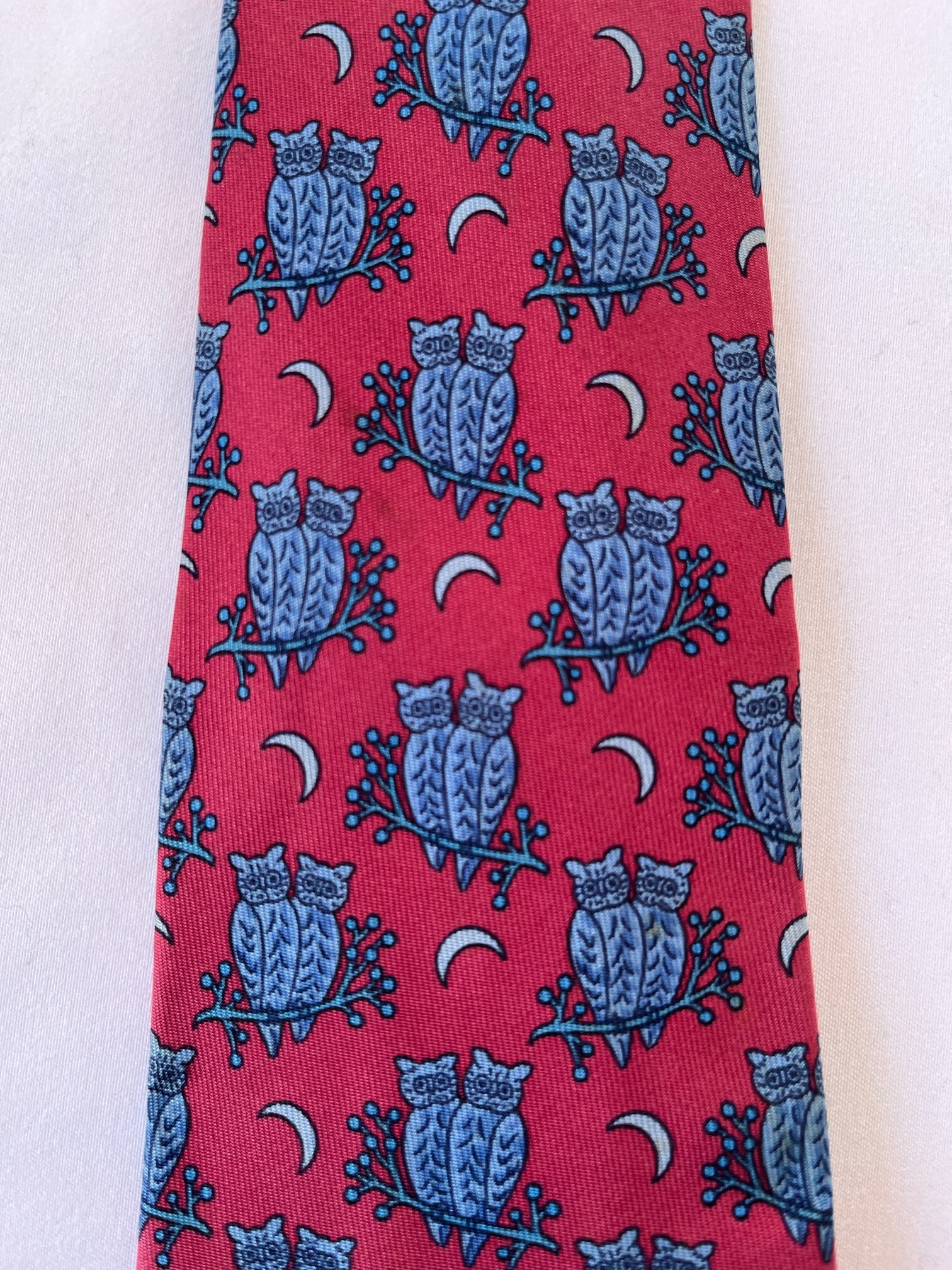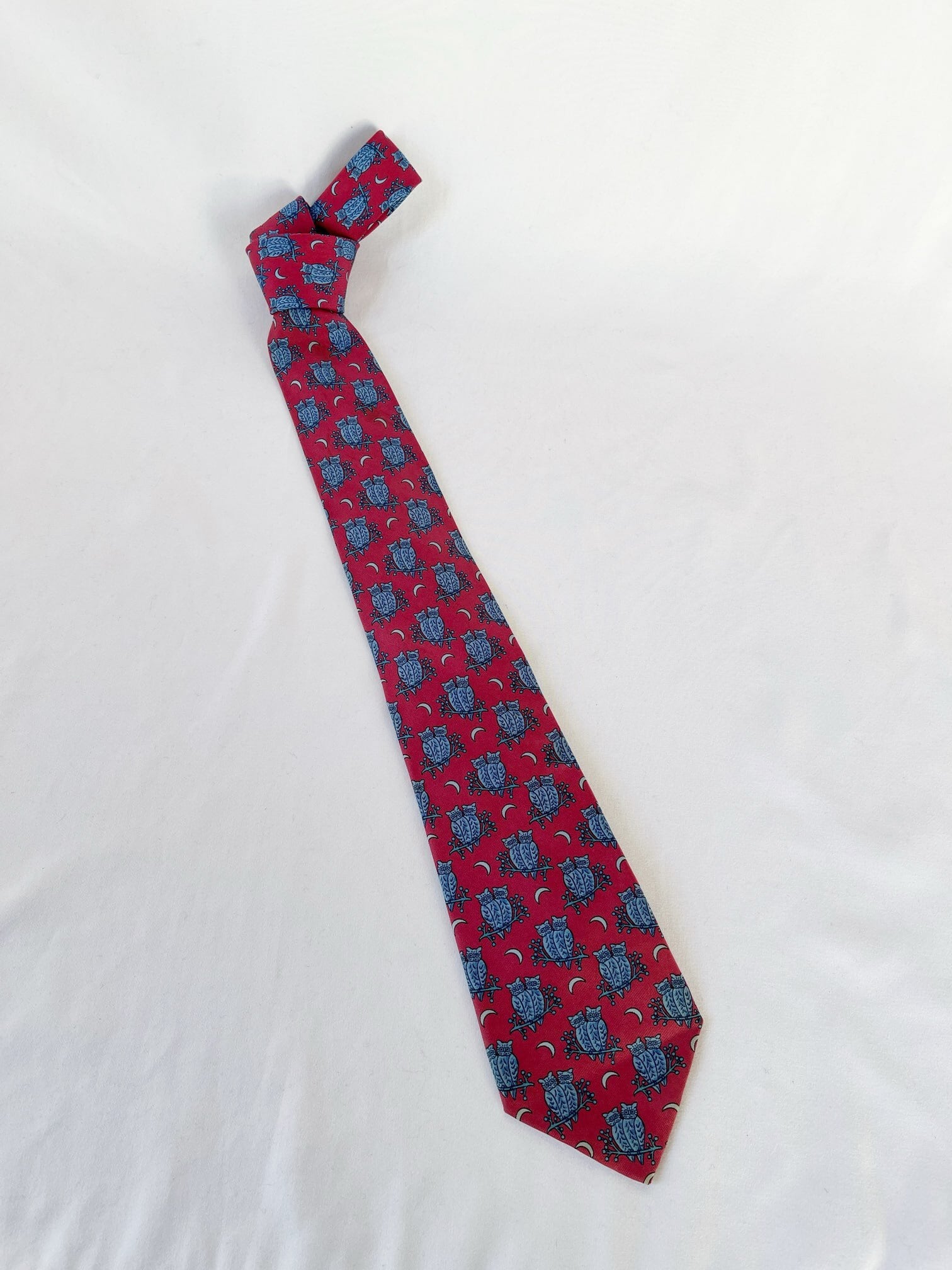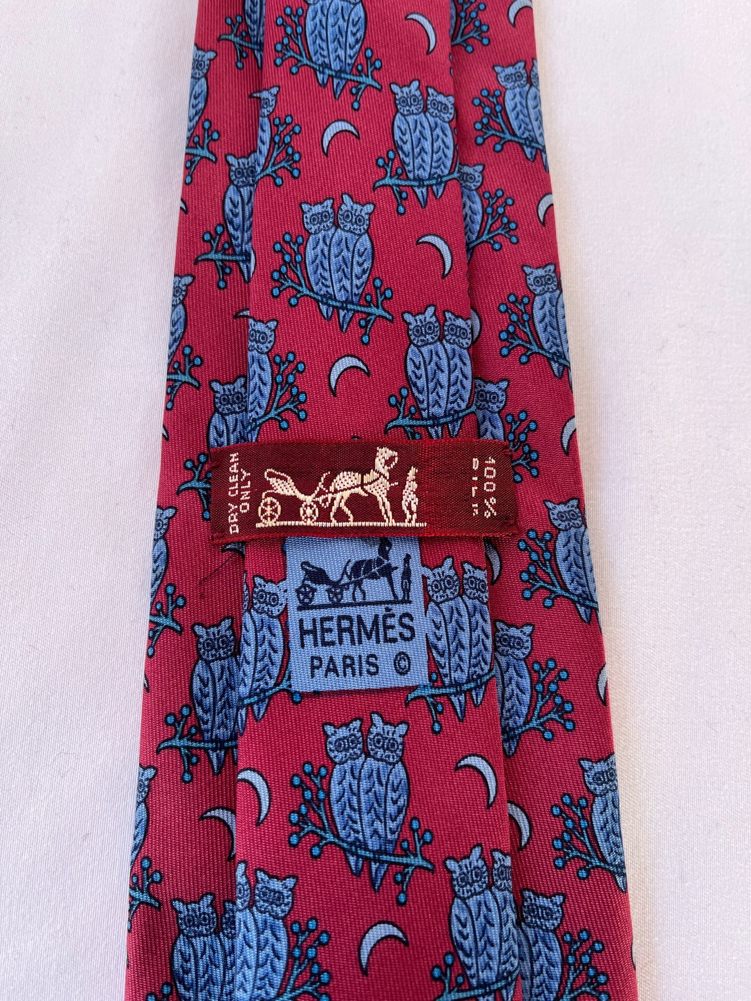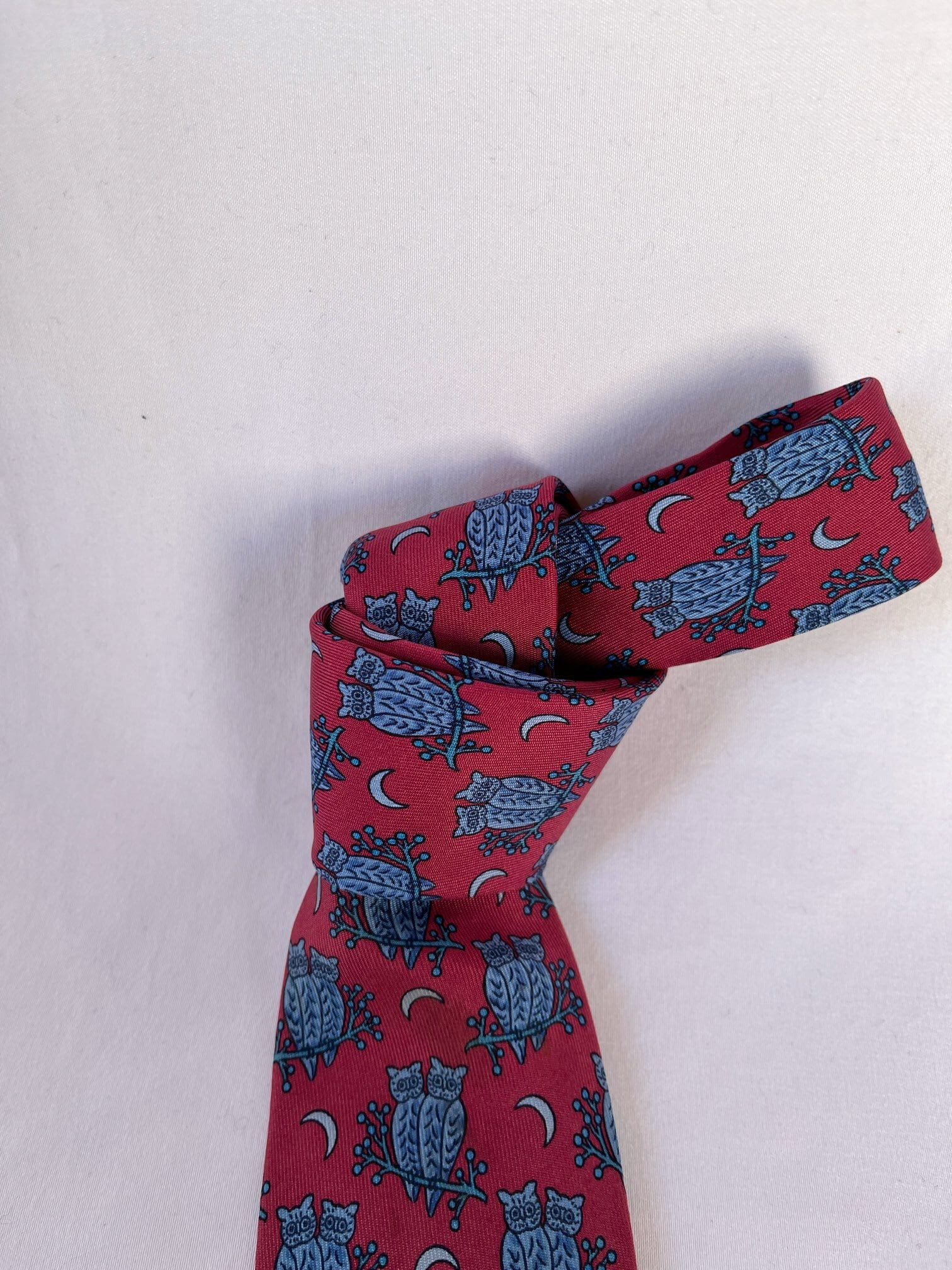 Hermes “Owl Motif”Red Tie