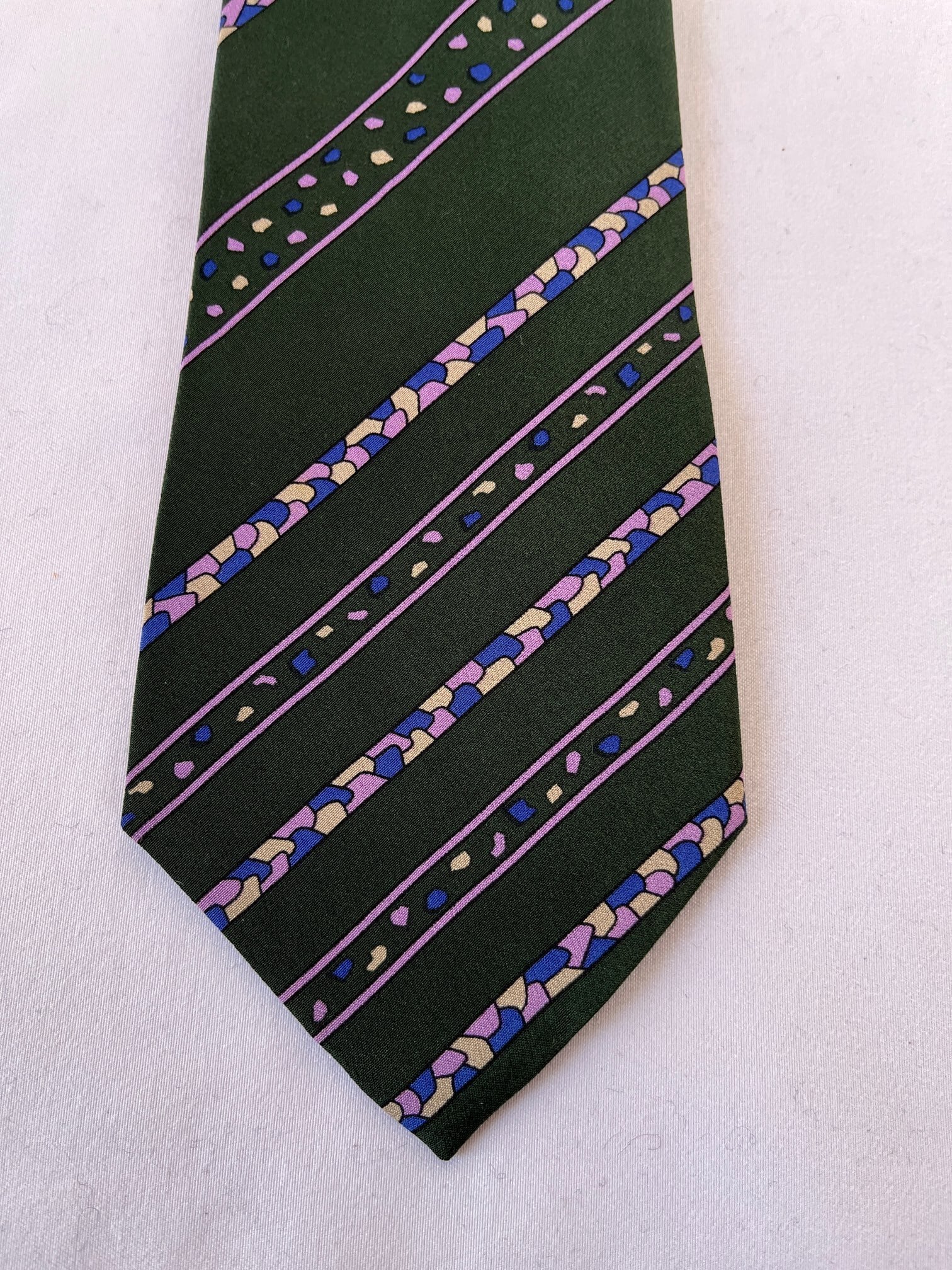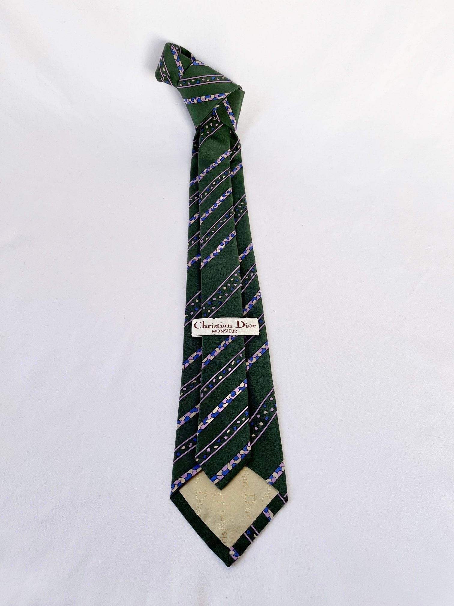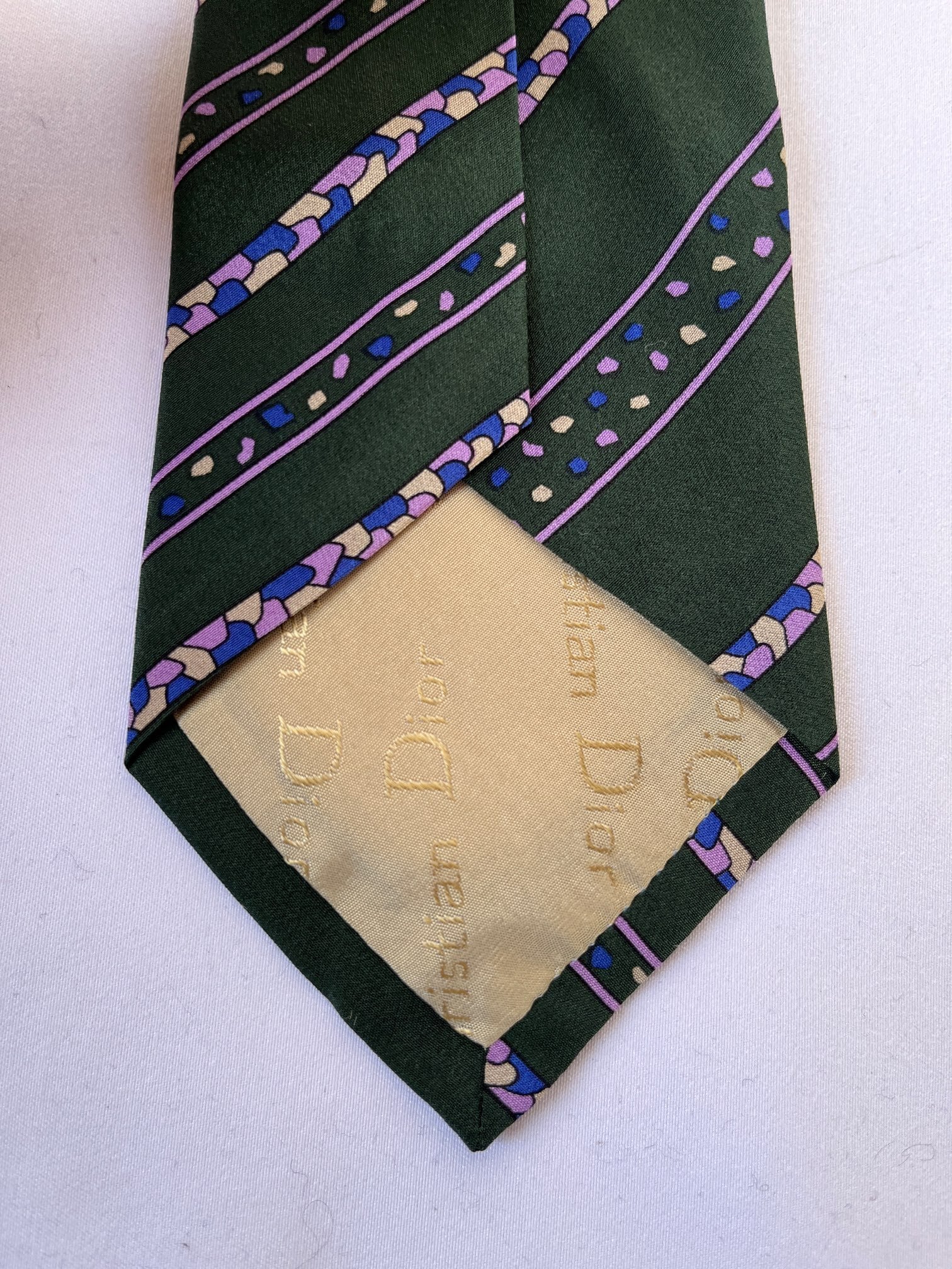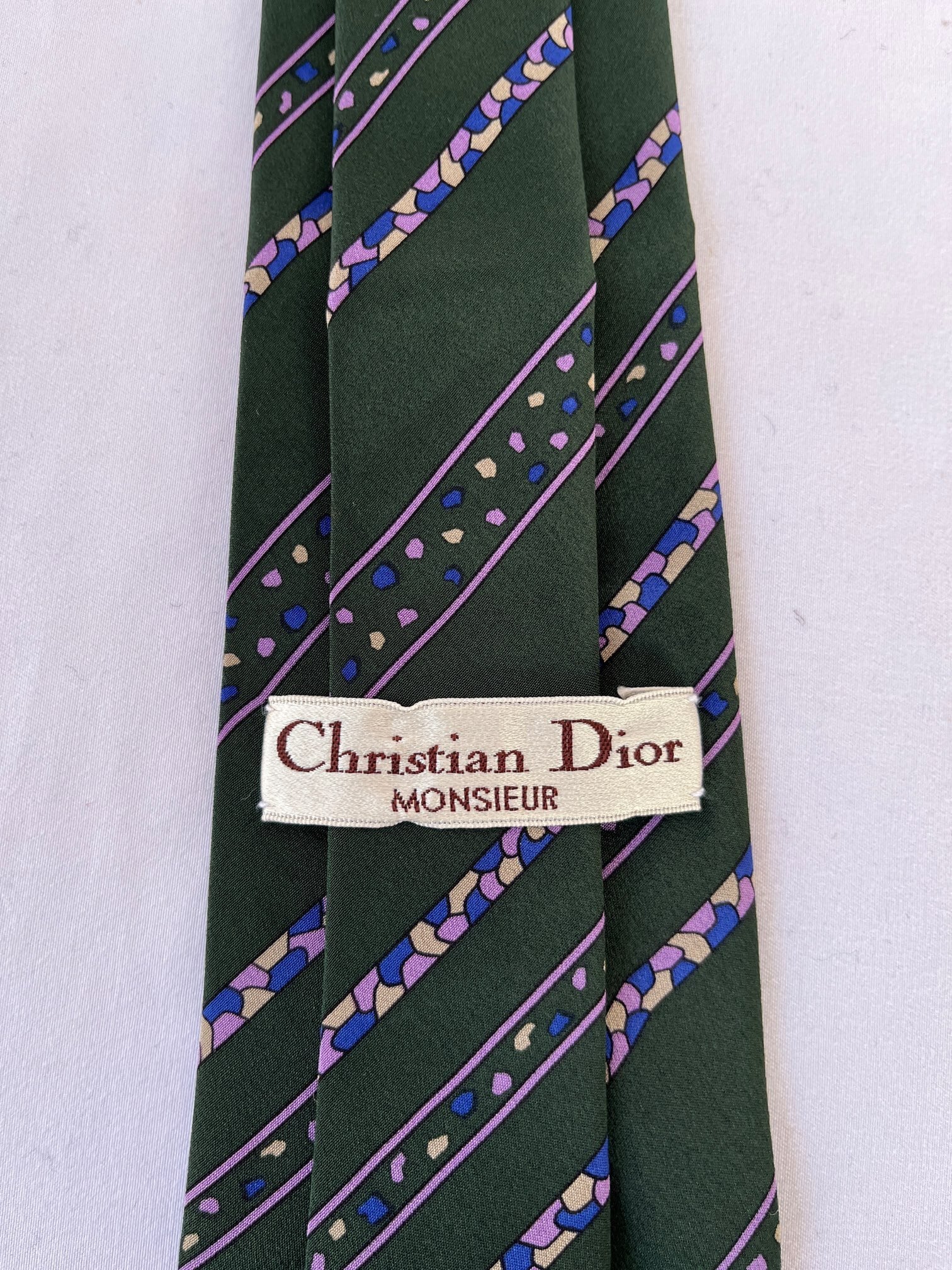 Dk.greenのベースにパープルストーンモチーフが 映えるDior Vintage ネクタイ。小粒なカラーストーンがユニークなデザイン☆遊び心あふれる一品です。