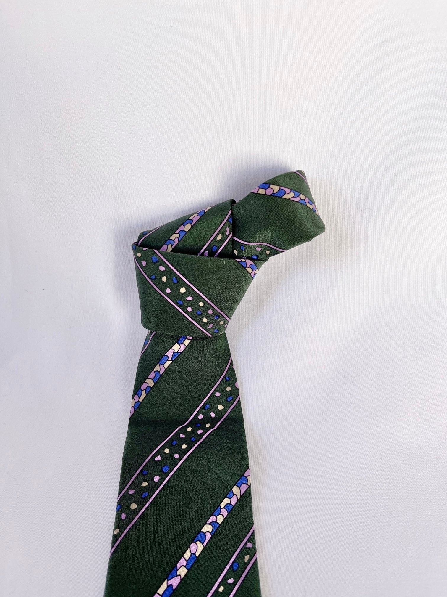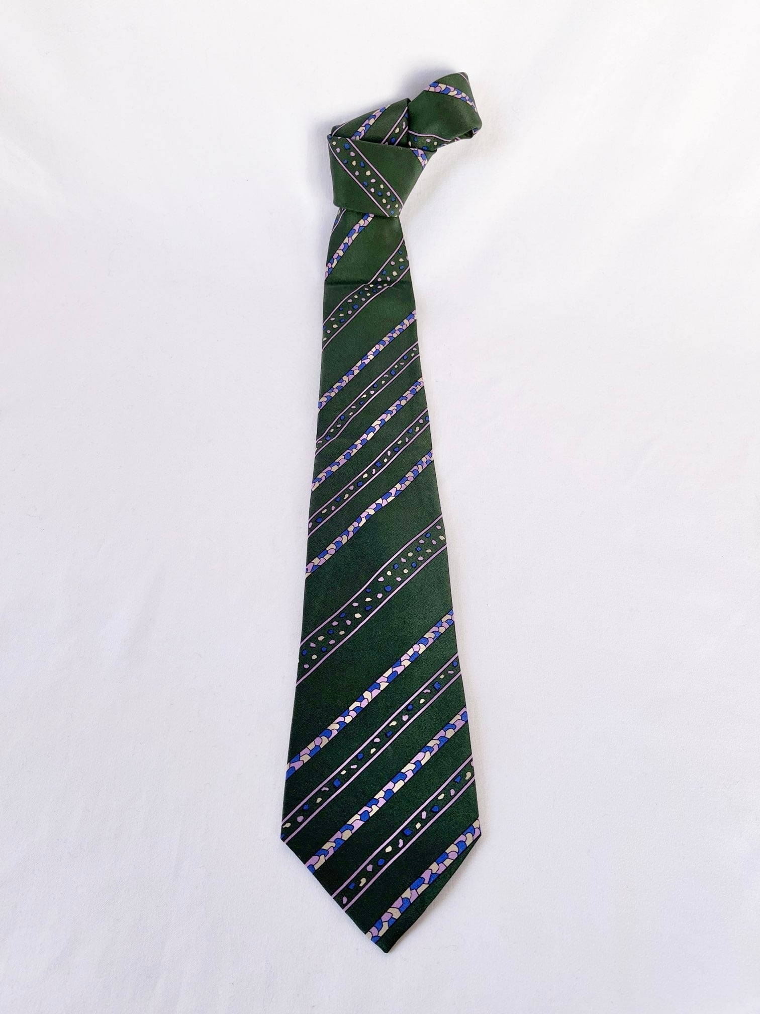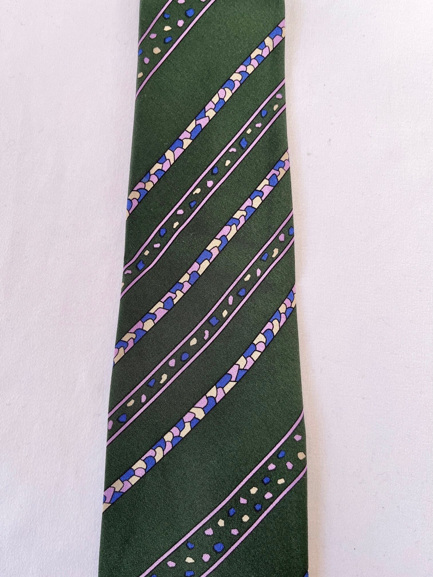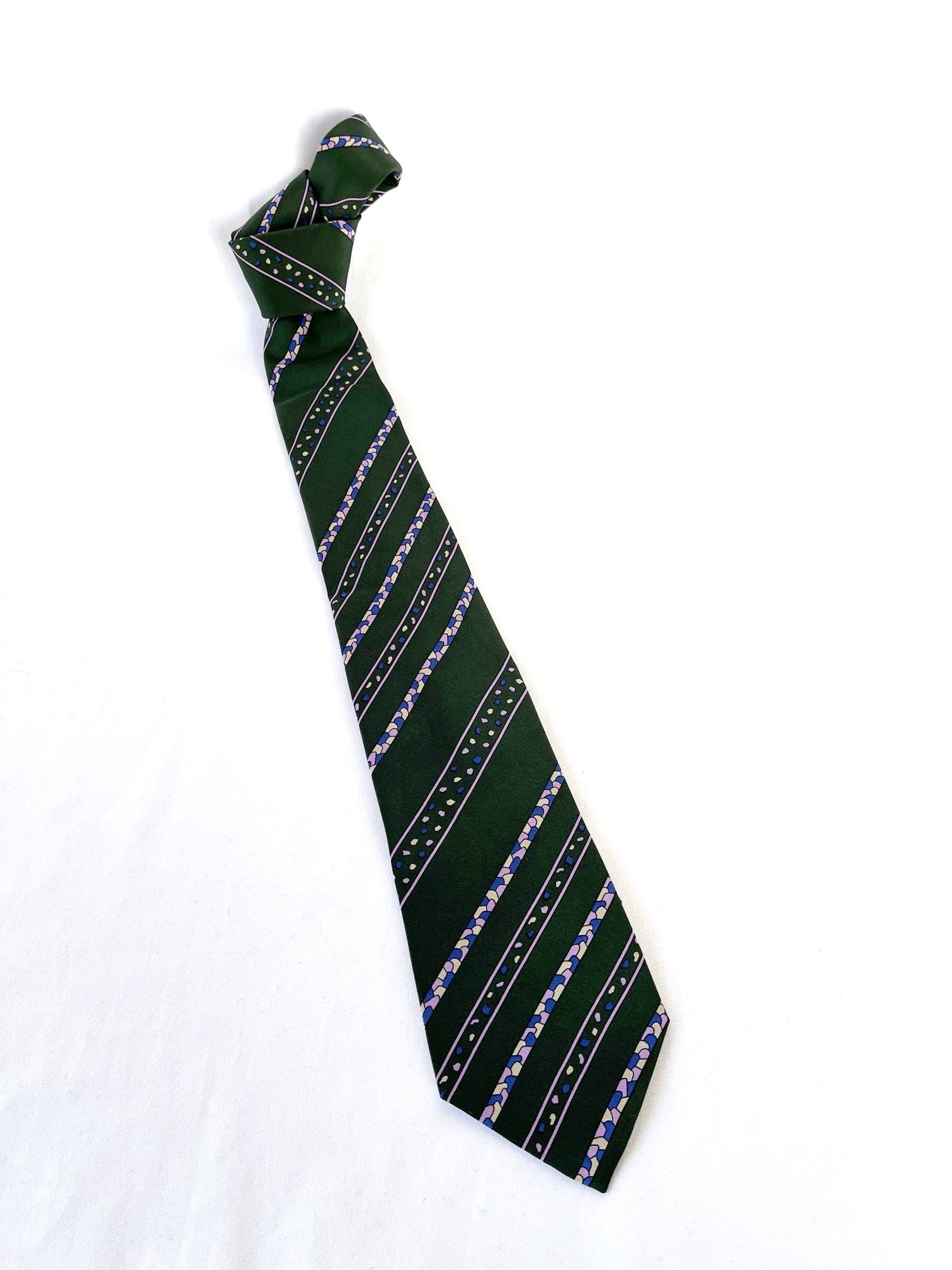 Dk.greenのベースにパープルストーンモチーフが 映えるDior Vintage ネクタイ。小粒なカラーストーンがユニークなデザイン☆遊び心あふれる一品です。