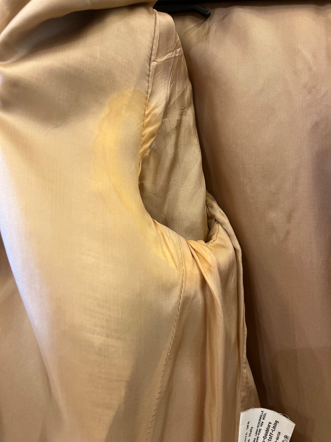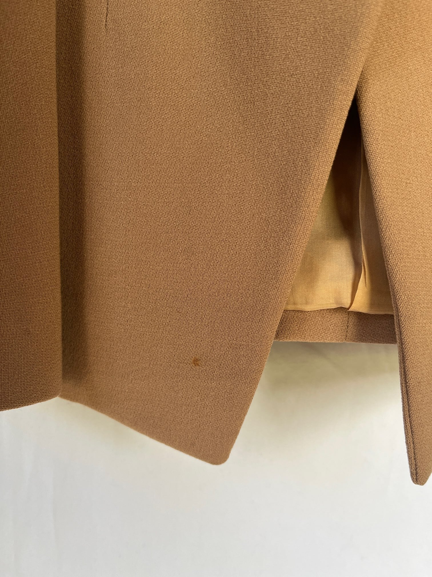 *内側両脇、表地に薄シミ有り(写真参照)含む多少の使用感ございますが、その他目立つダメージなく良い状態です。