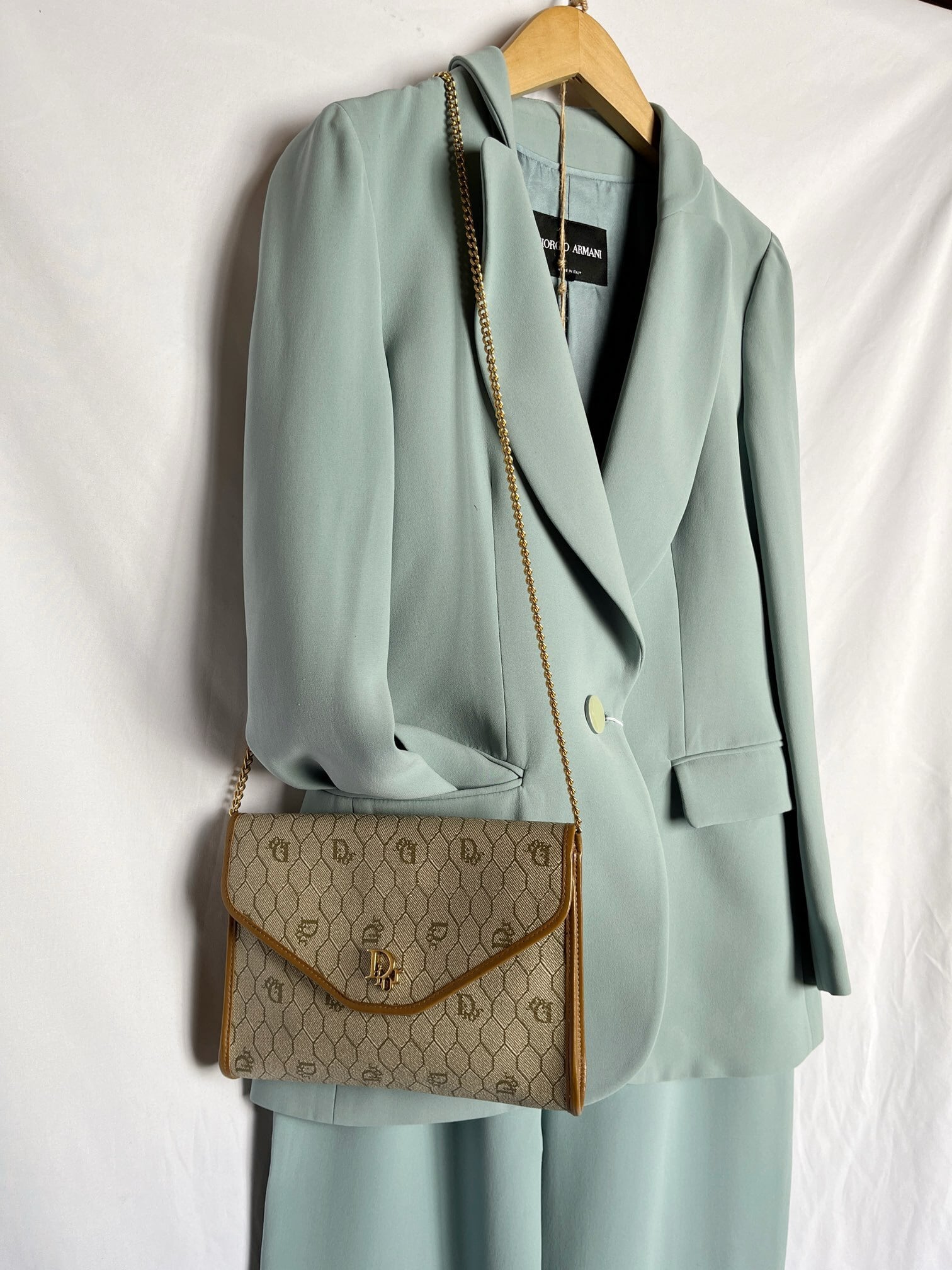 Lt.Brownのパイピングがアクセントに効いたDior 80's vintage ショルダーバッグ。