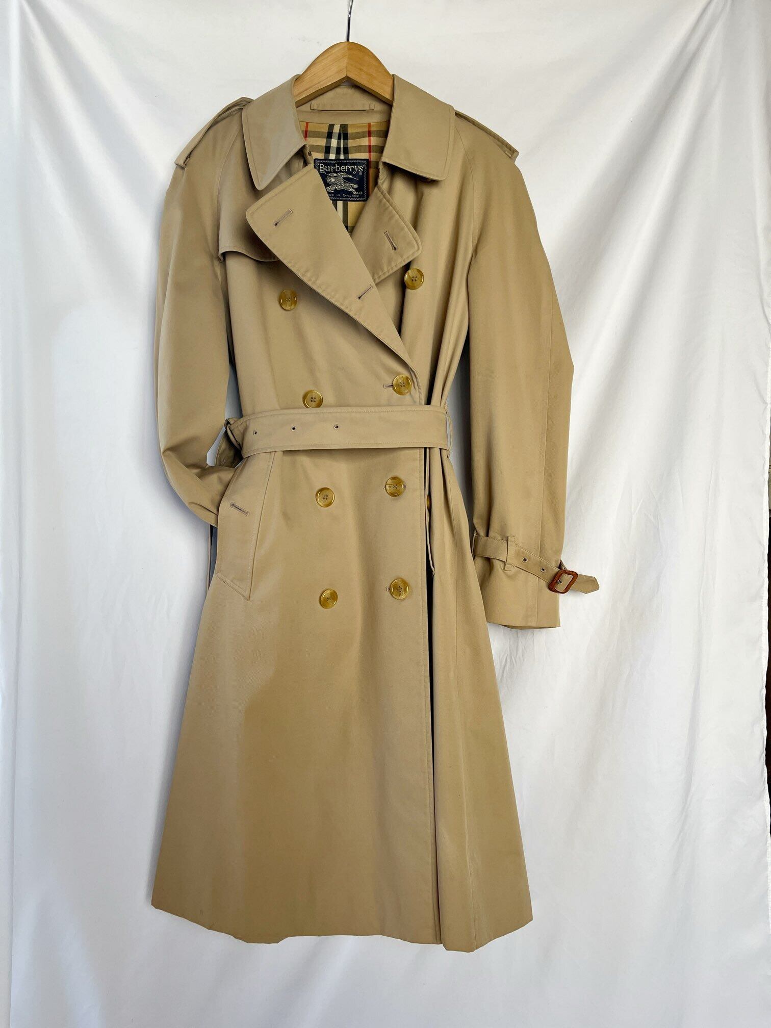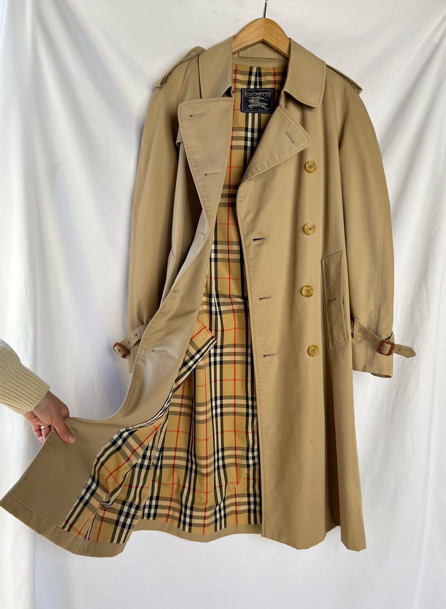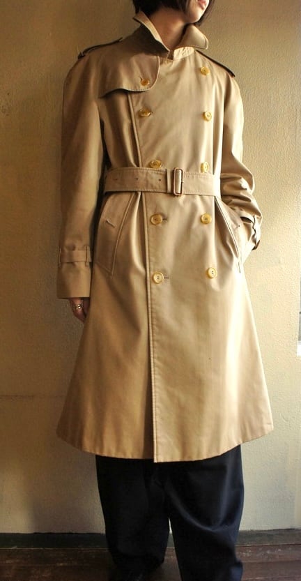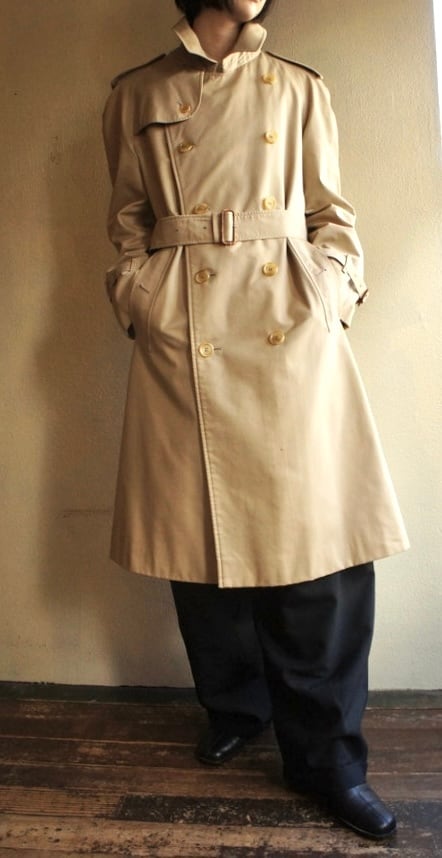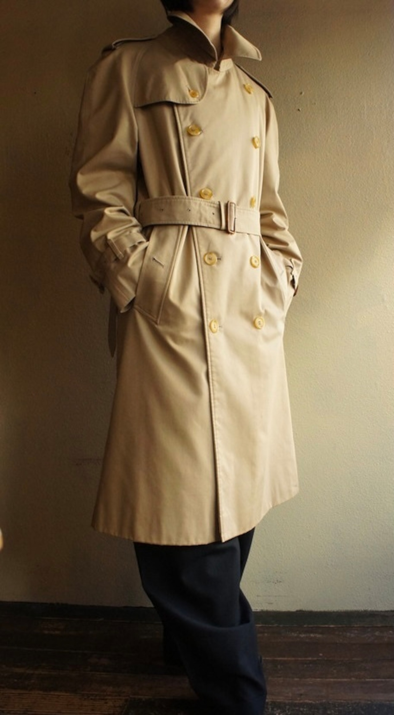 こくのあるベージュの色味が上品なBurberryトレンチコート、England製、80’s。