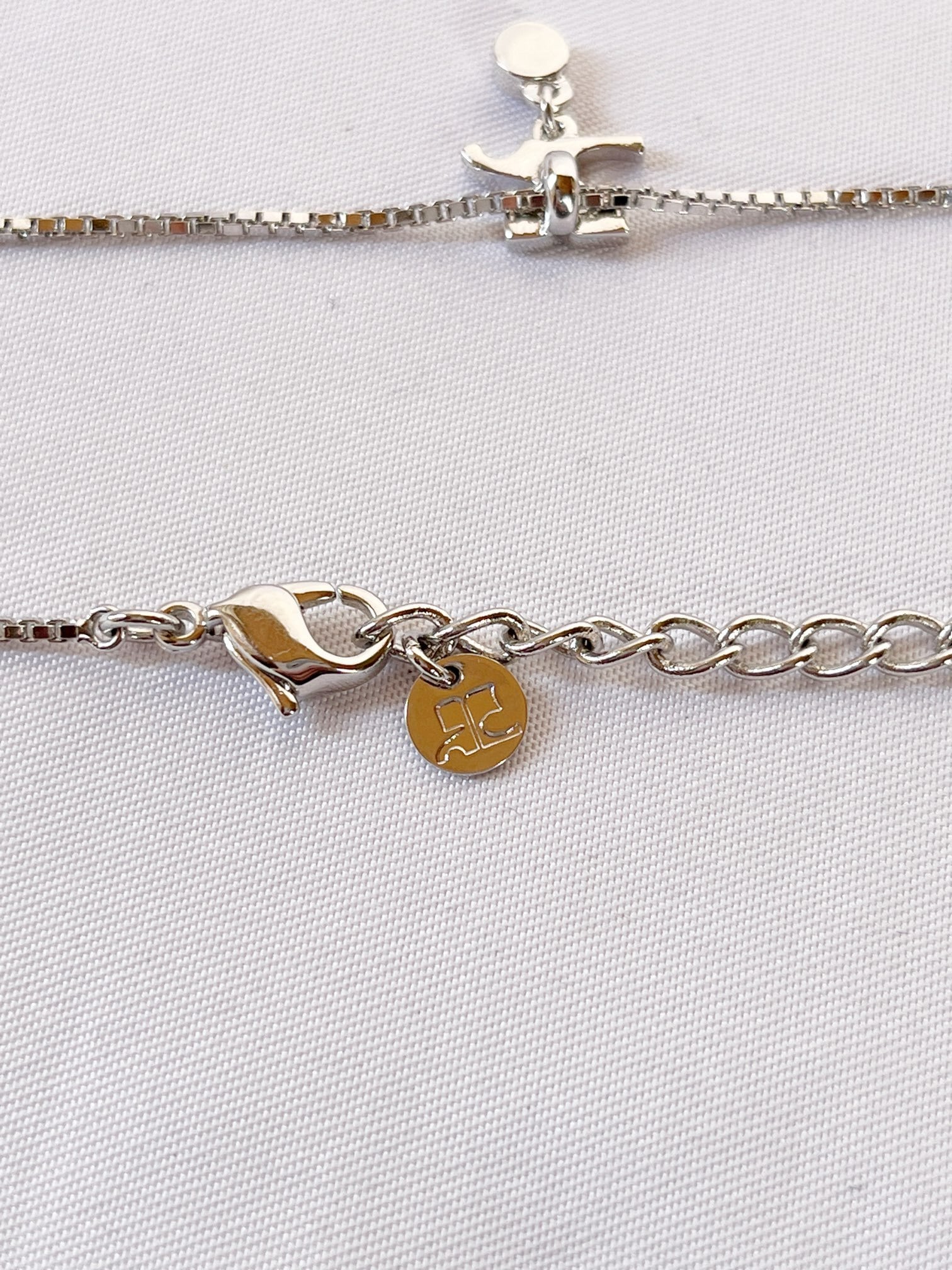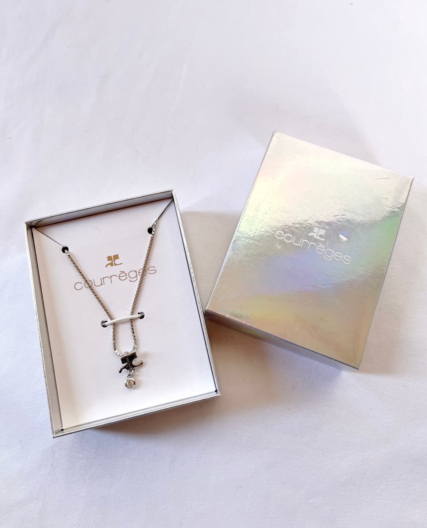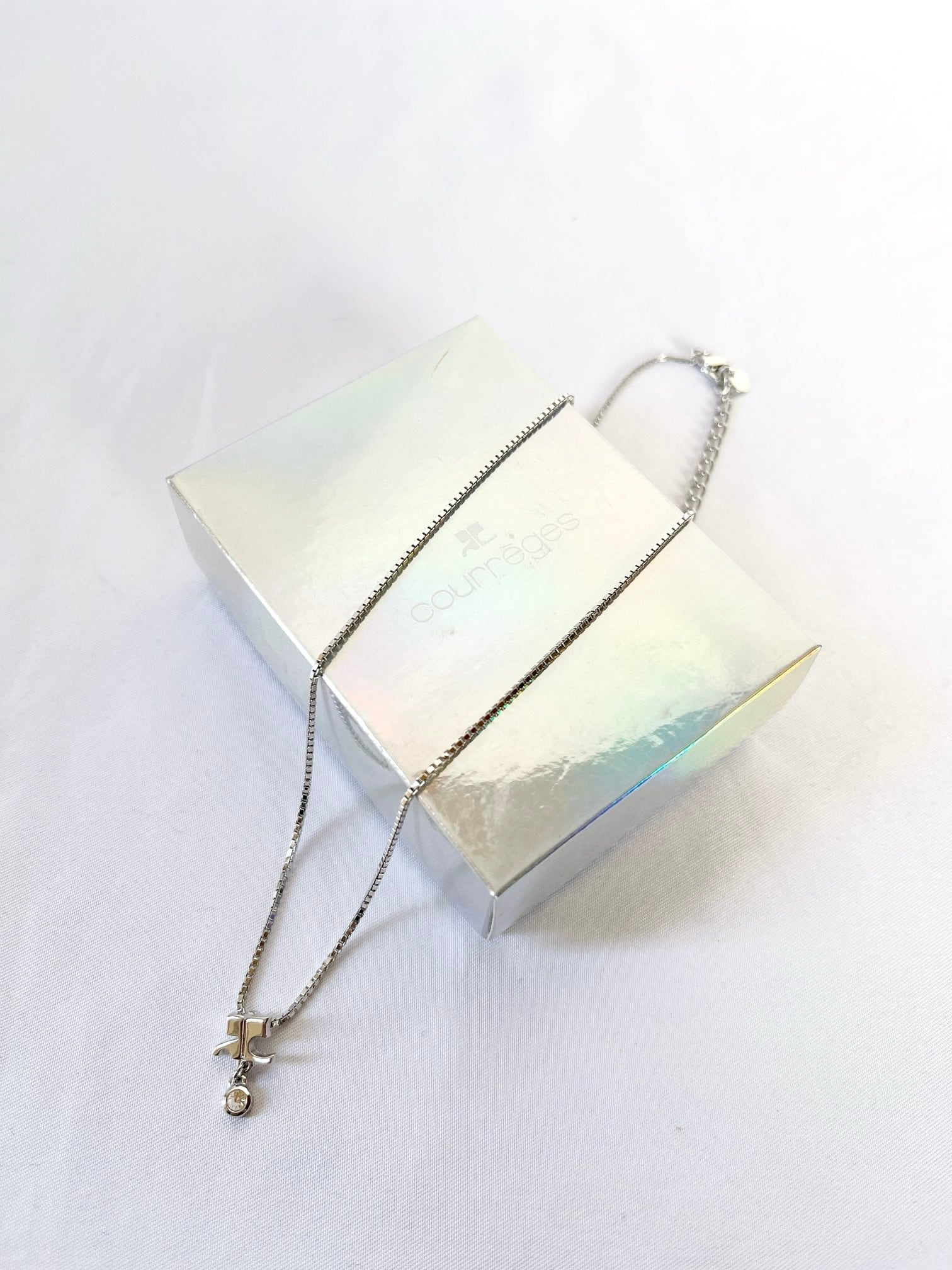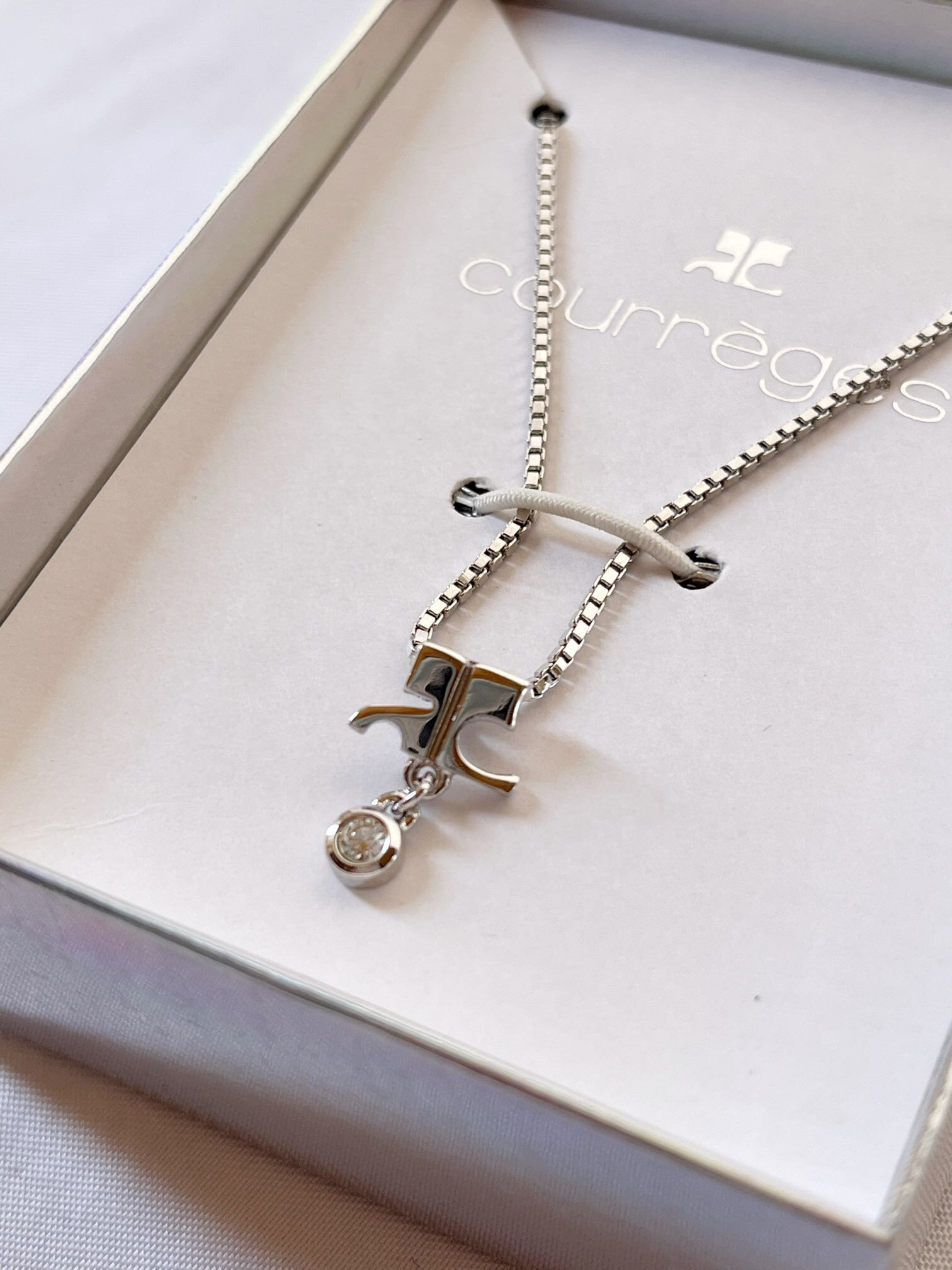 Courreges “Silver Logo×Rhinestone”Necklace with Box-Dead stock-
