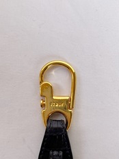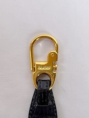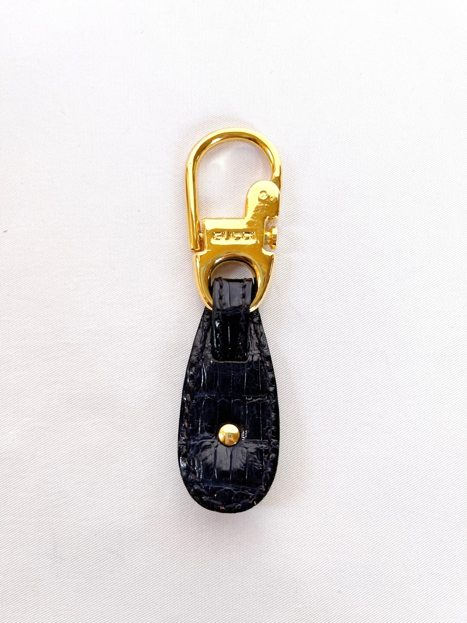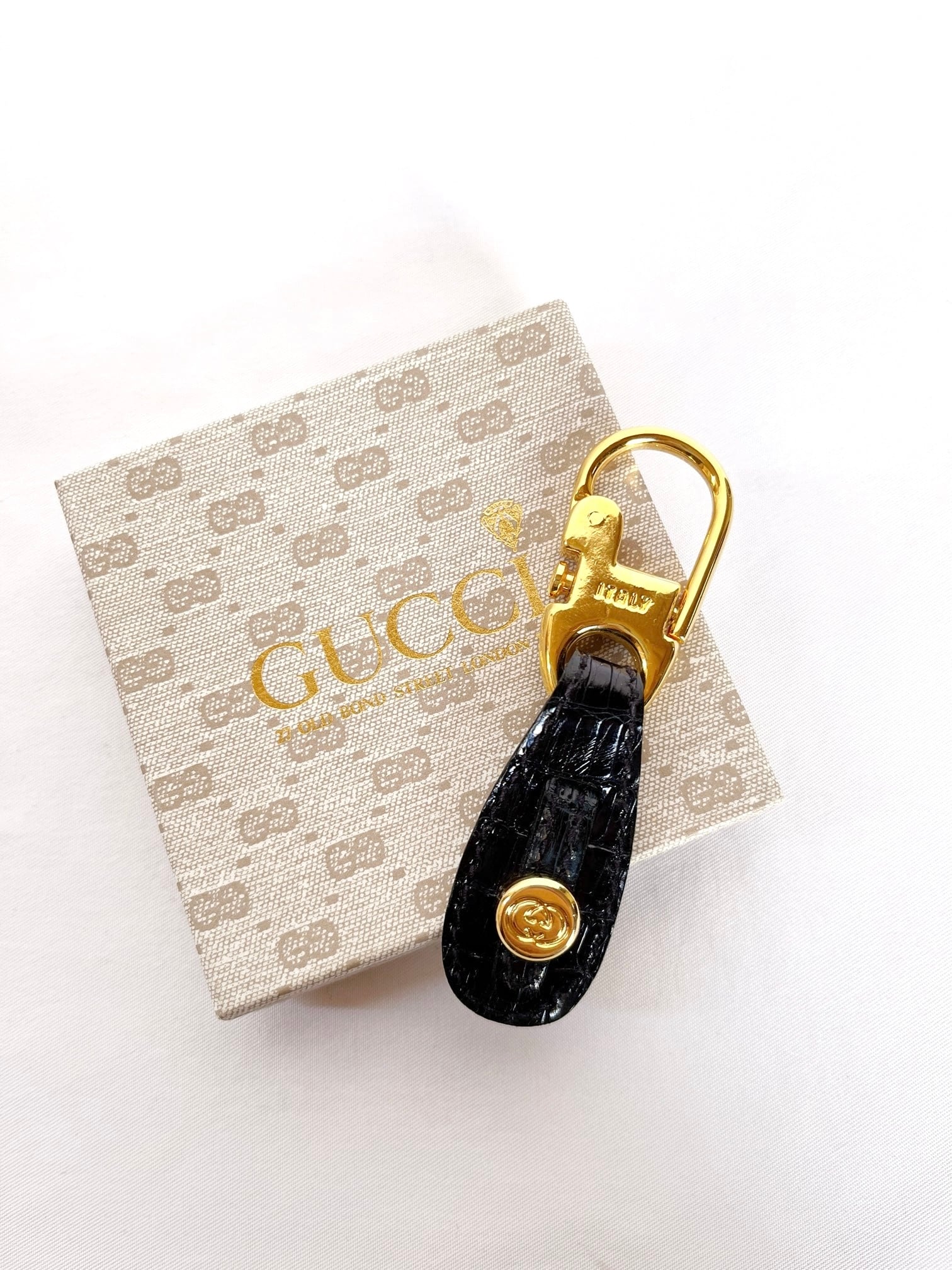 DK. NavyのレザーにゴールドのGGロゴが高級感のあるGUCCI 80’s Vintageキーチャーム。箱つき☆☆