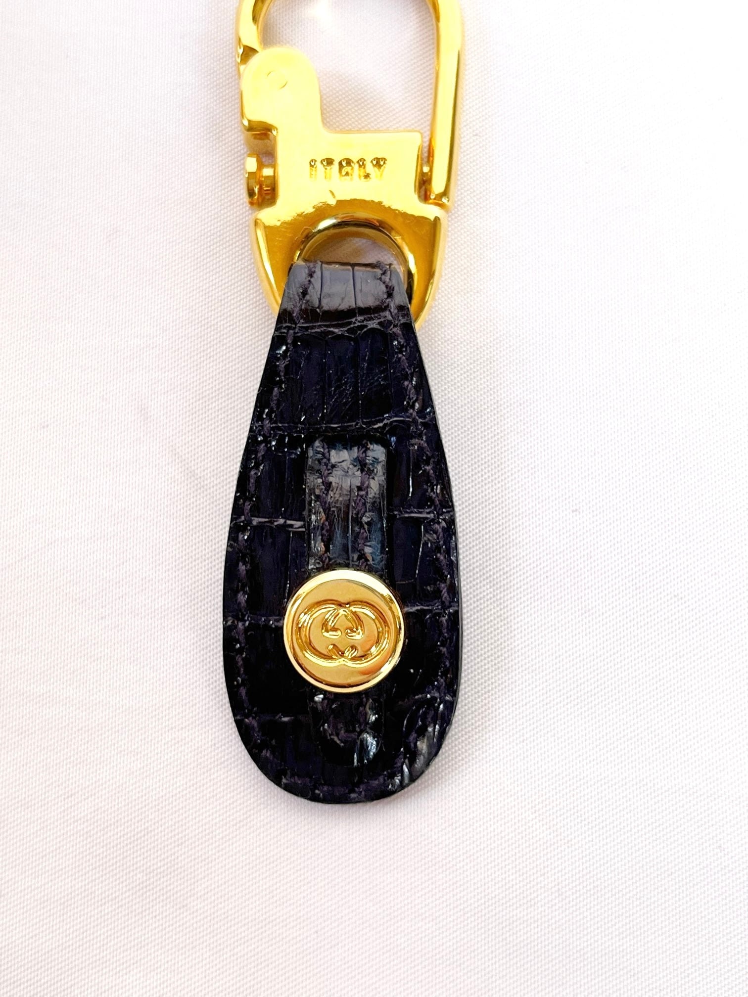 GUCCI“DK.Navy Leather” Gold GG Logo Key Charm with Box