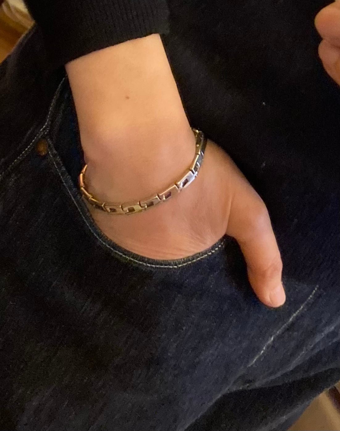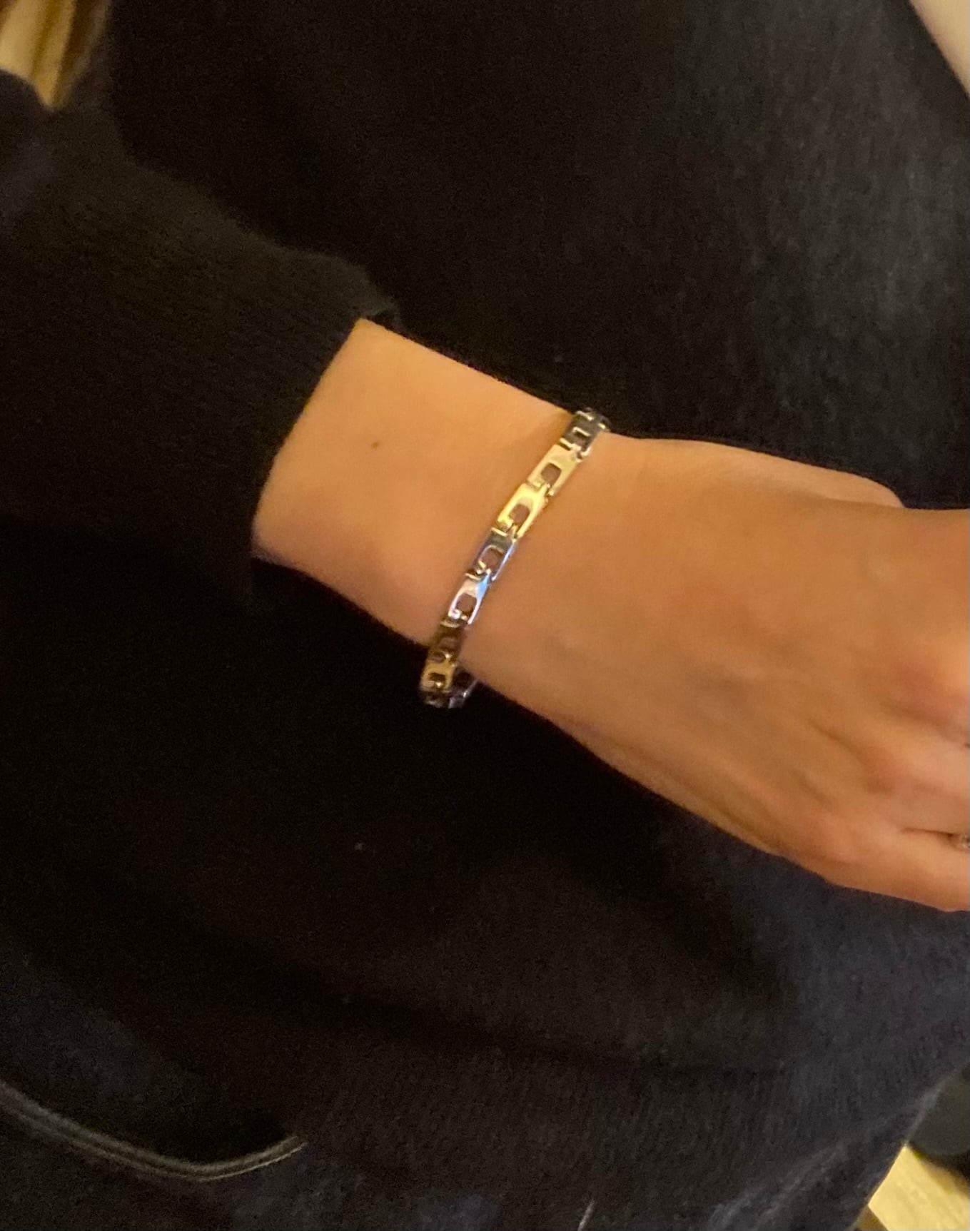 幅は細めでくり抜きデザインなので、程良く抜け感のある一品。滑らかな手触りでストレスフリーな付け心地です。