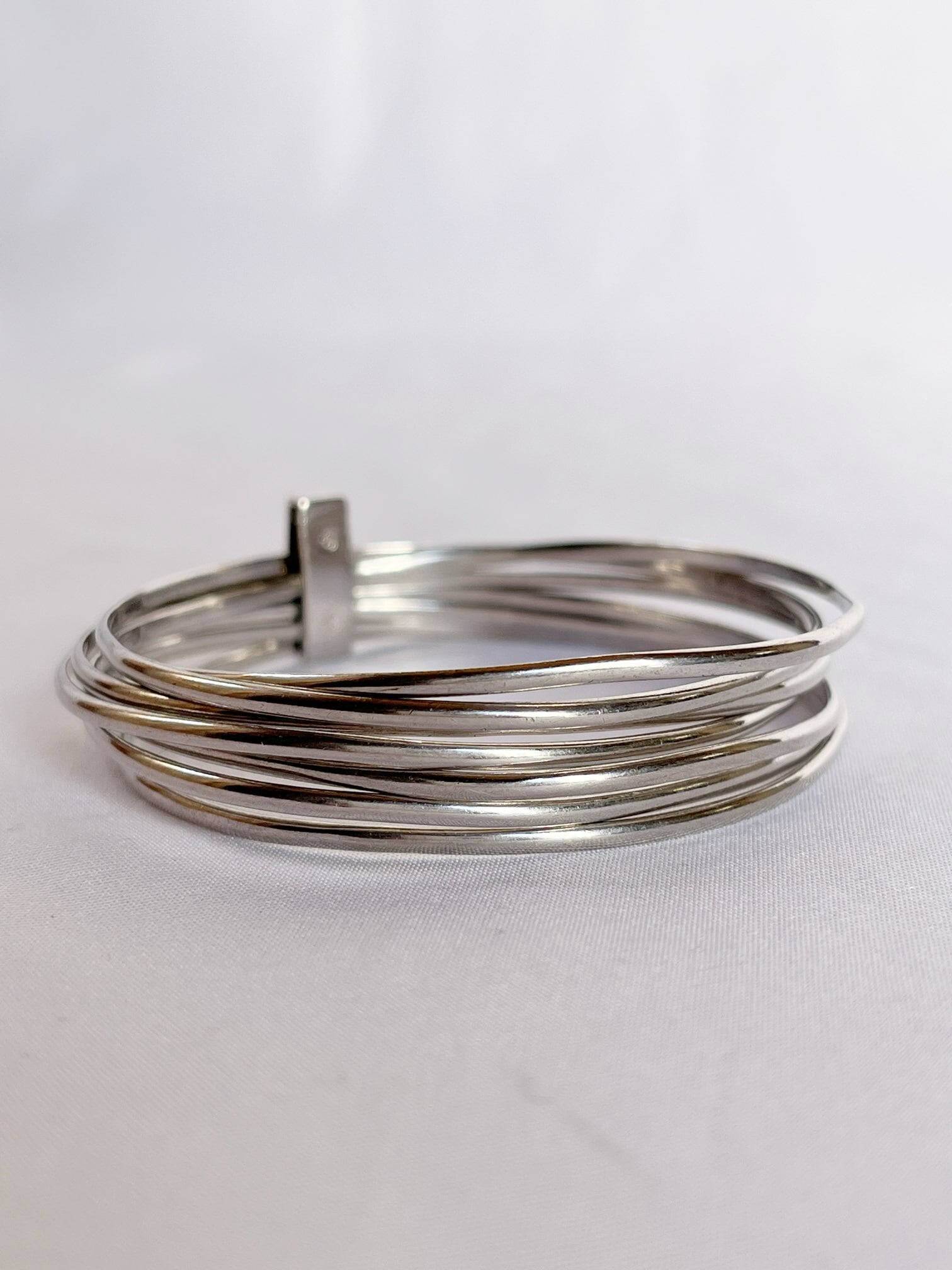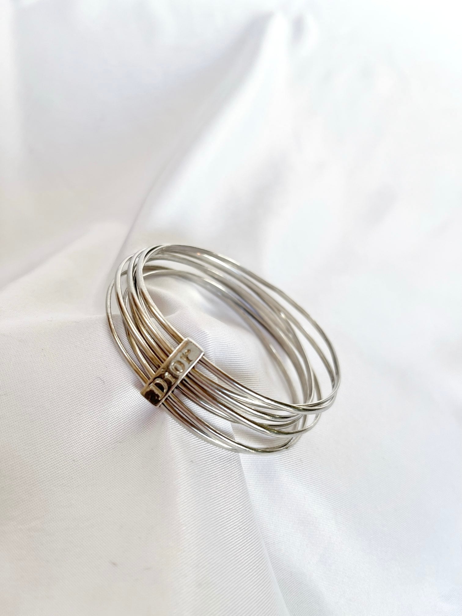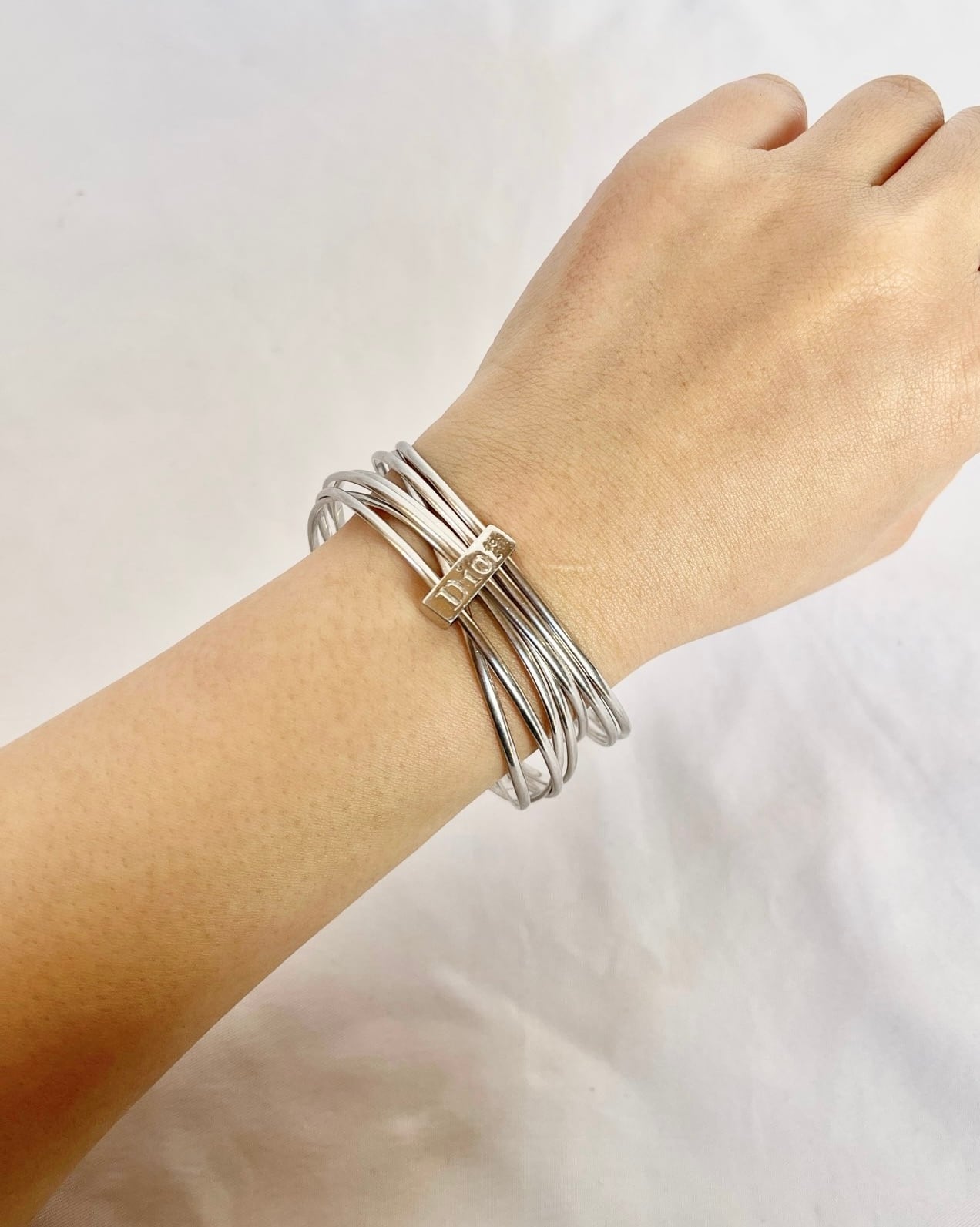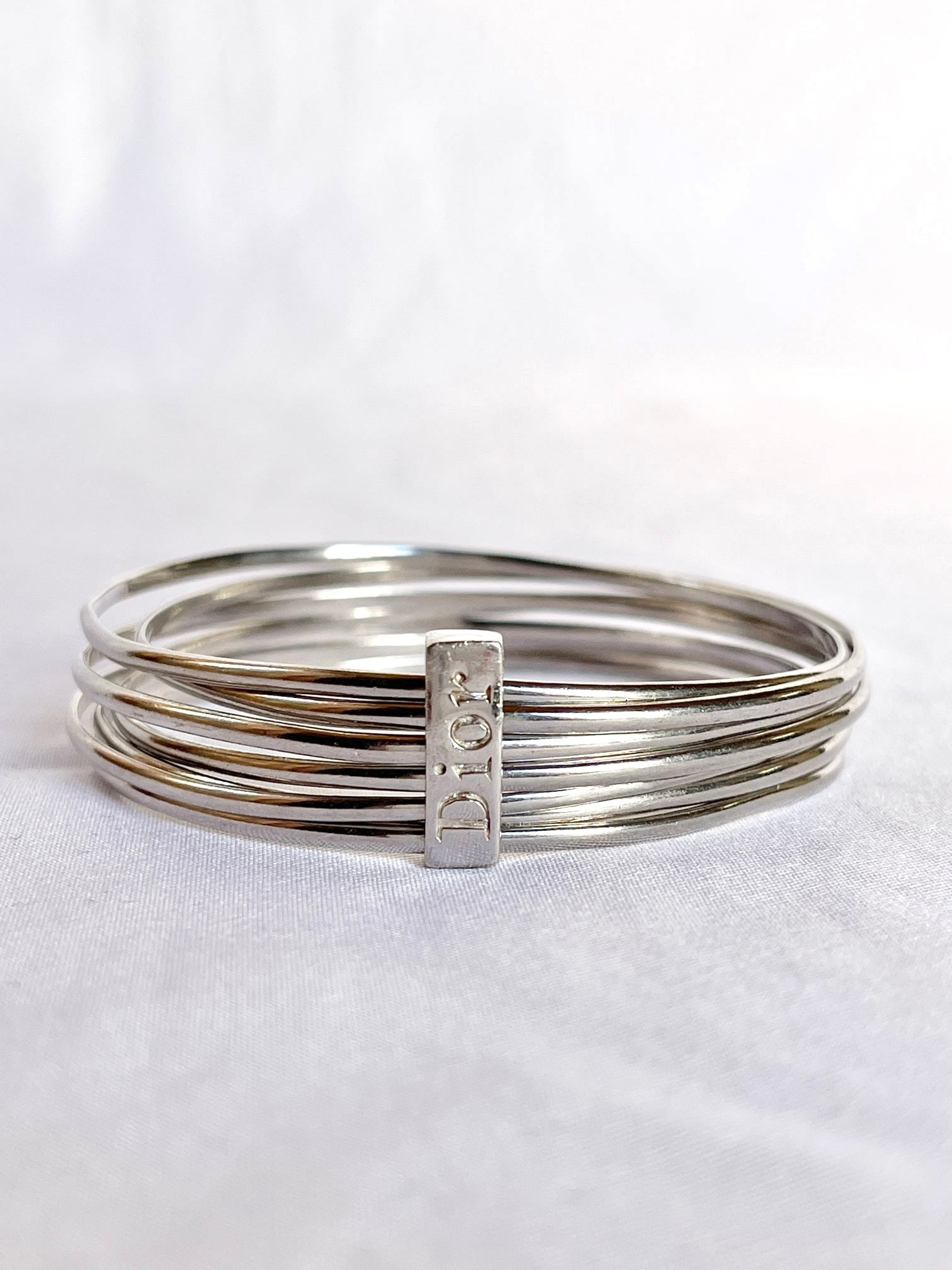 細い7つのバングルがレイヤードされたDior Silver925 のバングル。