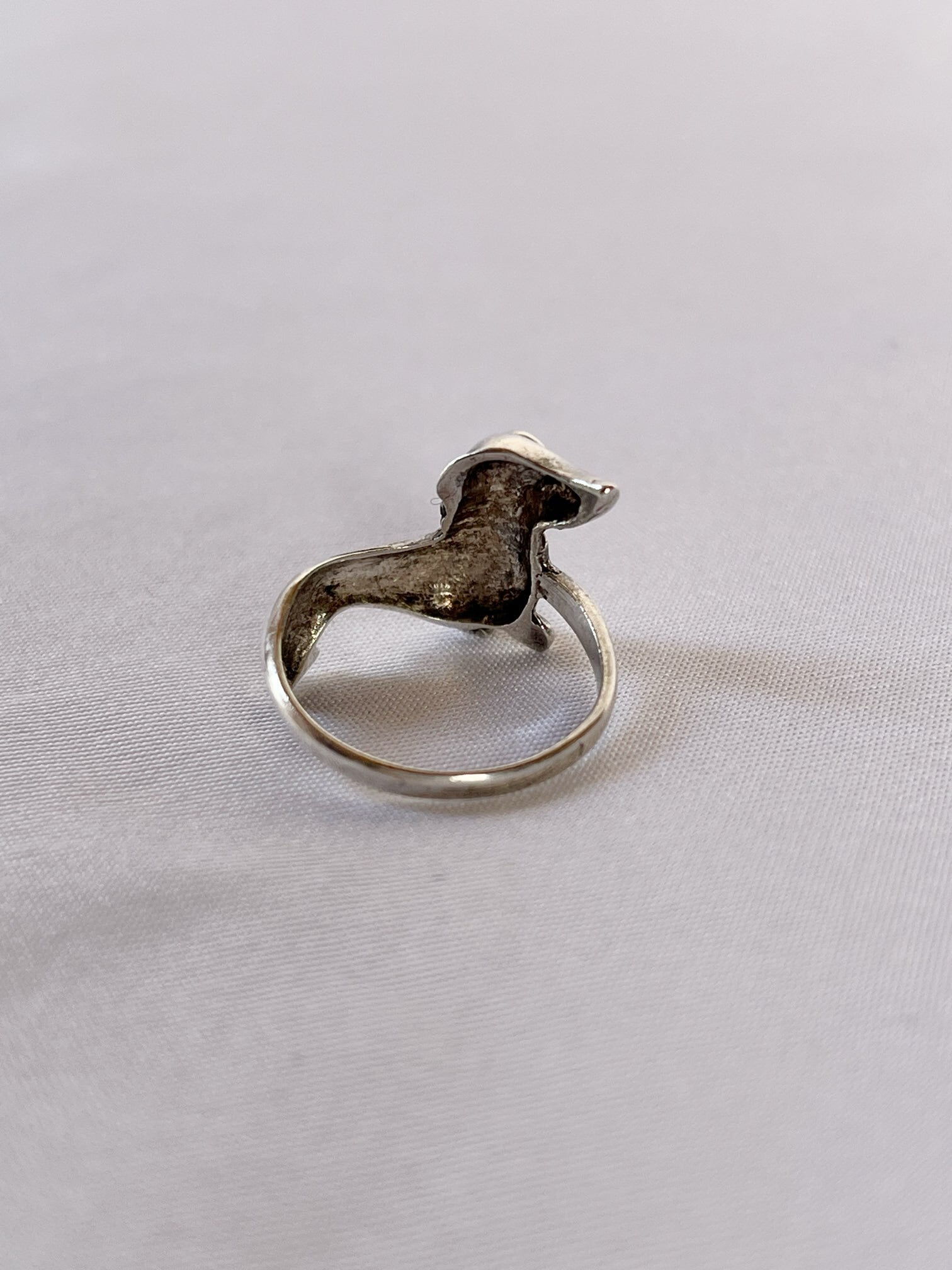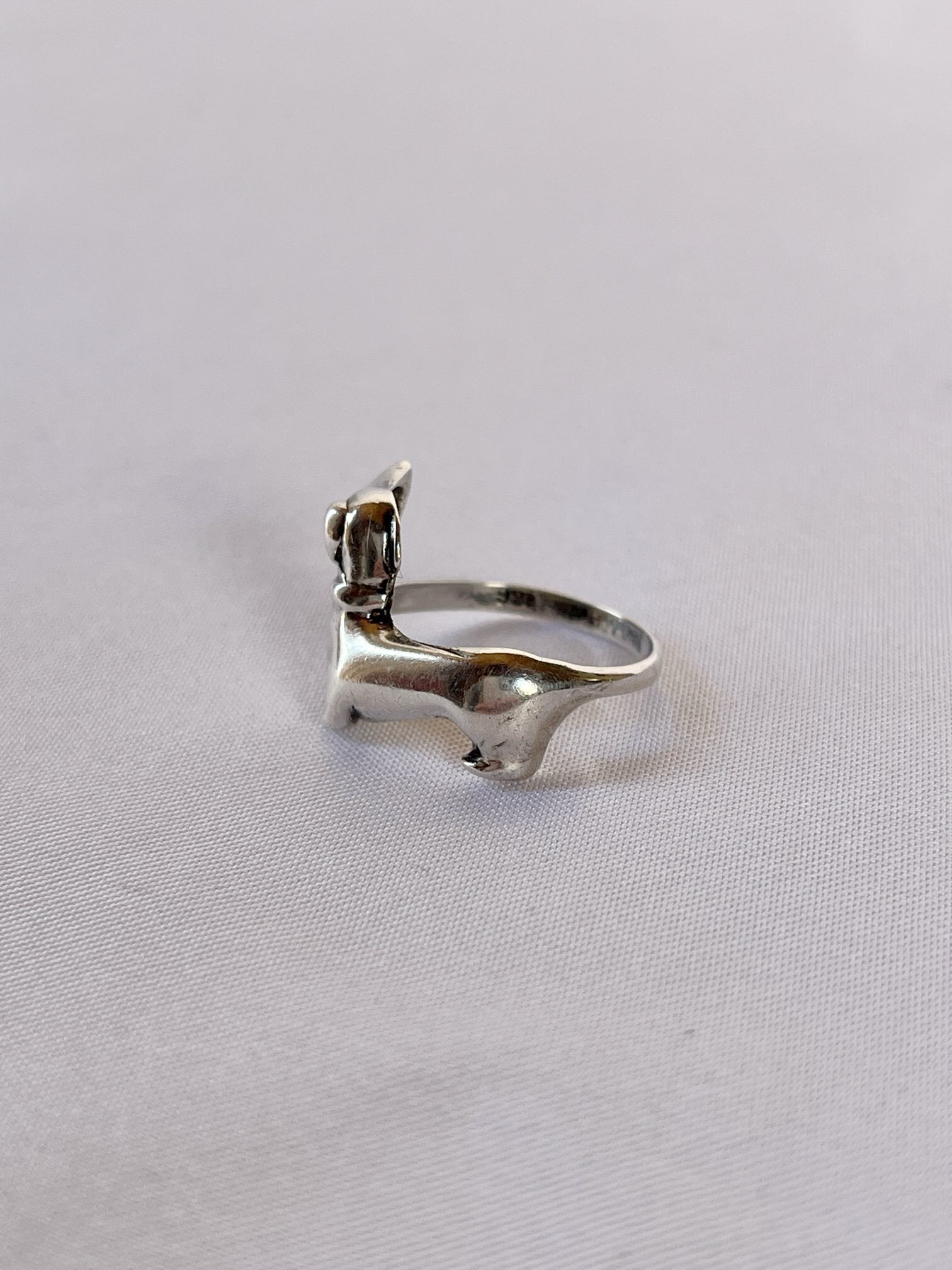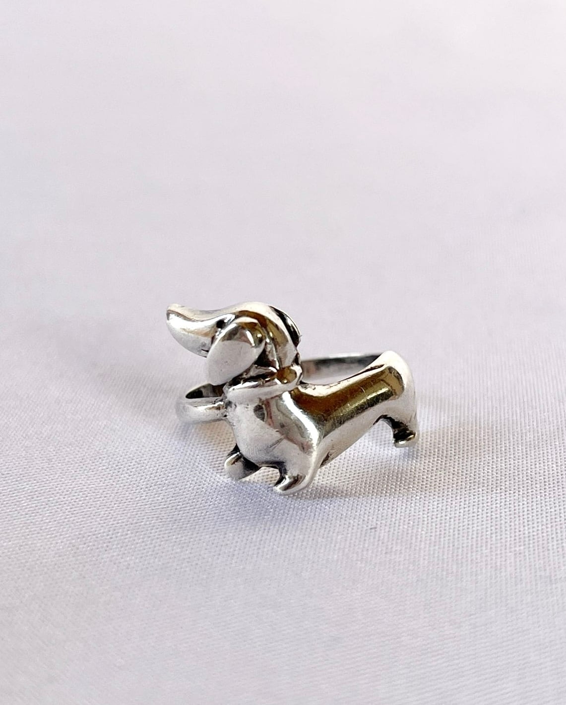 ダックスフンドのモチーフがcuteなvintage silver925リング。立体的ながらも自然にカーブの効いたモチーフがすっと肌になじむ一品です。手元をみる度に癒されます。。