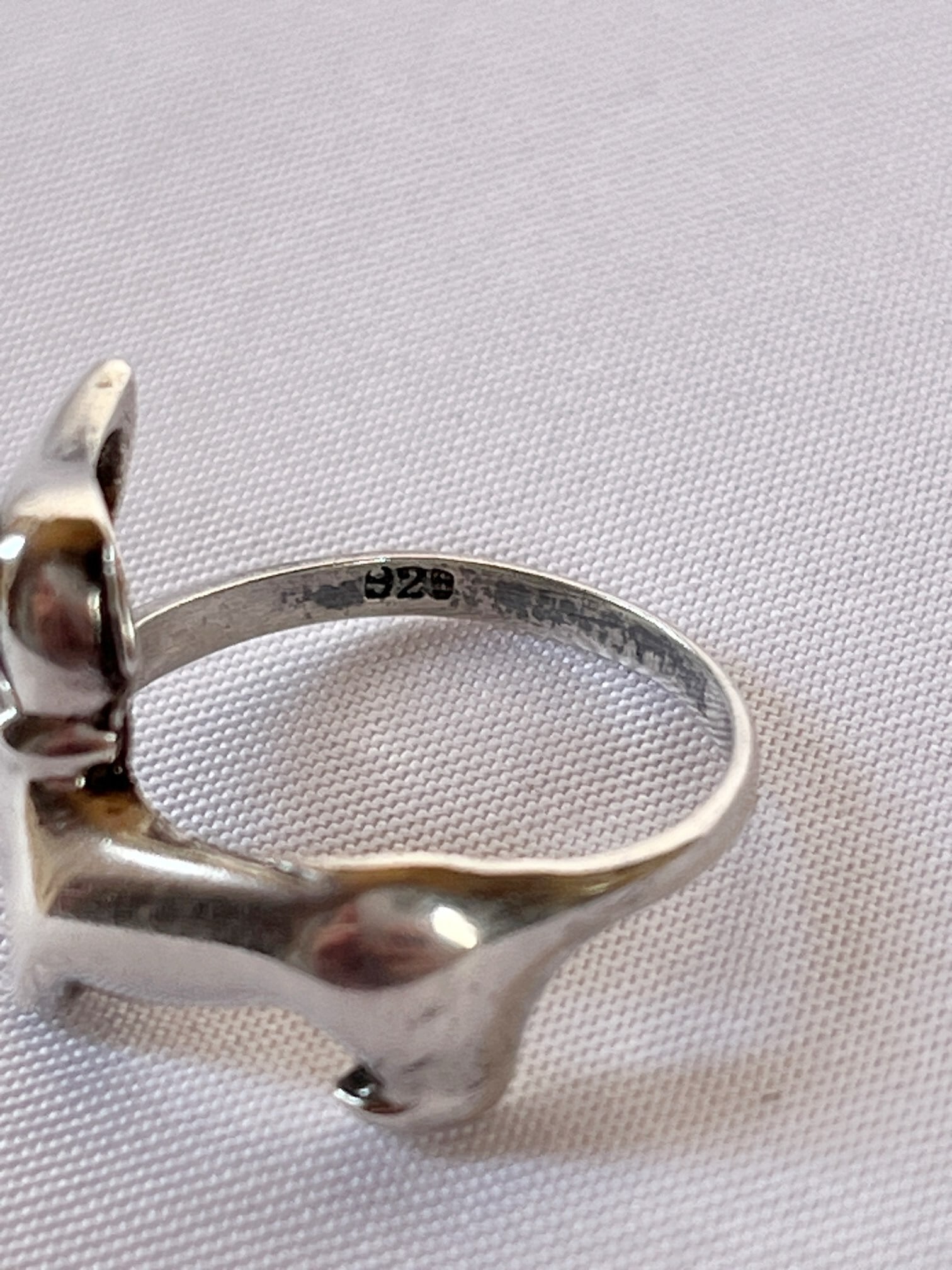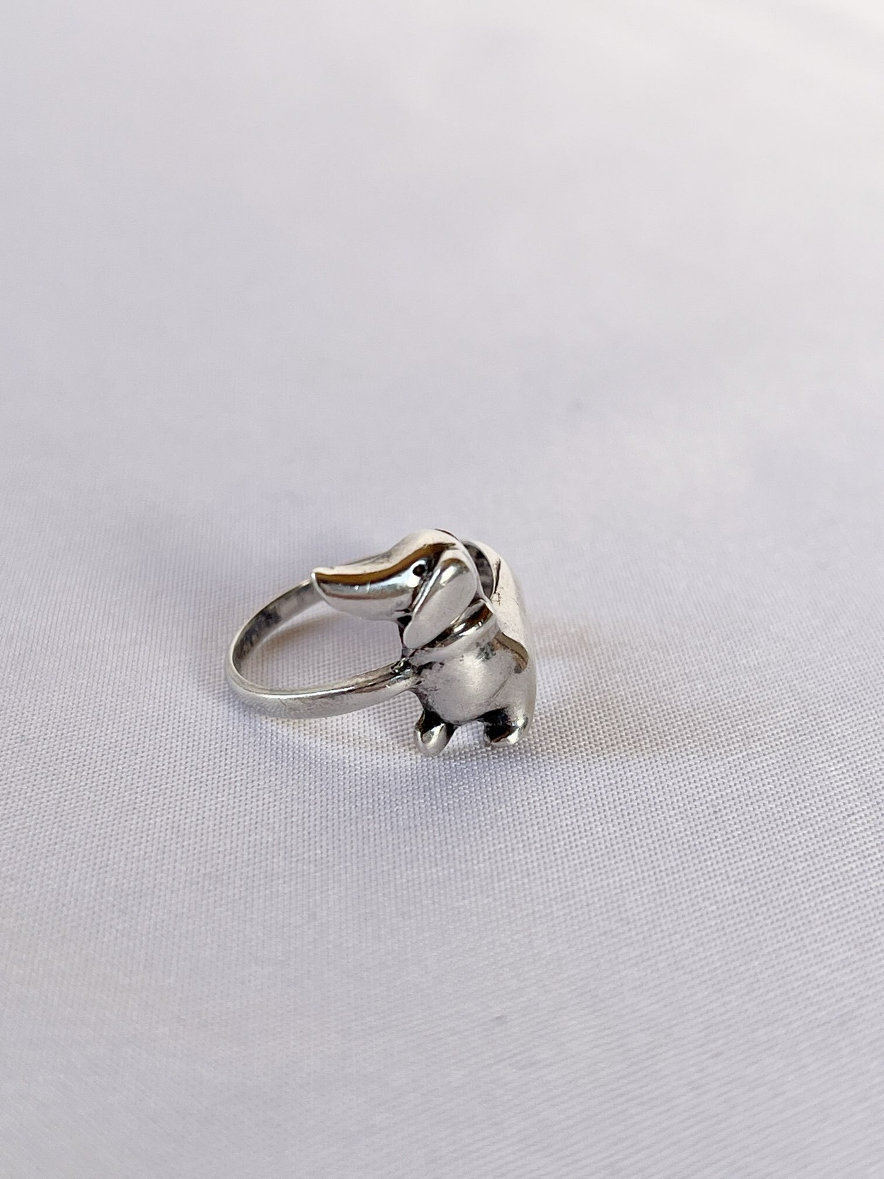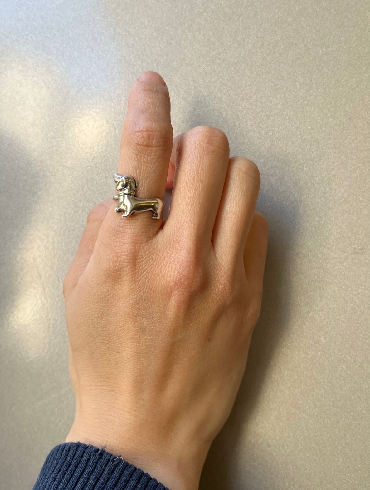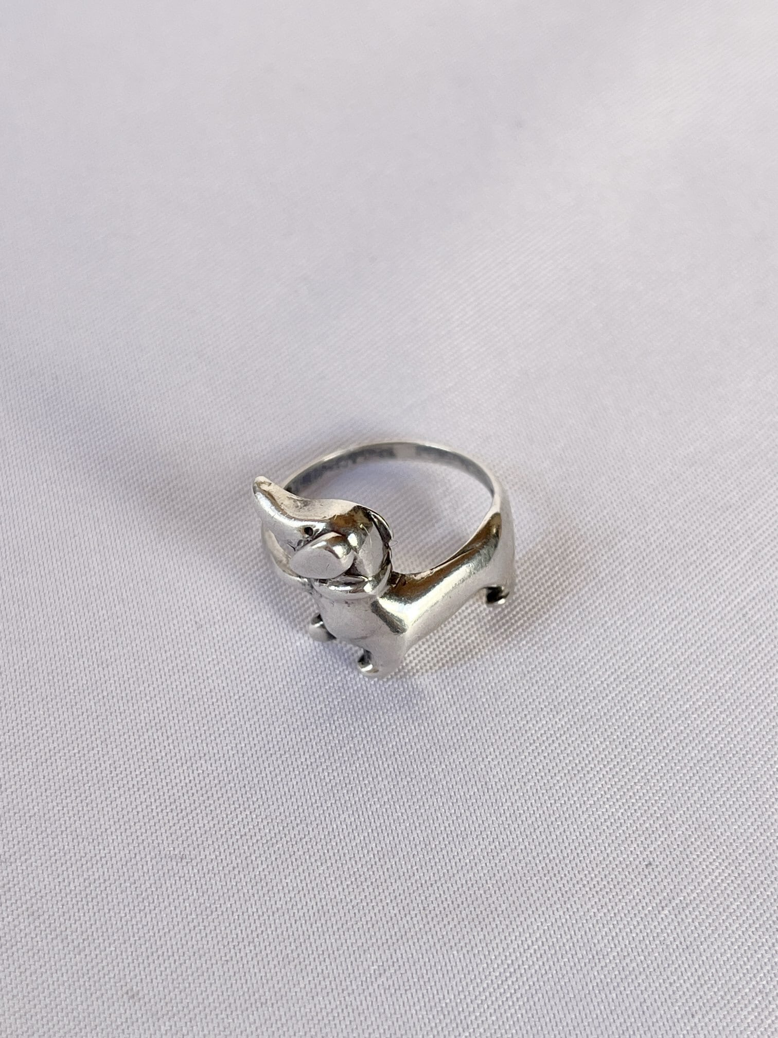 ダックスフンドのモチーフがcuteなvintage silver925リング。立体的ながらも自然にカーブの効いたモチーフがすっと肌になじむ一品です。手元をみる度に癒されます。。