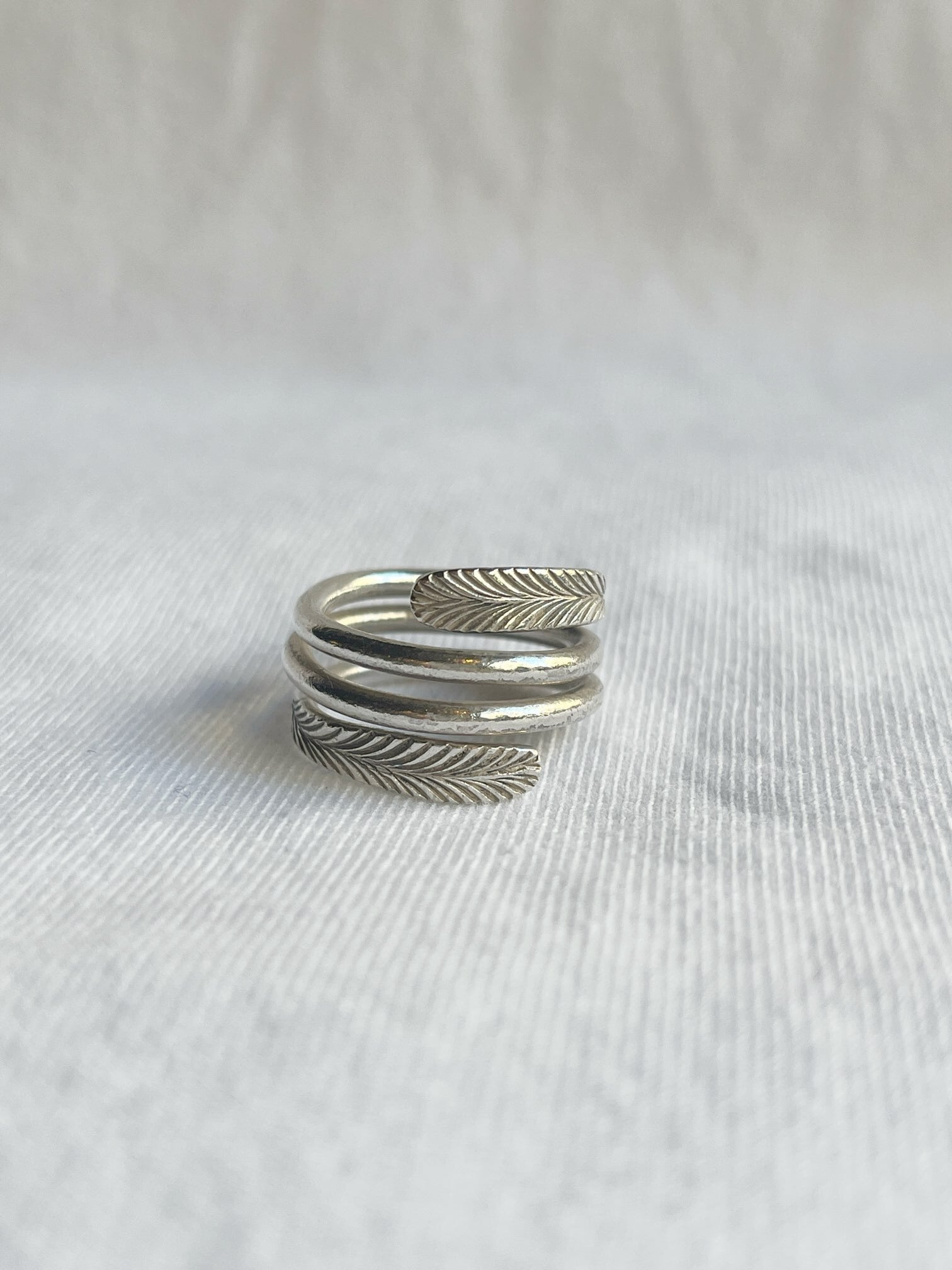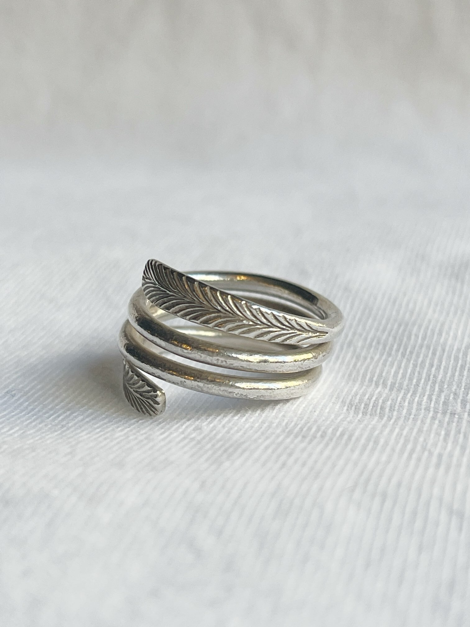 鳥の羽のモチーフがオリエンタルな雰囲気の Vintage Silver925 リング。くるくると指に巻きつくような デザインがユニーク◎