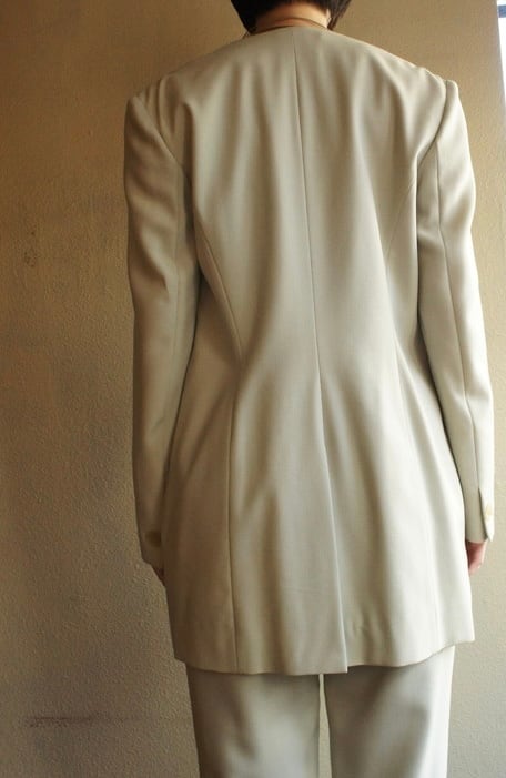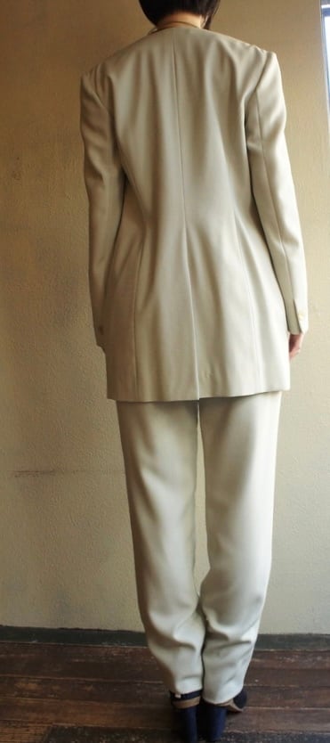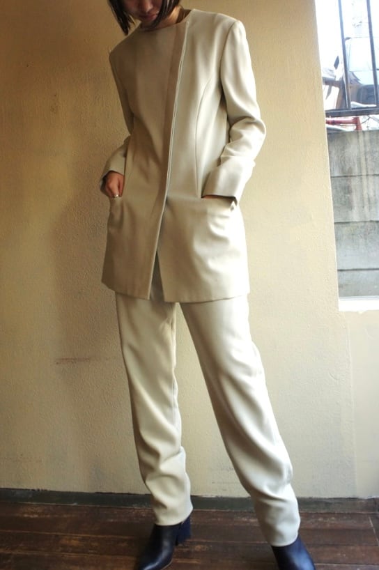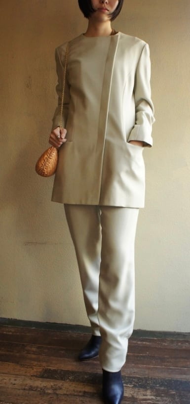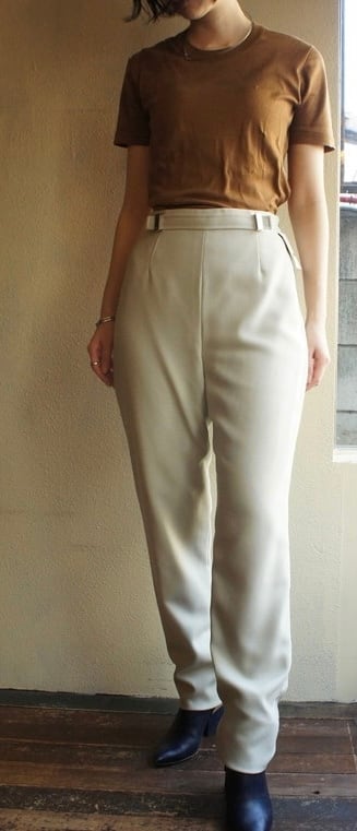 パンツはハイウエストでテーパードの効いた美しいシルエットです。