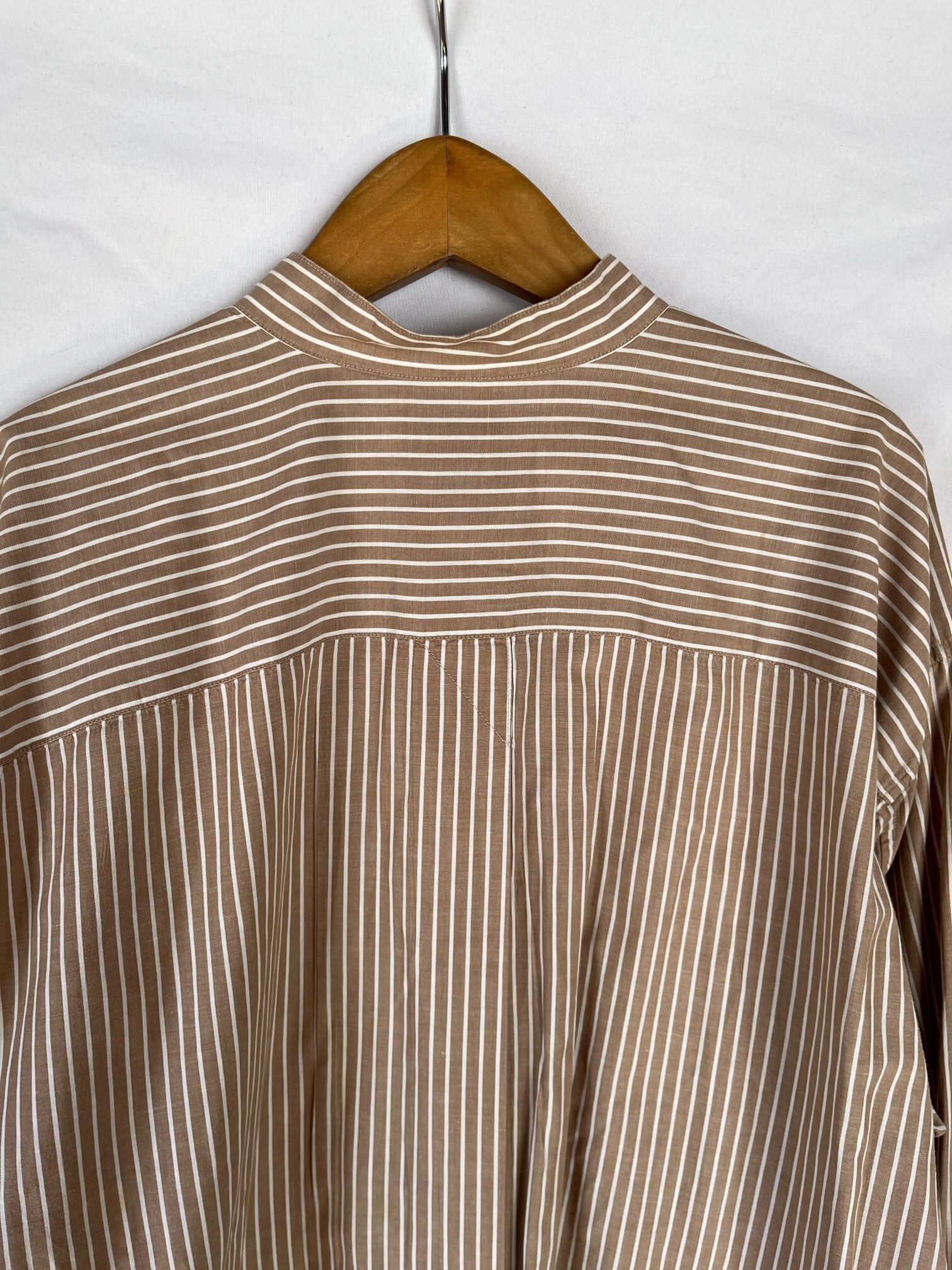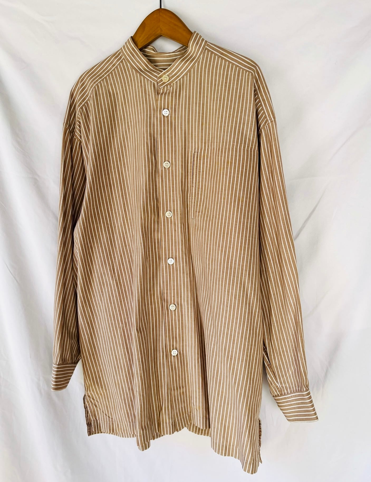 Lt. BrownにWhiteのストライプ柄が気品のある ISSEY MIYAKE Vintage シャツ。men’s。