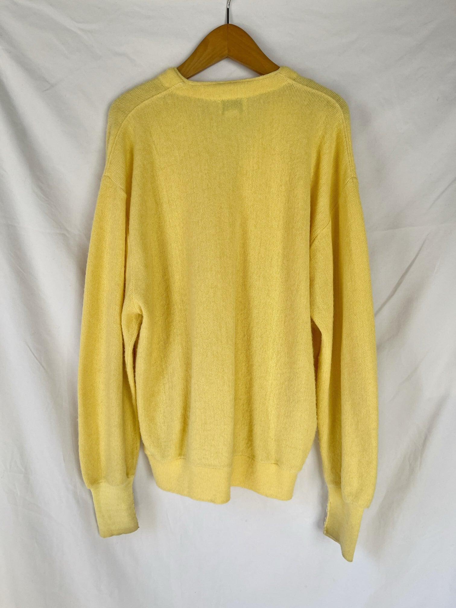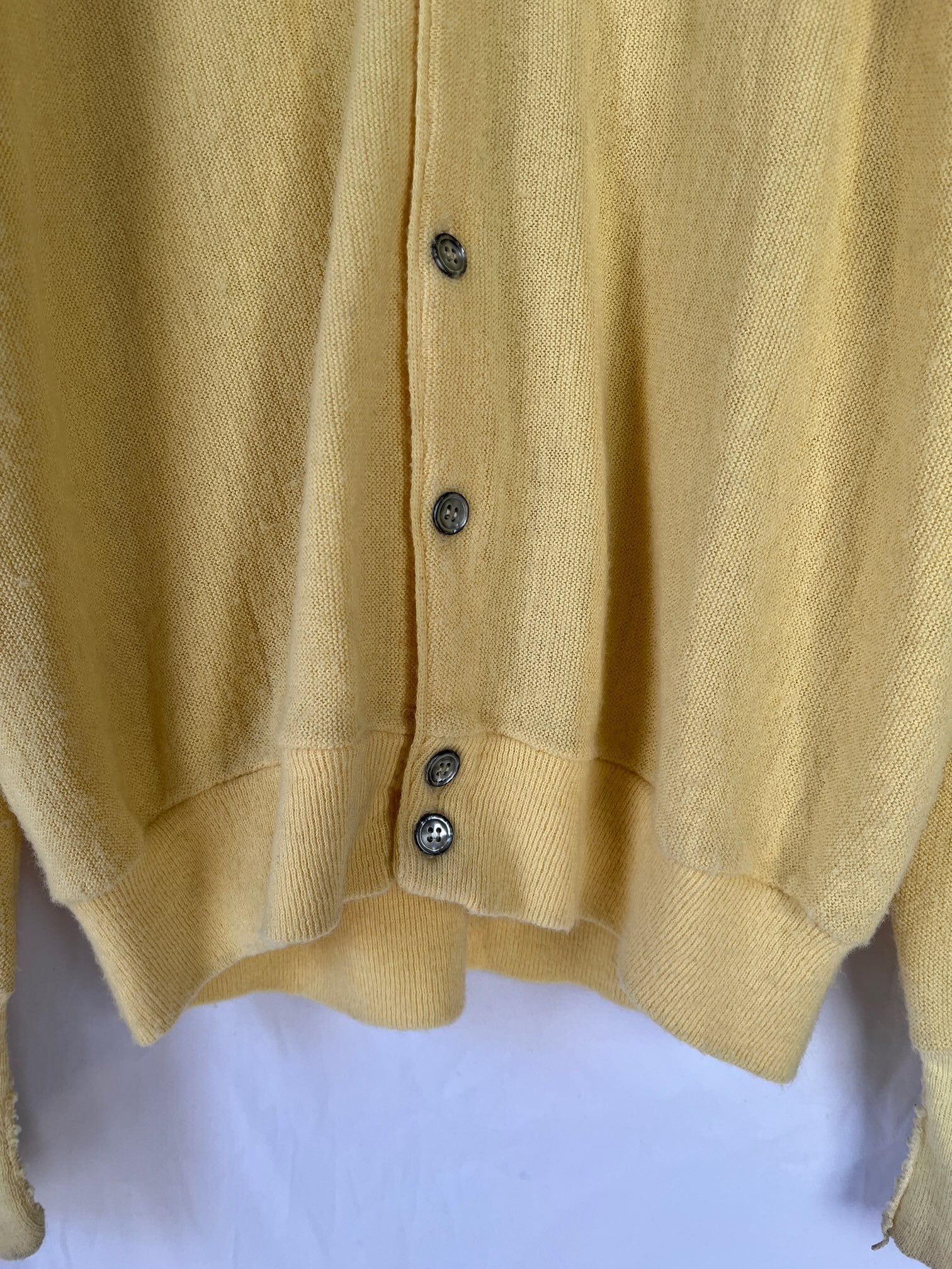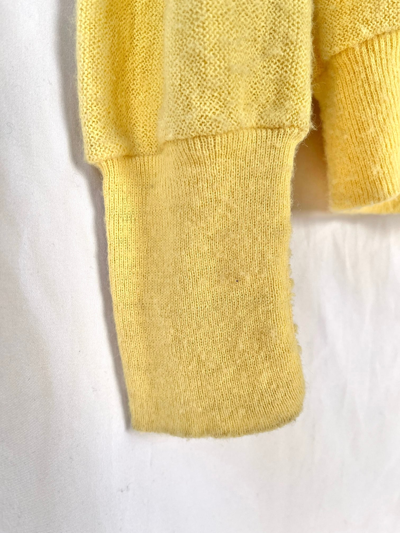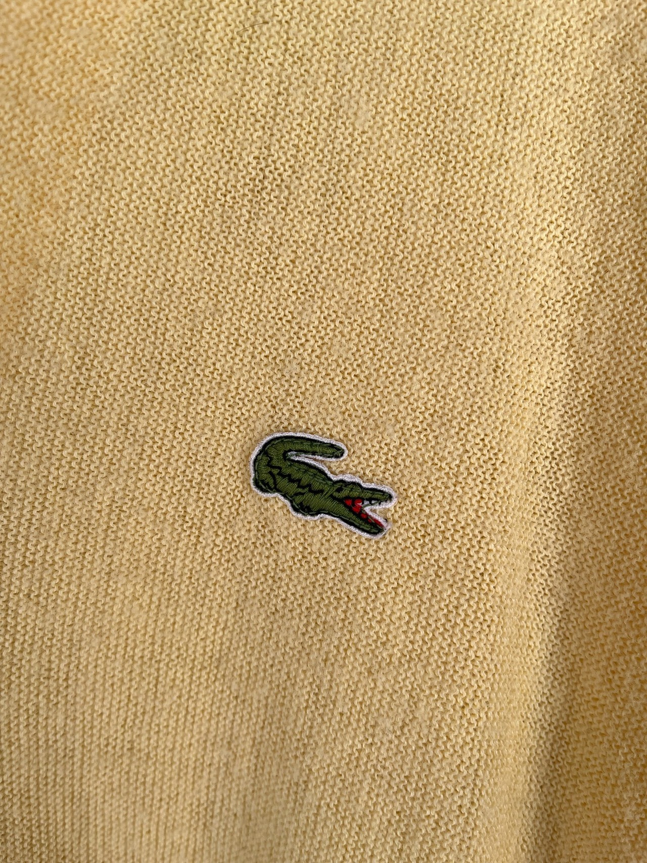 明るいクリームイエローの色味がハツラツとした印象のLACOSTE 80's アクリルVintageカーディガン。