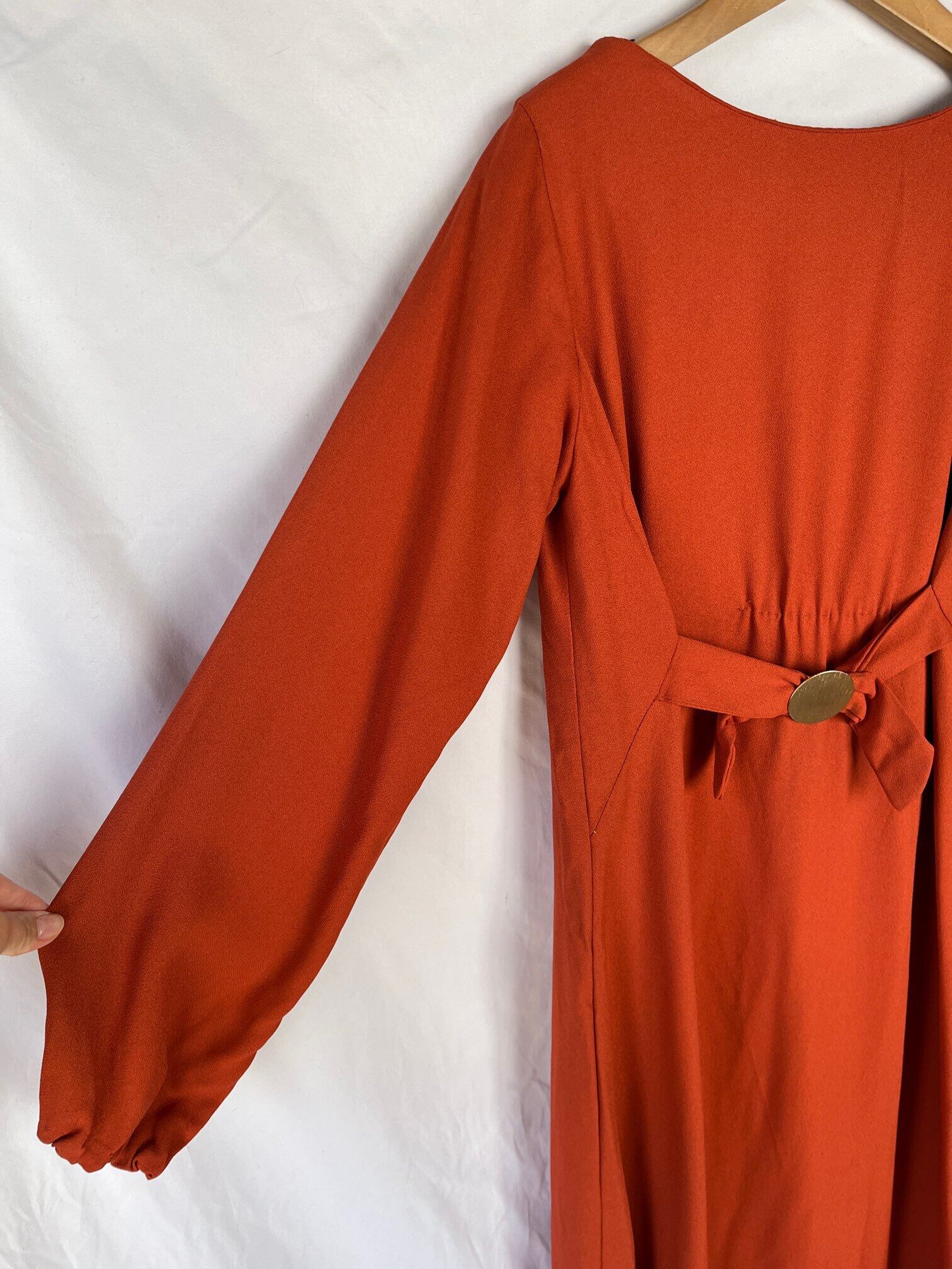 オレンジカラーの色味が目をひくFrance 1960~70's Vintage ワンピース。