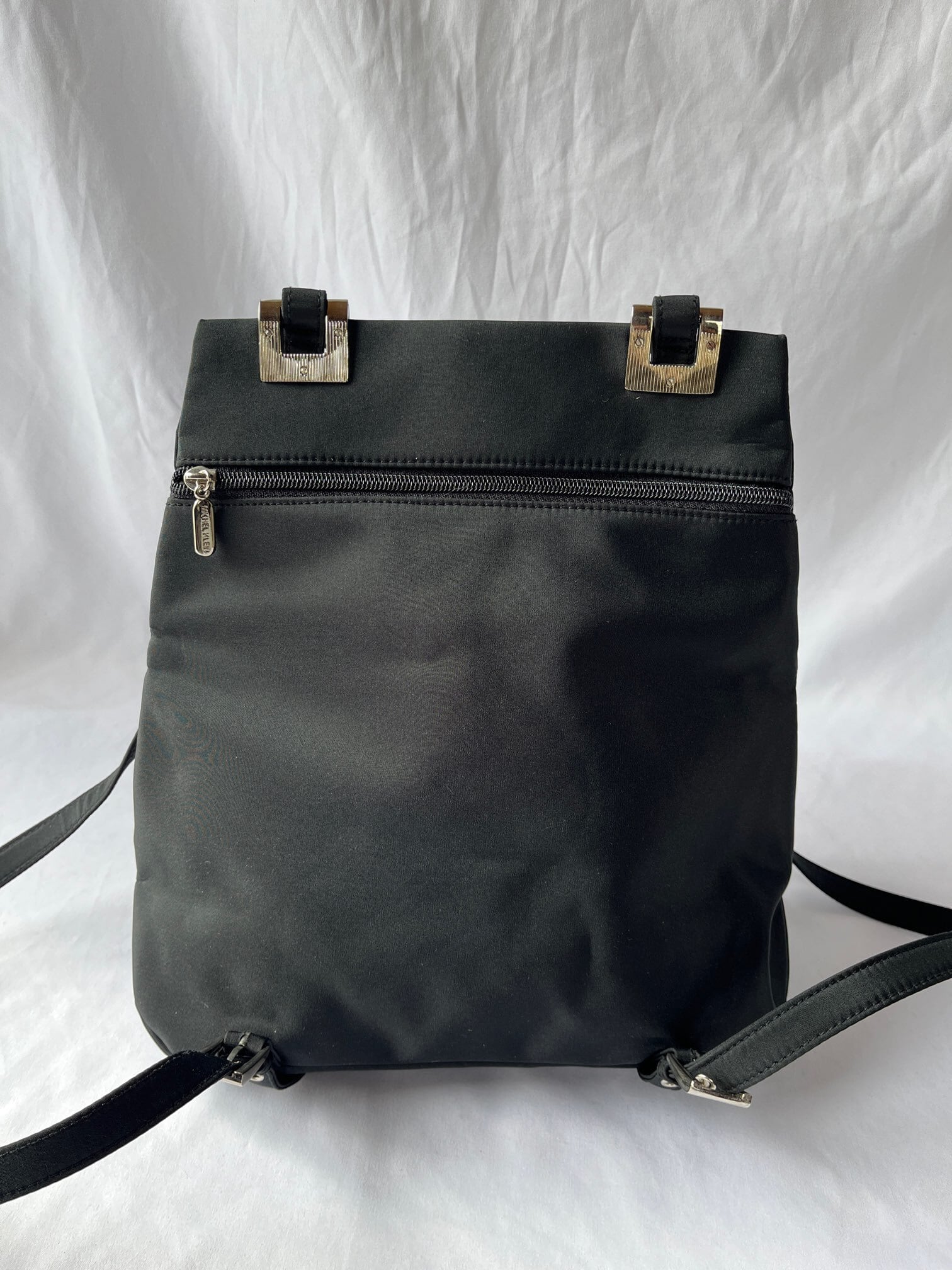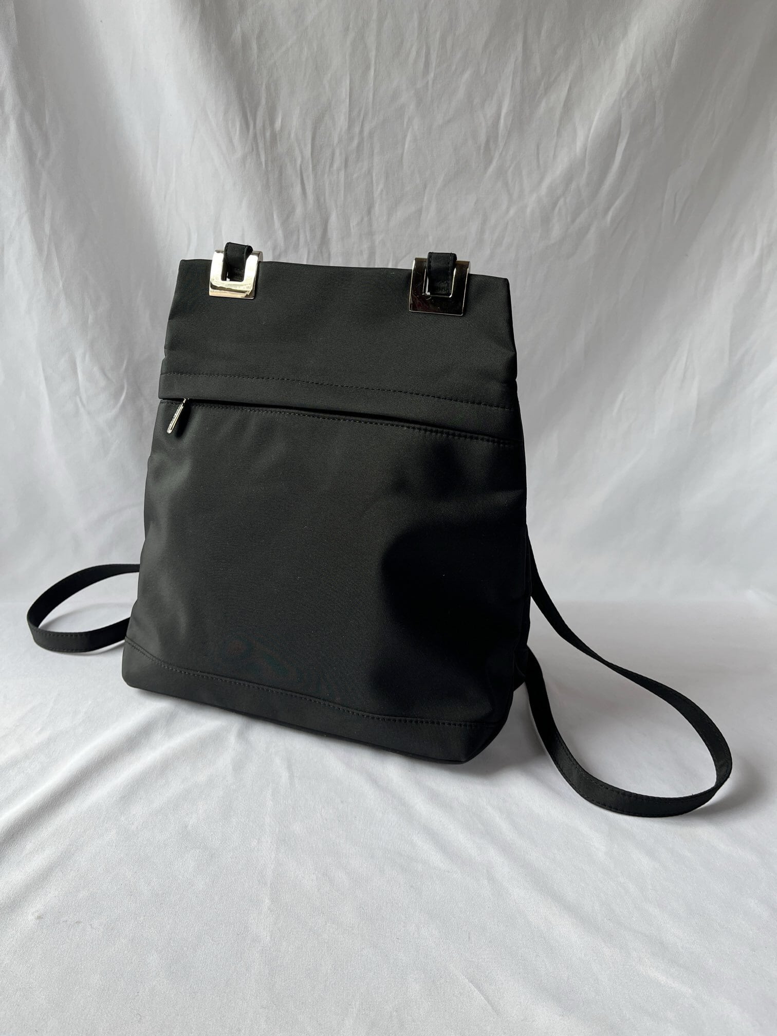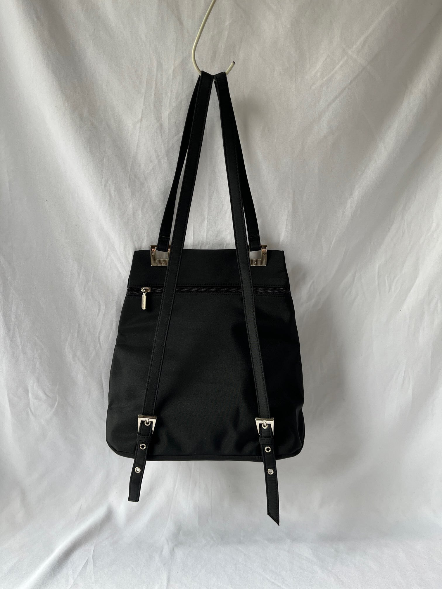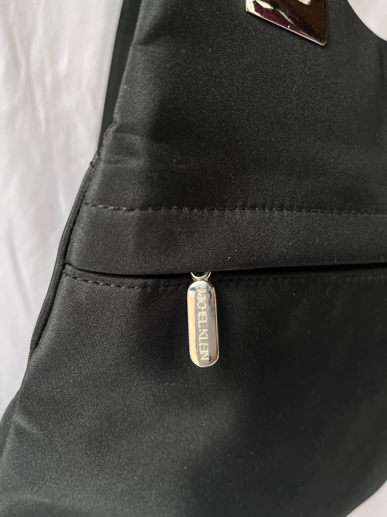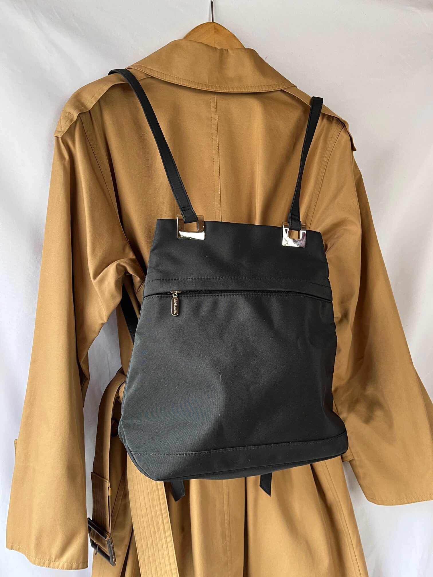 ブラックナイロンにシルバーのメタルパーツが目をひくMichel Klein Vintageリュック.華奢なストラップが上品で大人っぽさが魅力的.バックポケット付きで、仕分けもできるのが嬉しいポイント☆