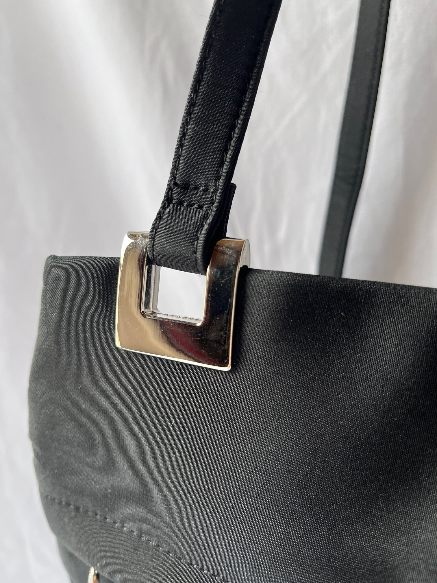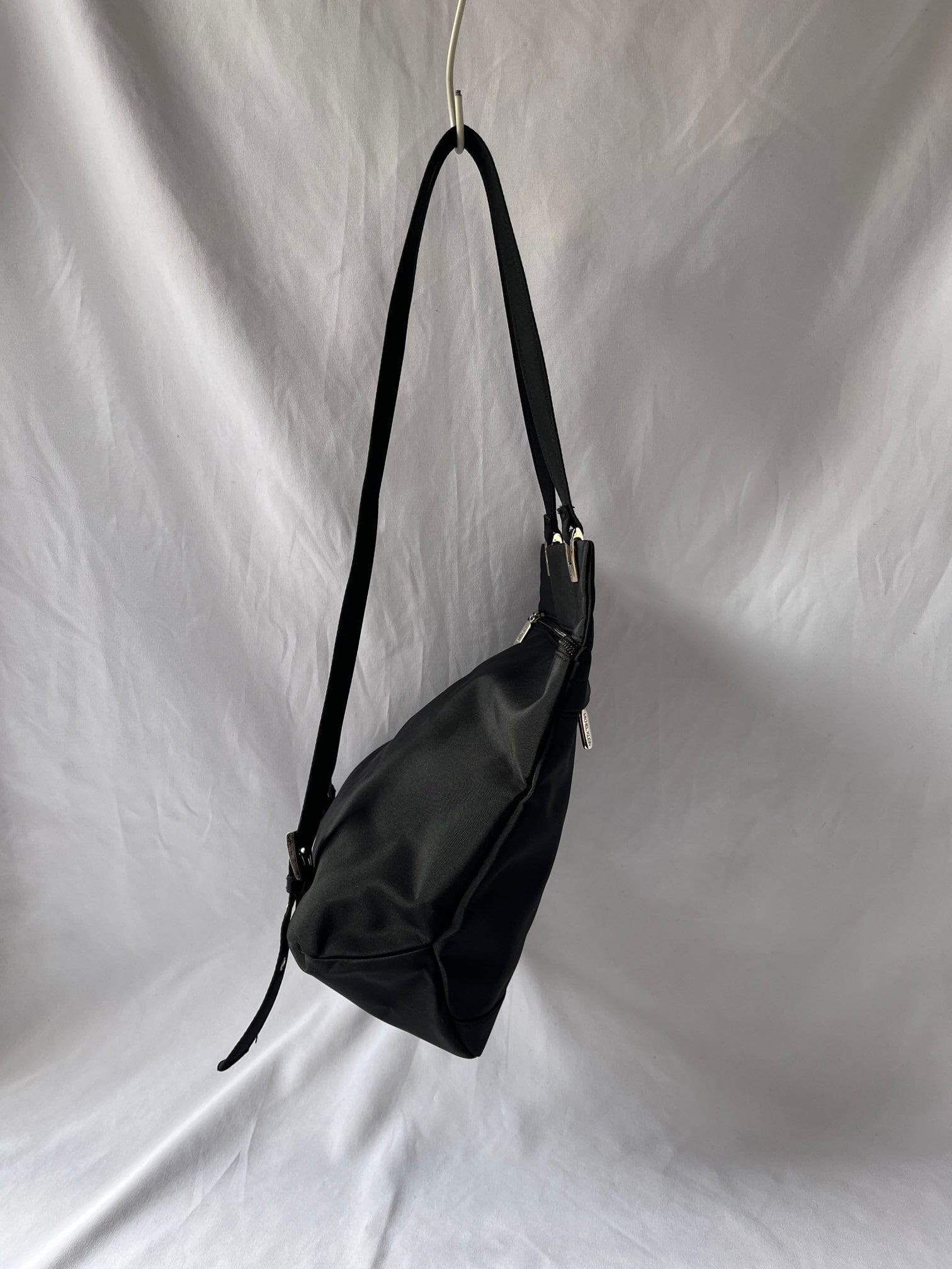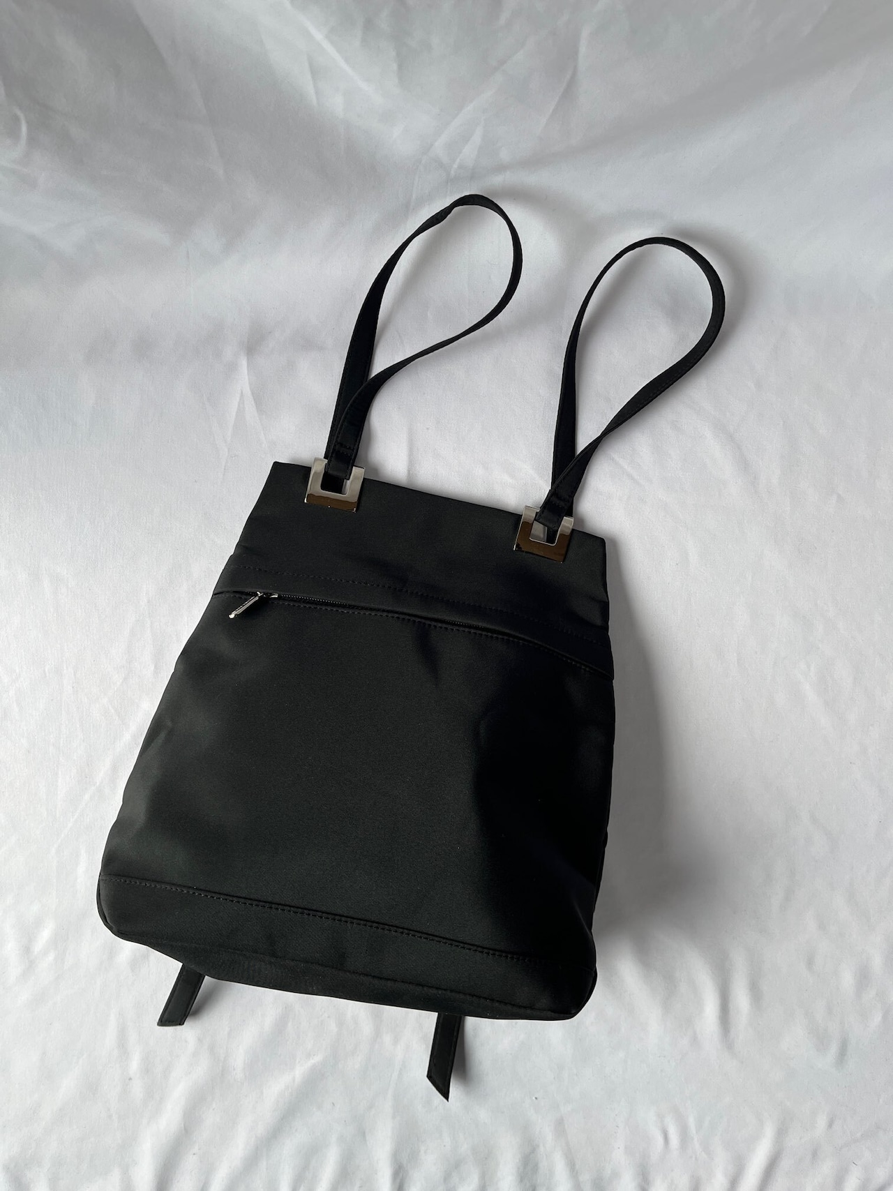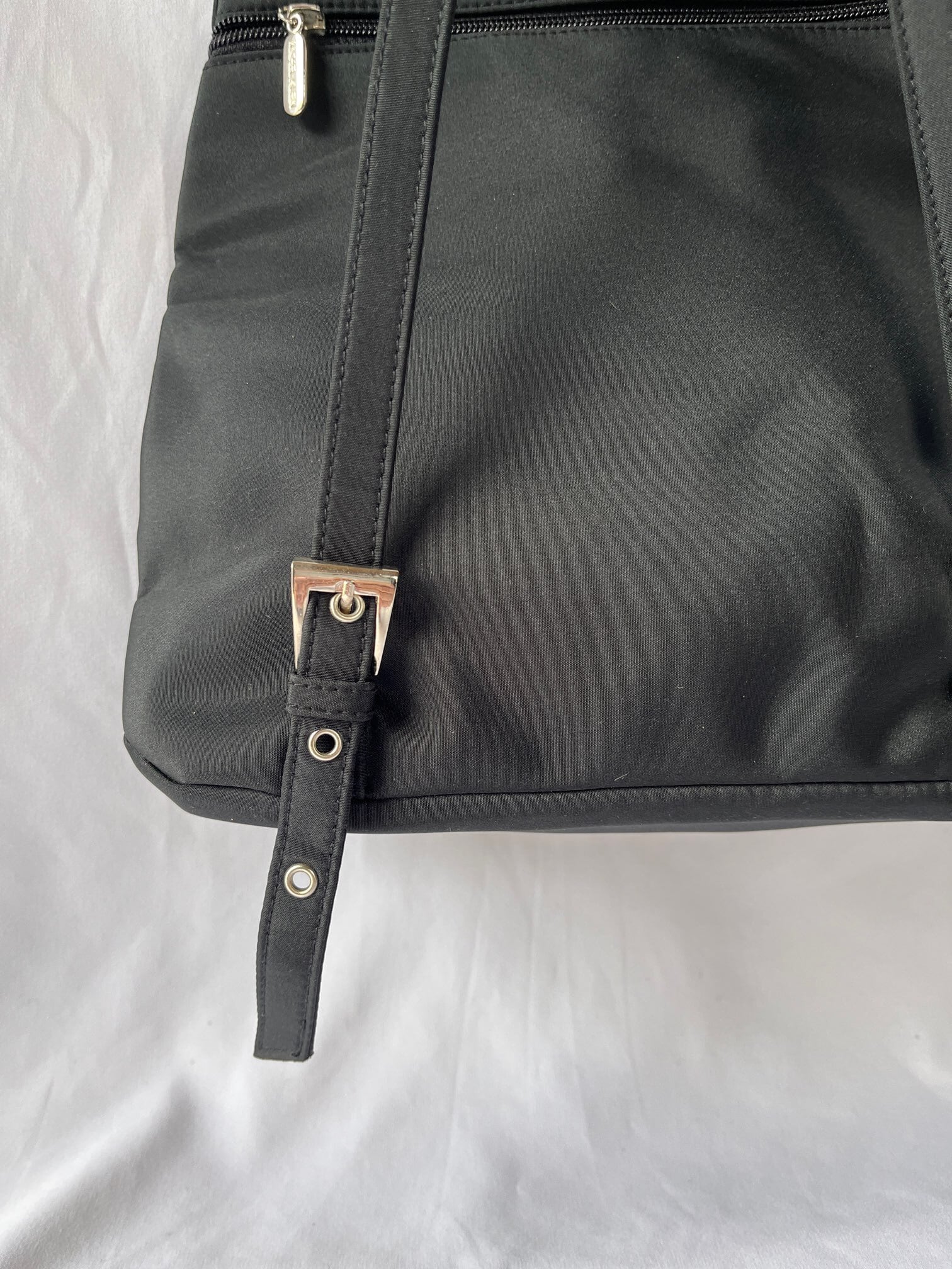 ブラックナイロンにシルバーのメタルパーツが目をひくMichel Klein Vintageリュック.華奢なストラップが上品で大人っぽさが魅力的.バックポケット付きで、仕分けもできるのが嬉しいポイント☆