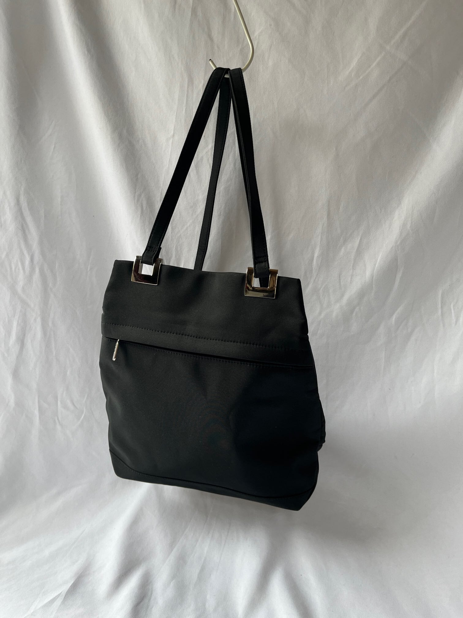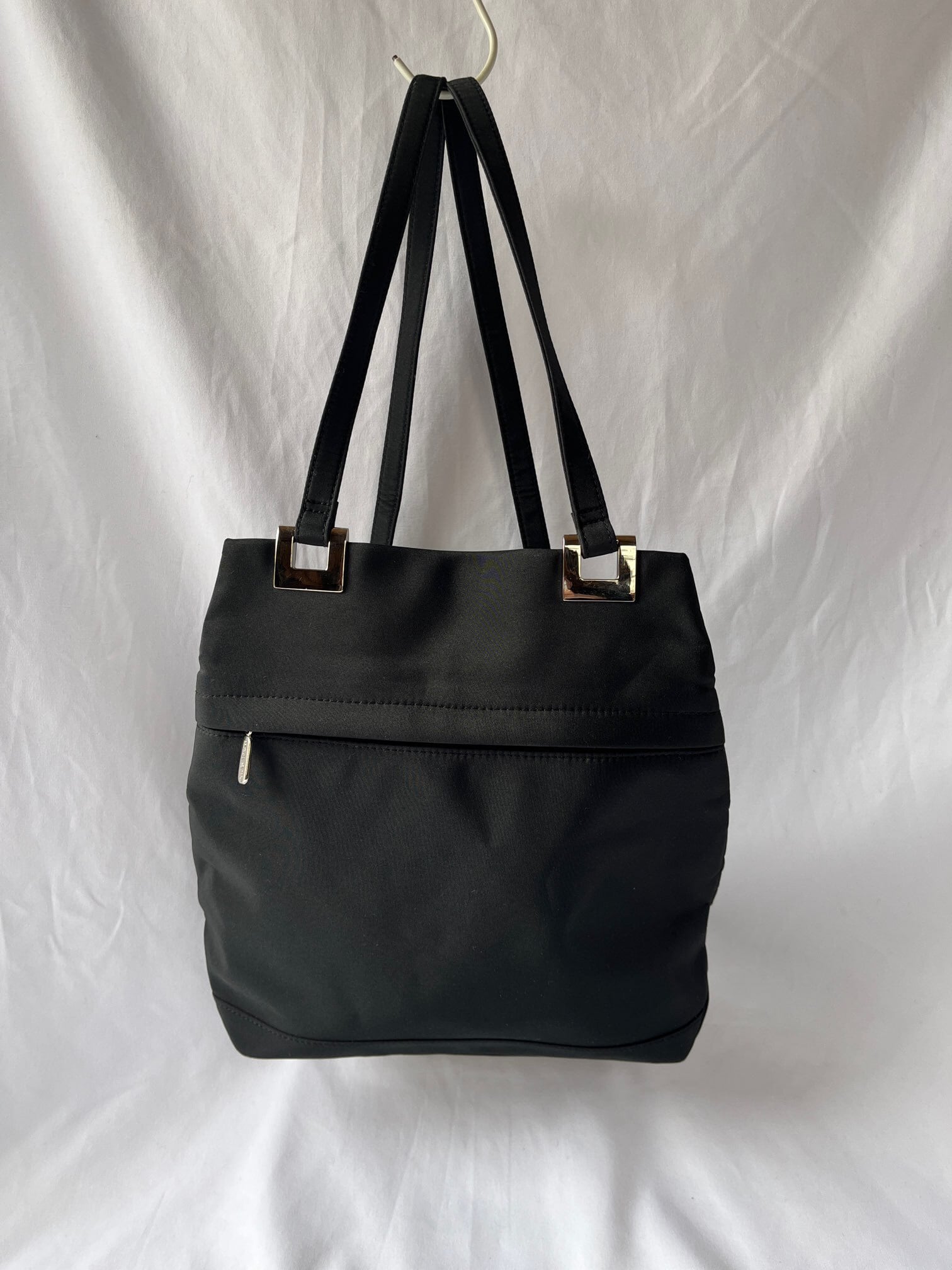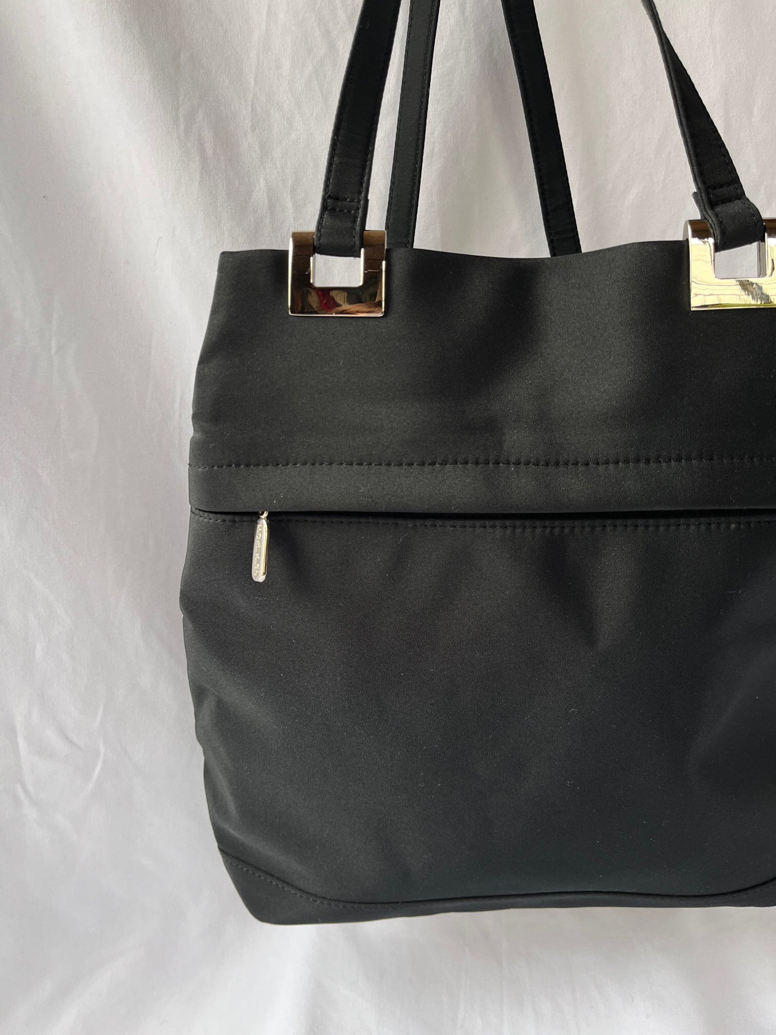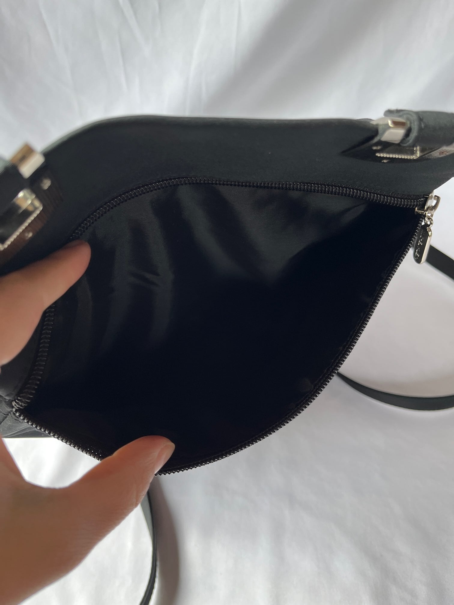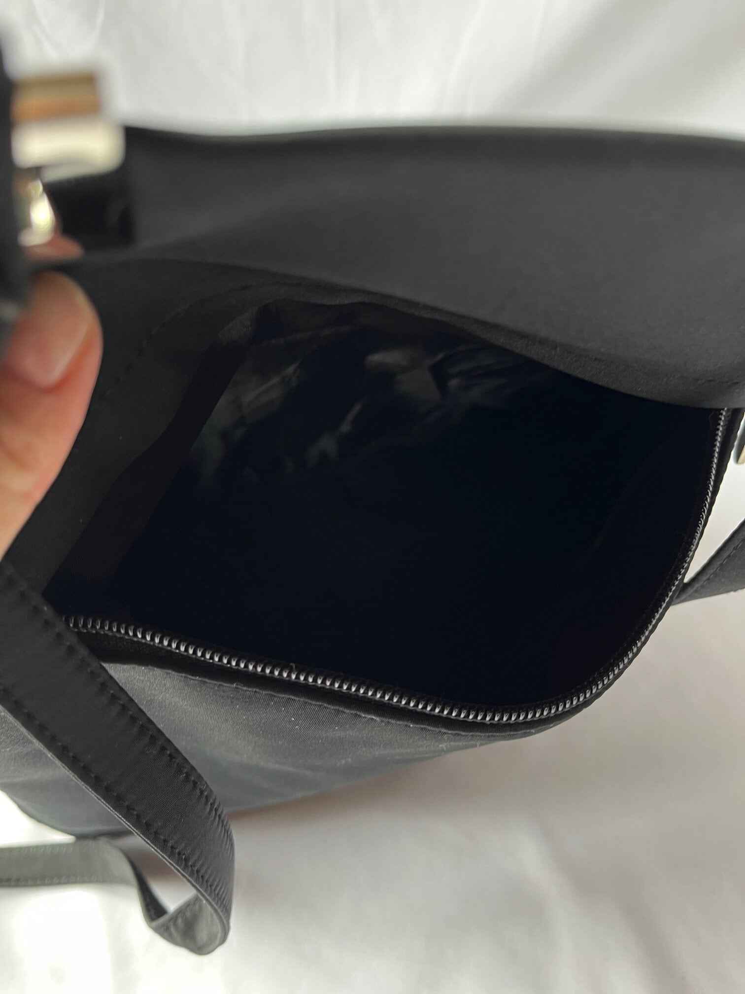 ブラックナイロンにシルバーのメタルパーツが目をひくMichel Klein Vintageリュック.華奢なストラップが上品で大人っぽさが魅力的.バックポケット付きで、仕分けもできるのが嬉しいポイント☆