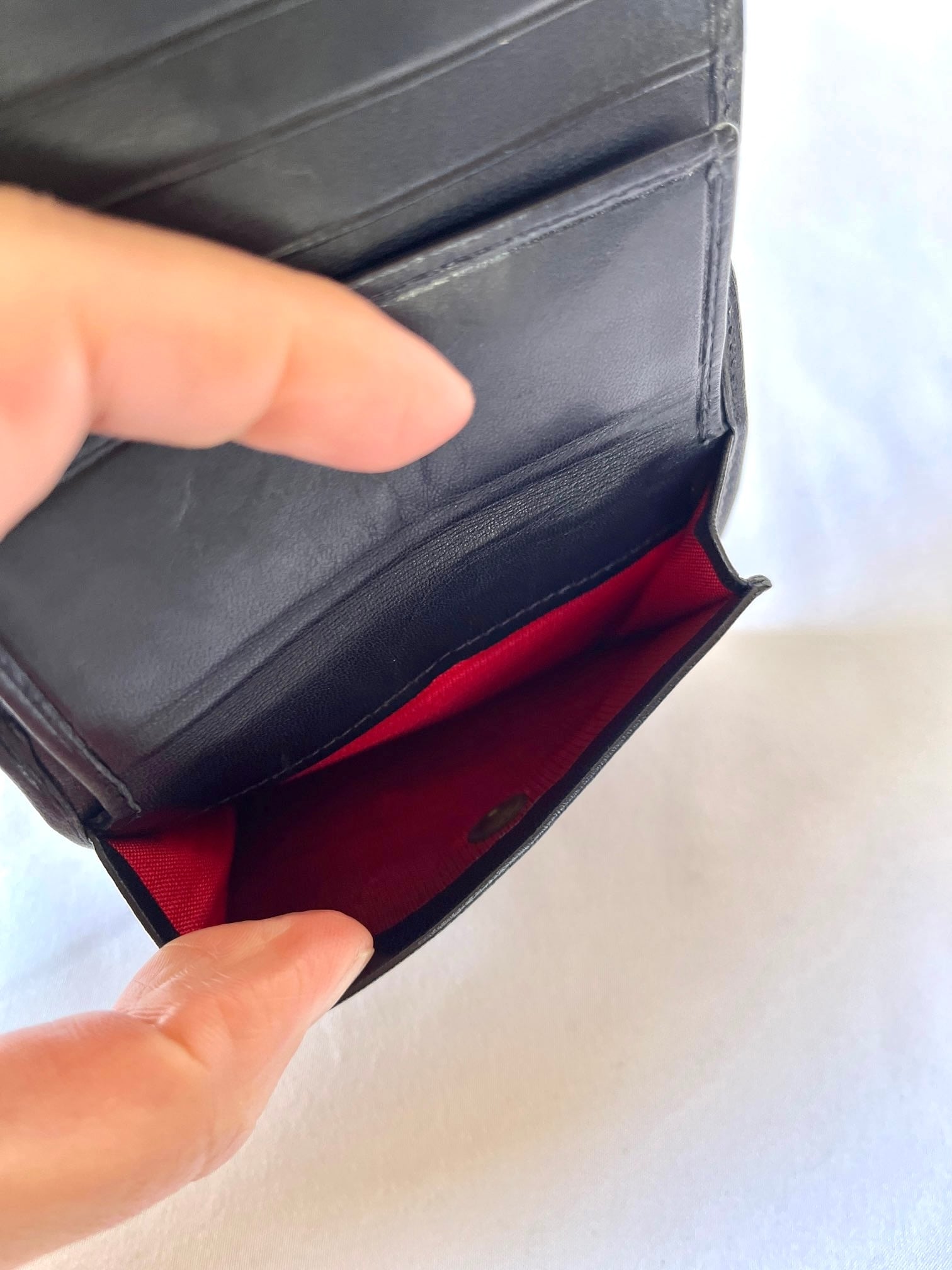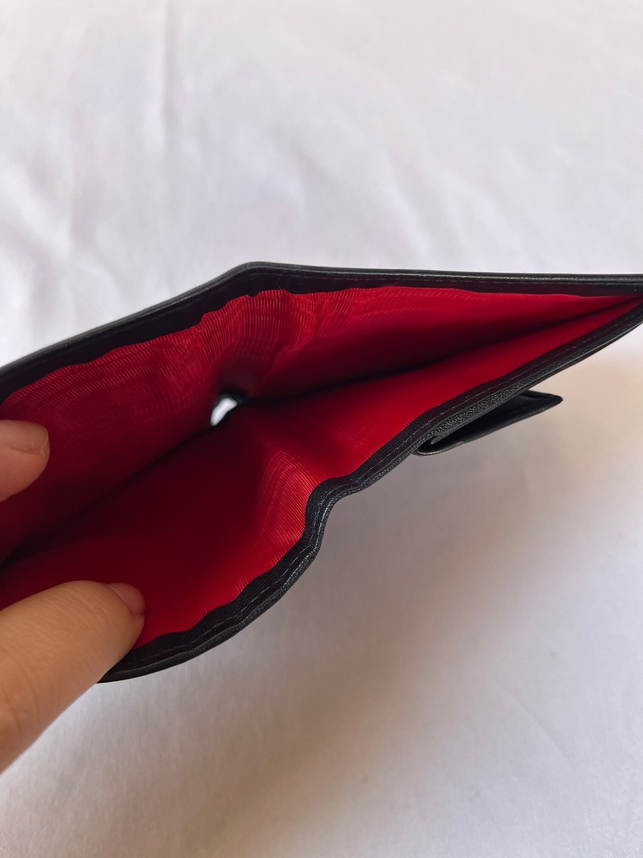 真っ赤な裏地が美しいコントラストの一品です。