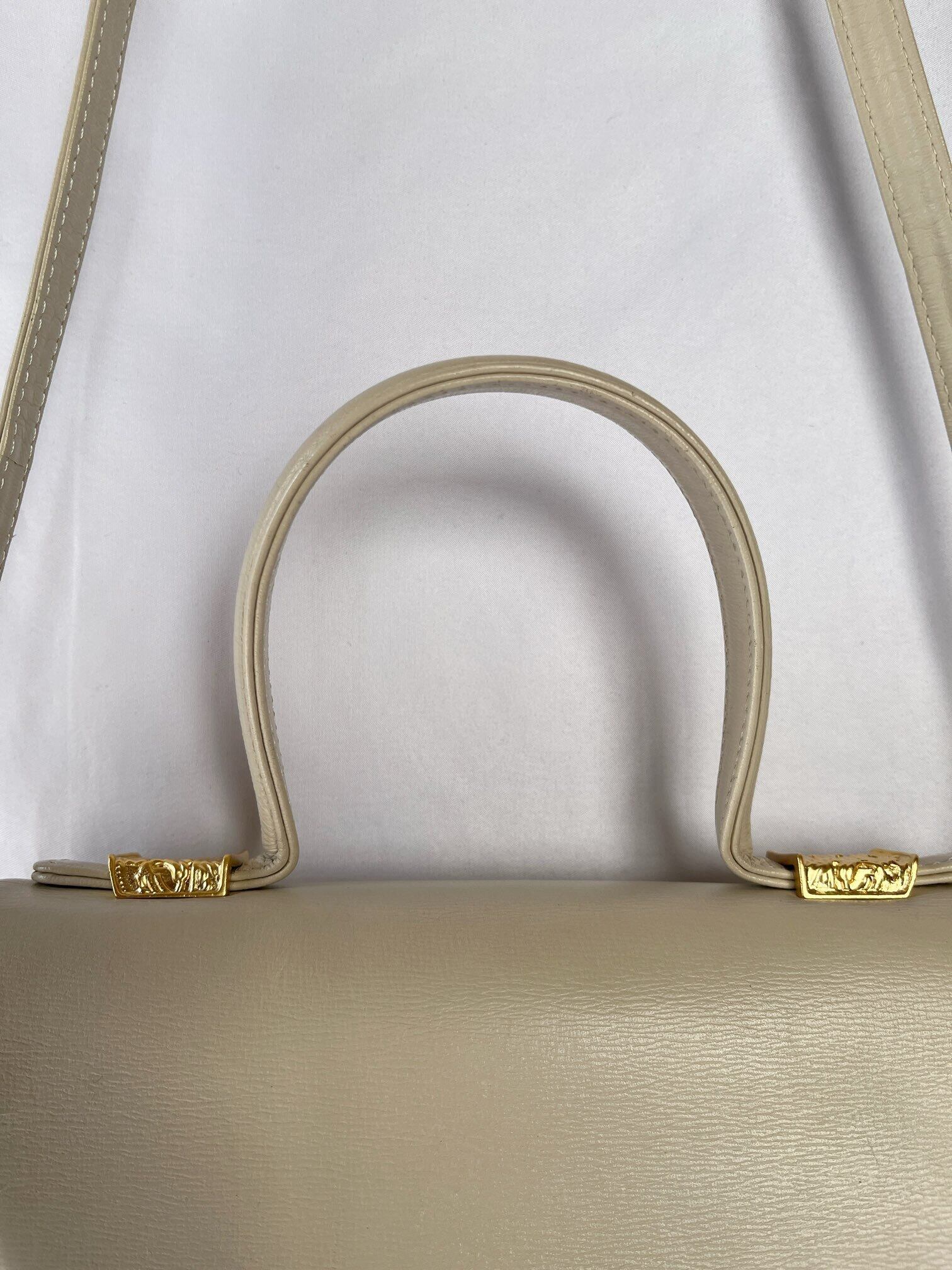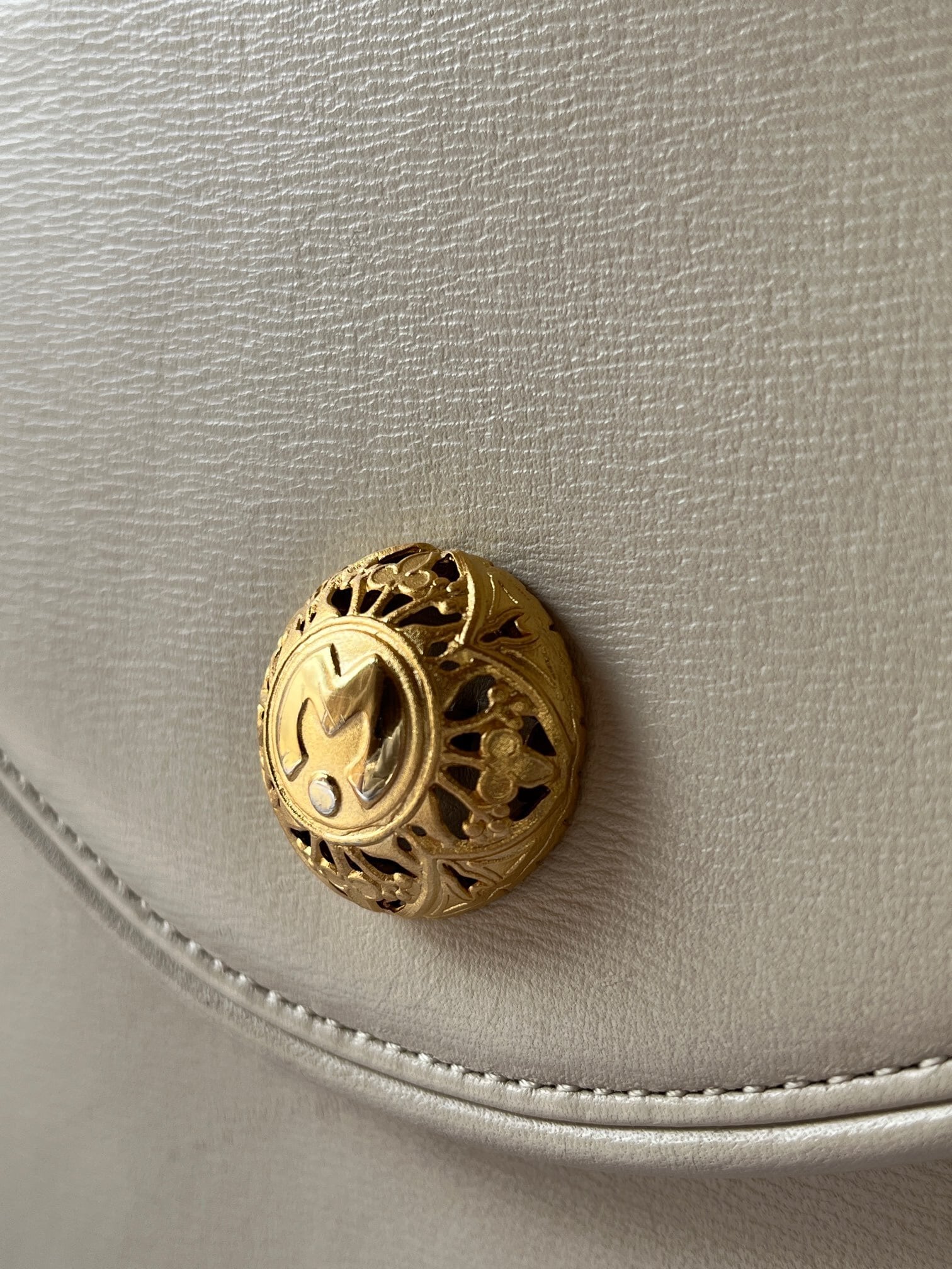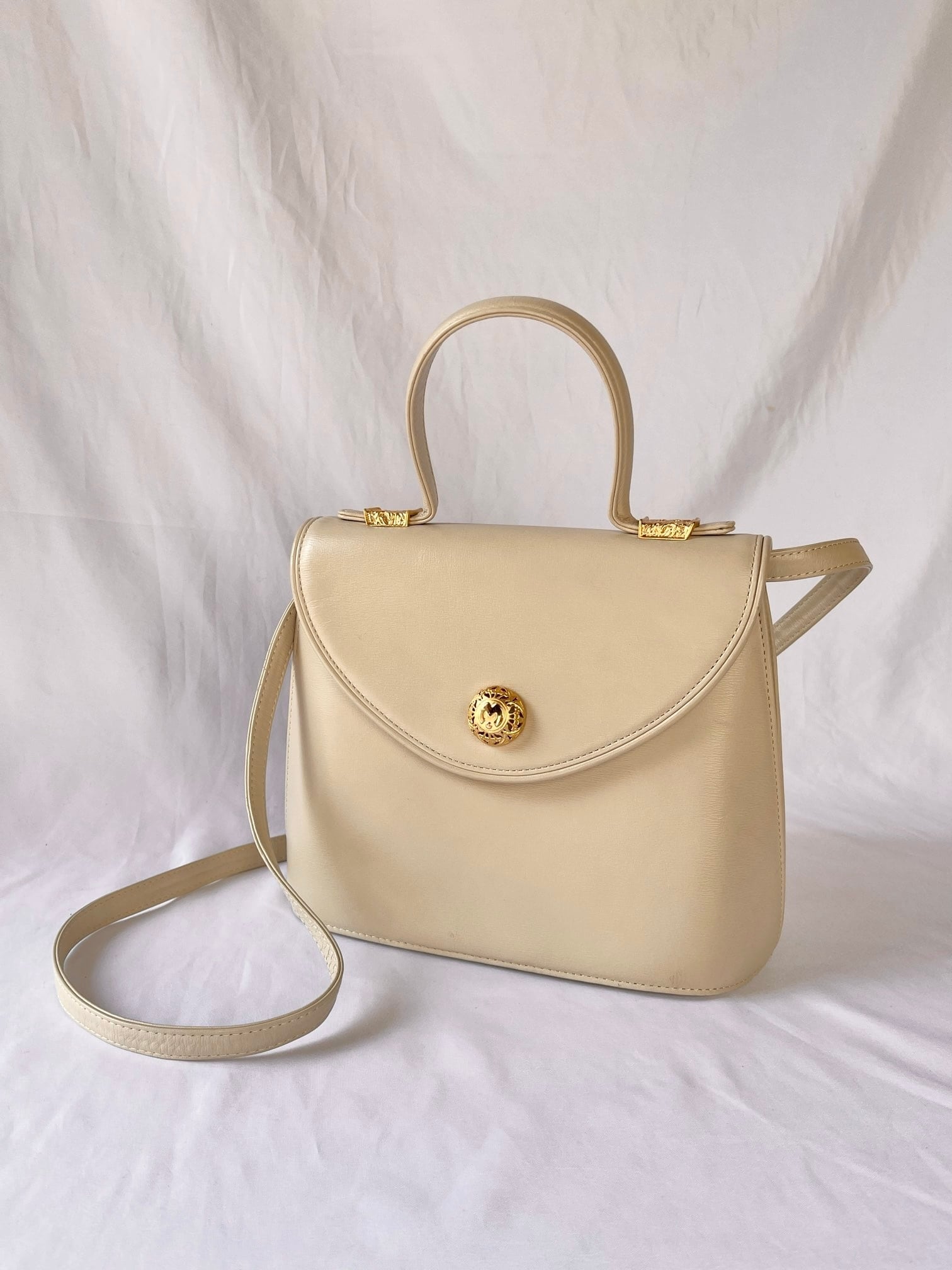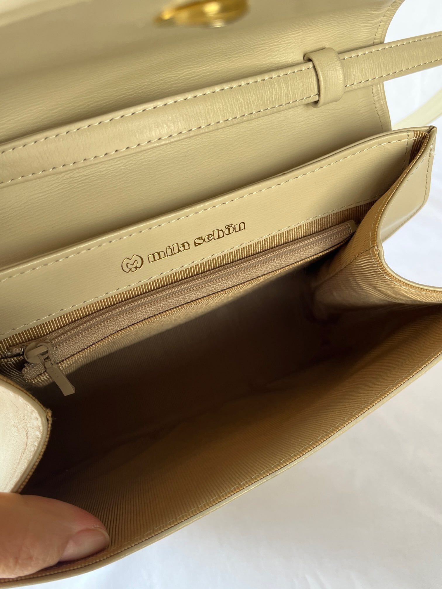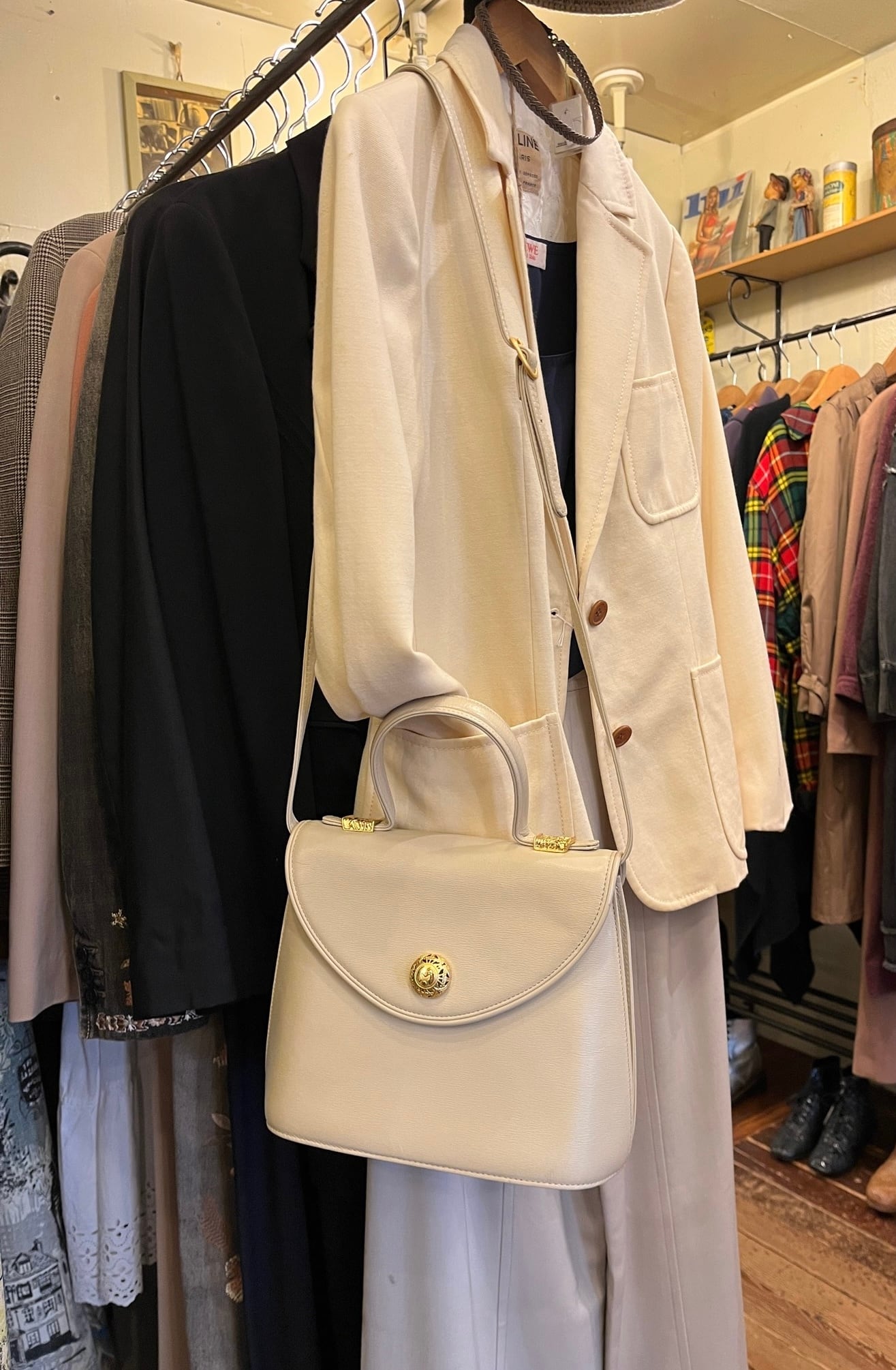 アイボリーのレザーカラーが上品なmila schon Vintage 2way Bag.ハンドとショルダーの2通り楽しめる デザイン。
