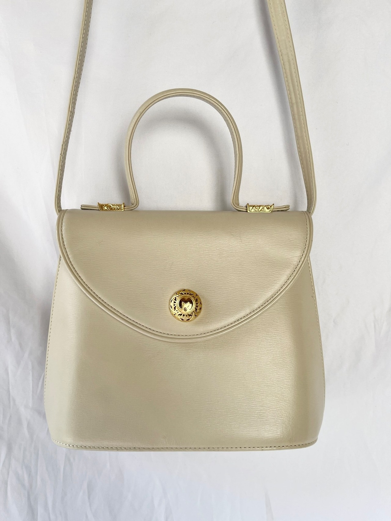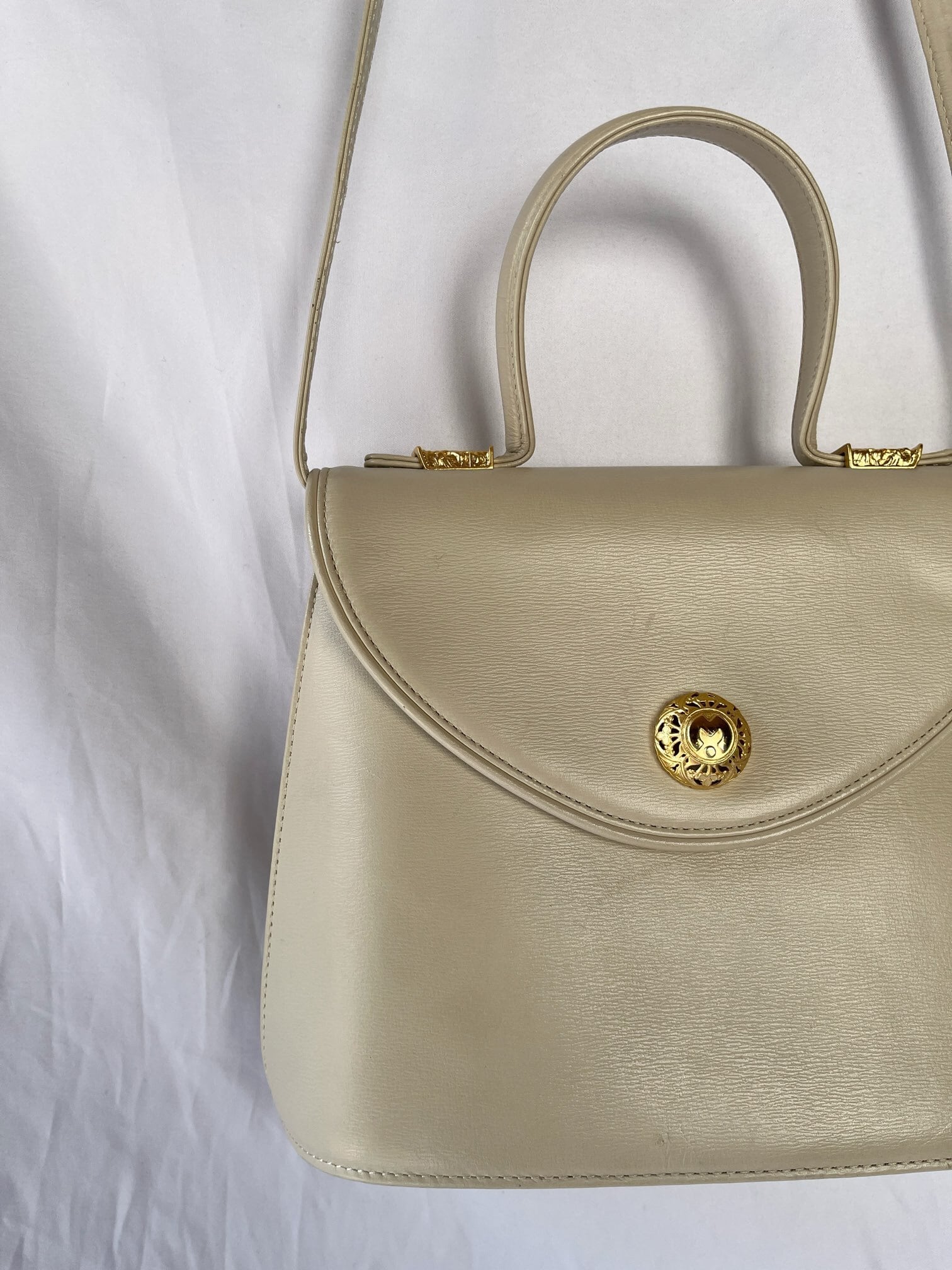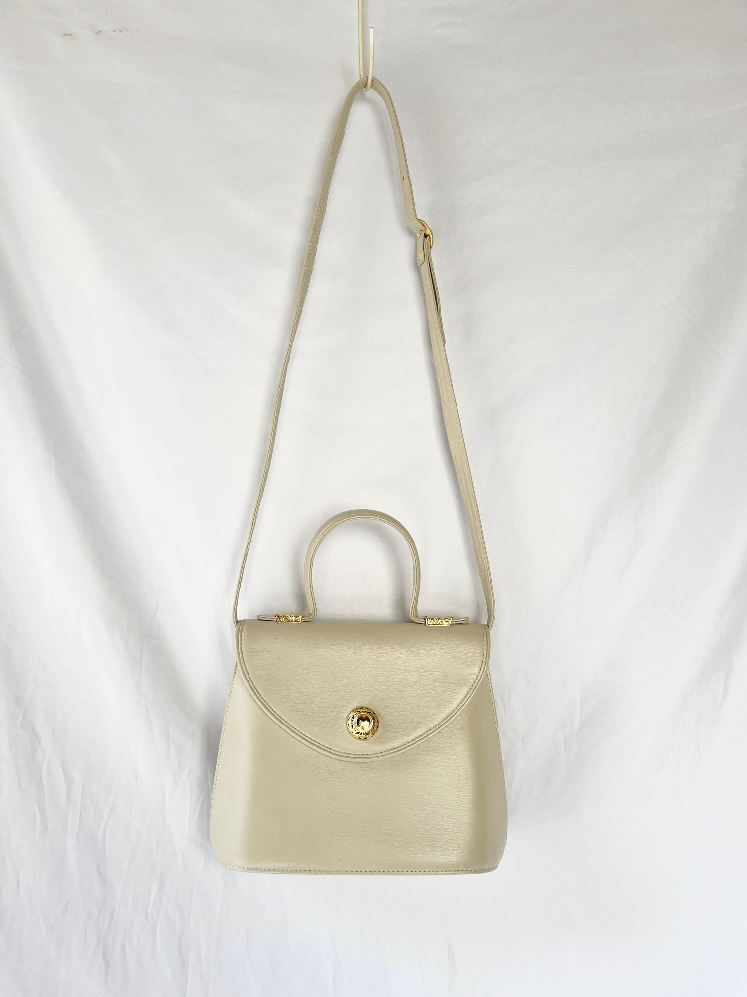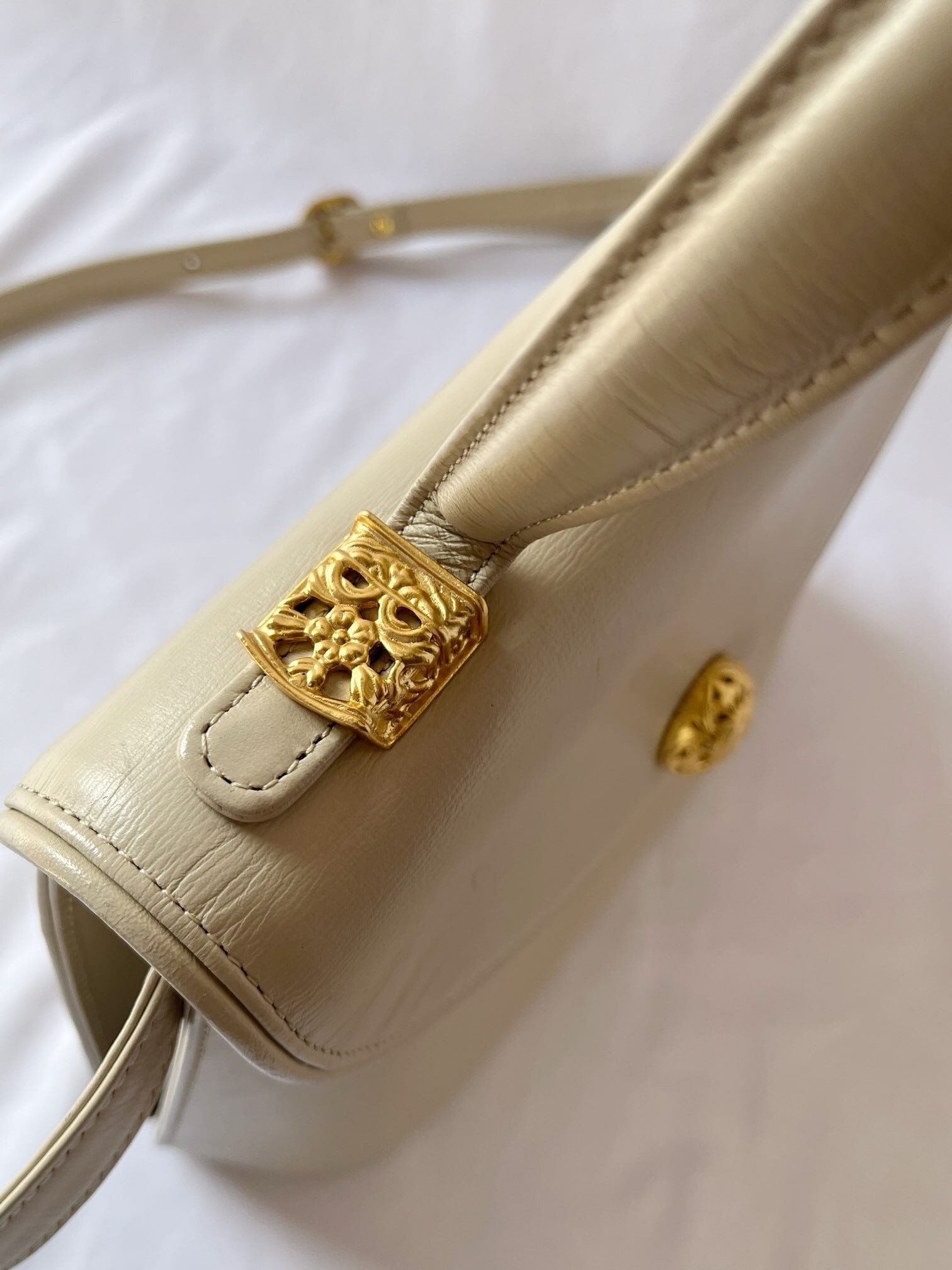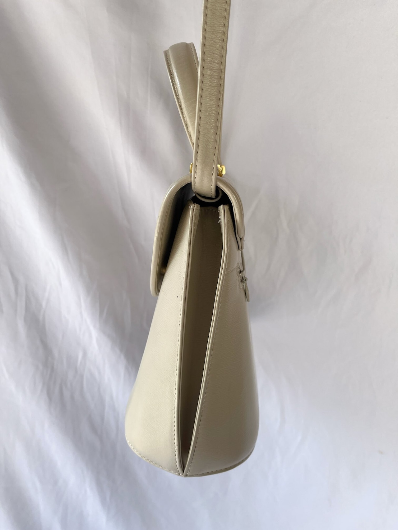 アイボリーのレザーカラーが上品なmila schon Vintage 2way Bag.ハンドとショルダーの2通り楽しめる デザイン。