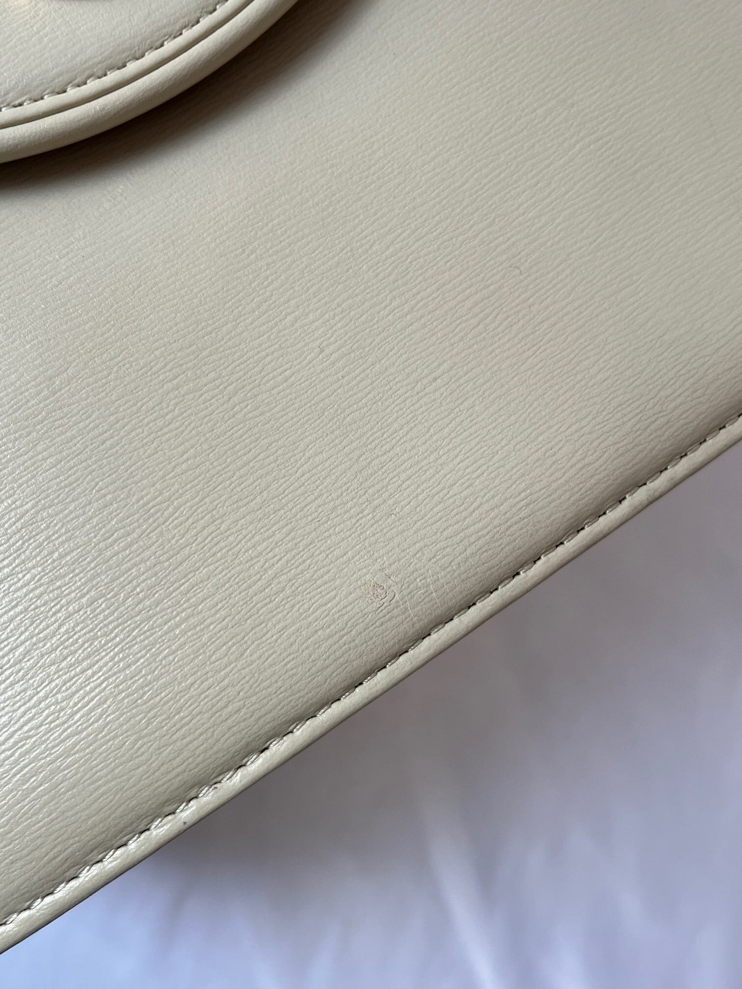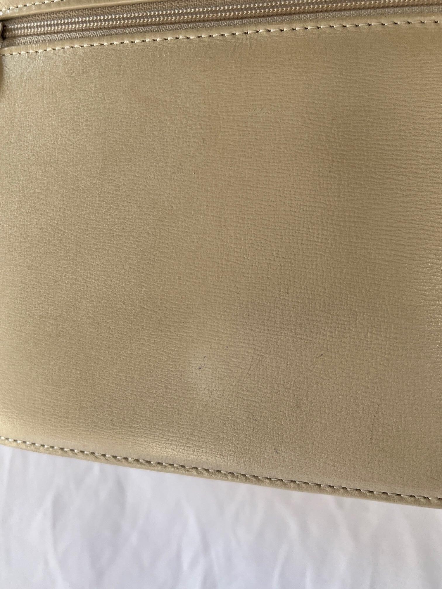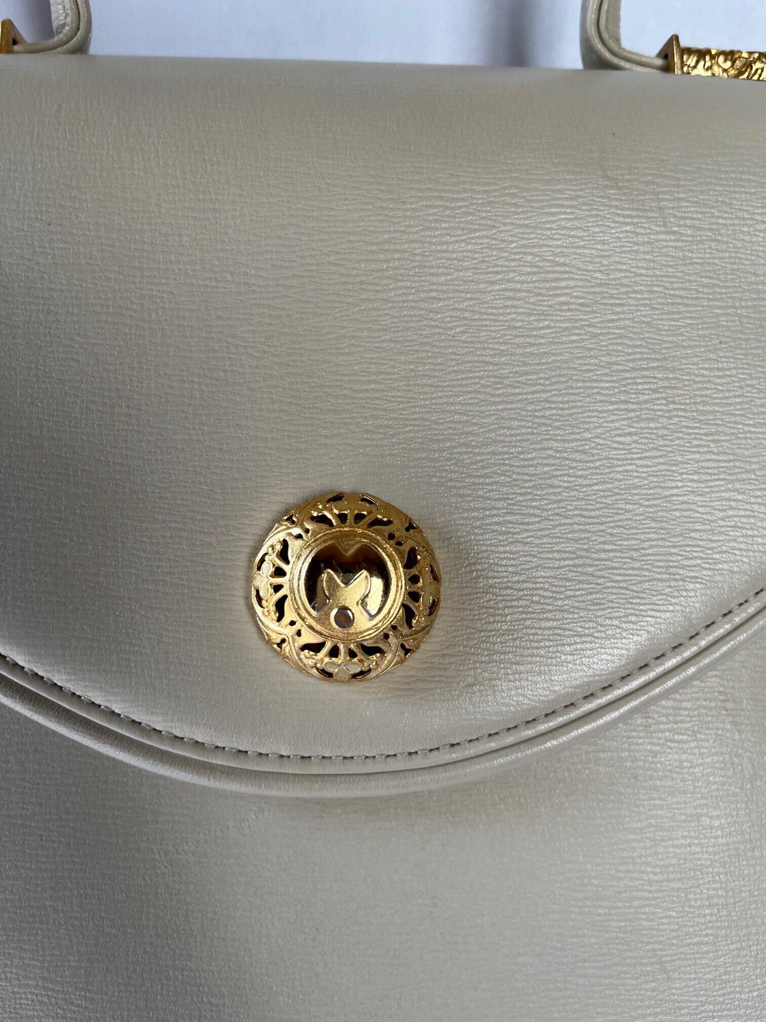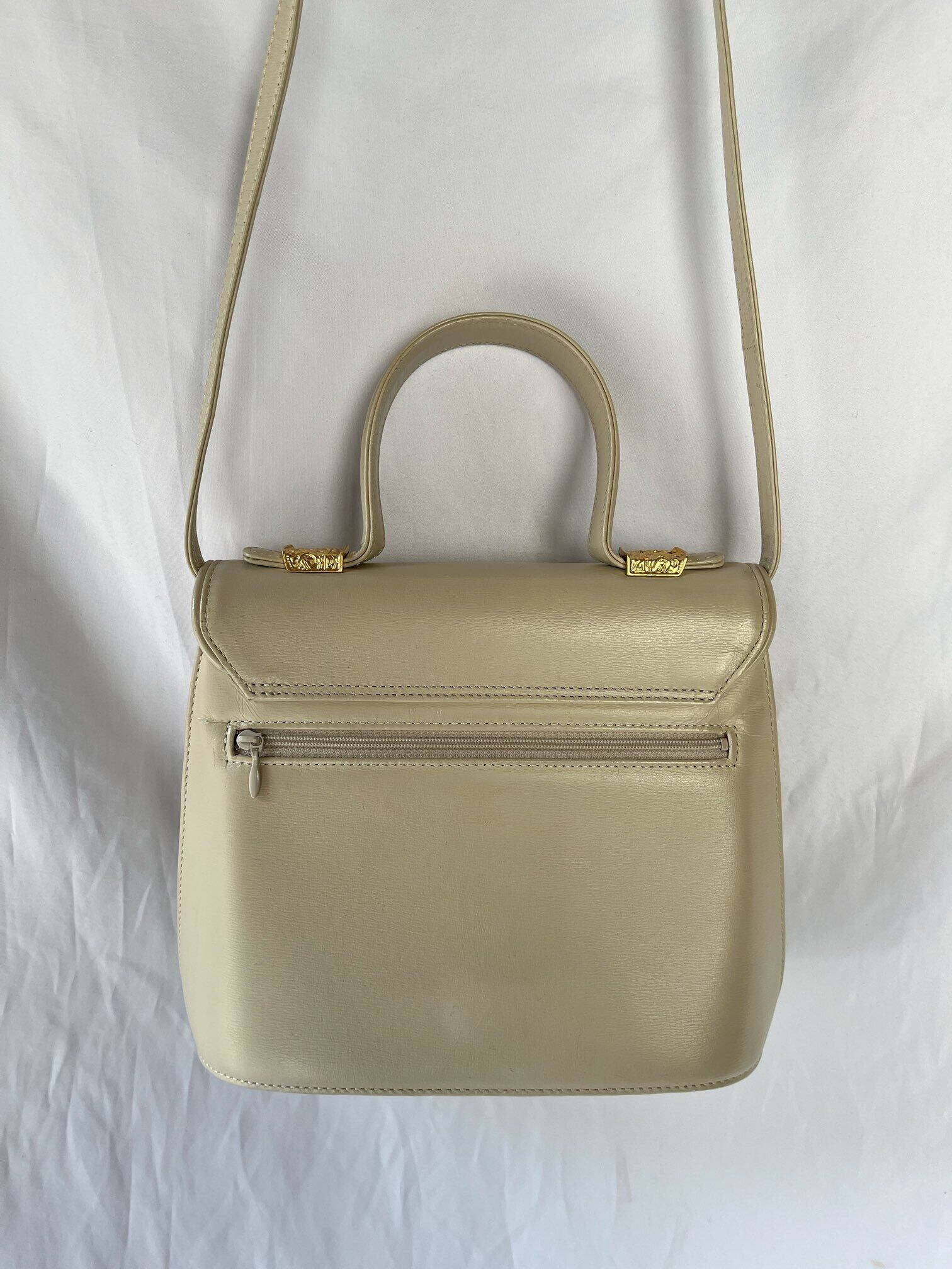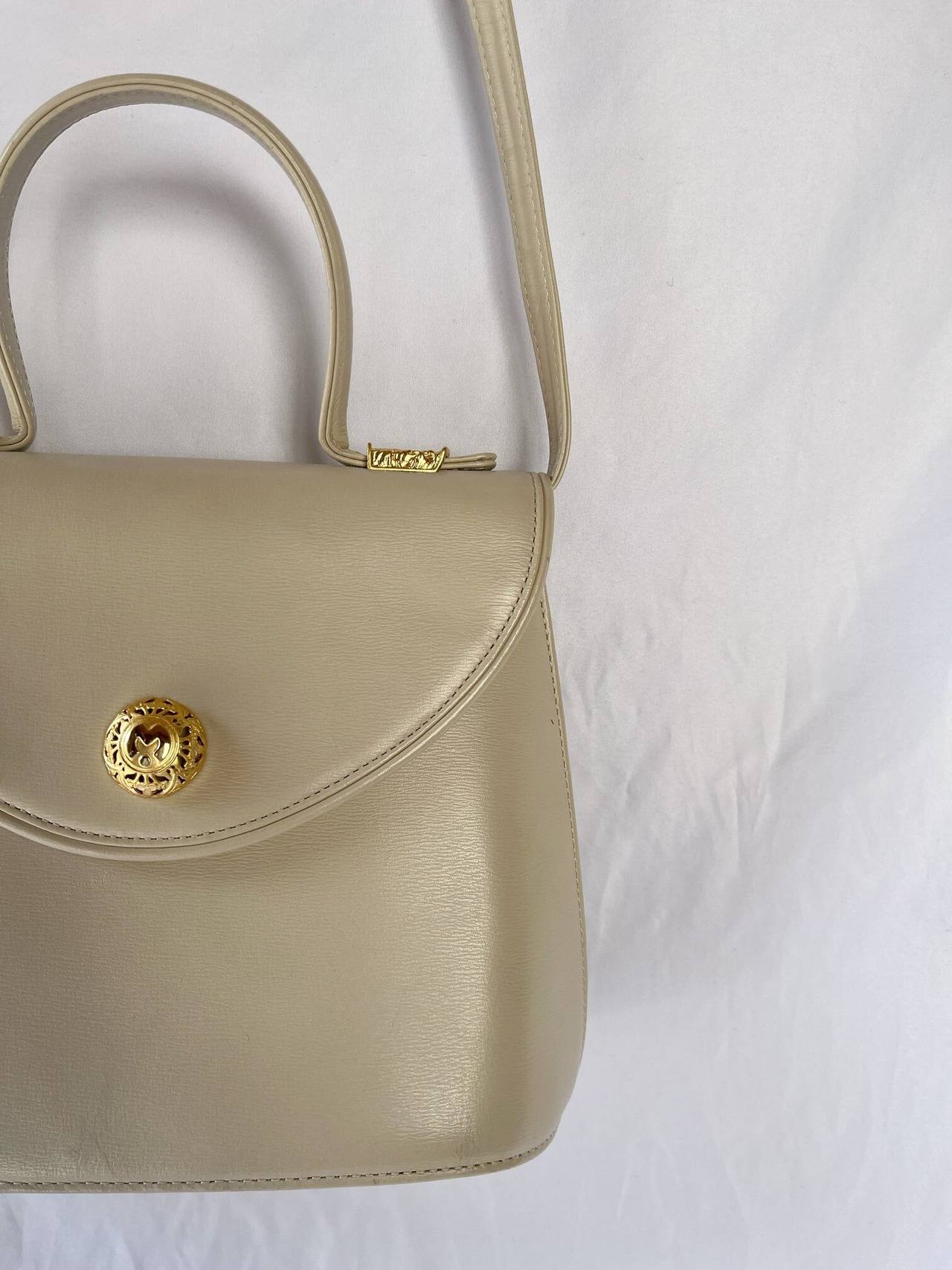 アイボリーのレザーカラーが上品なmila schon Vintage 2way Bag.ハンドとショルダーの2通り楽しめる デザイン。
