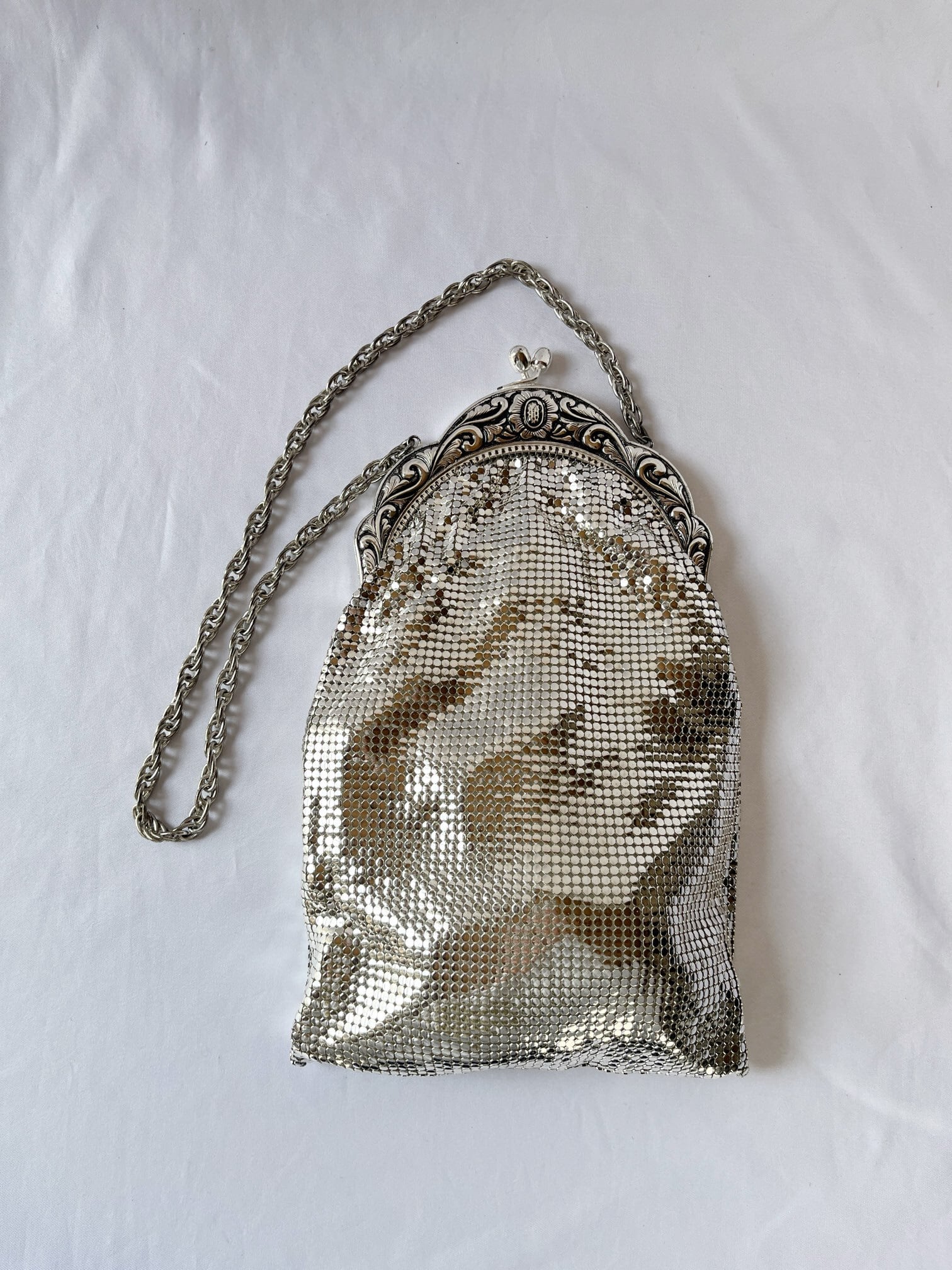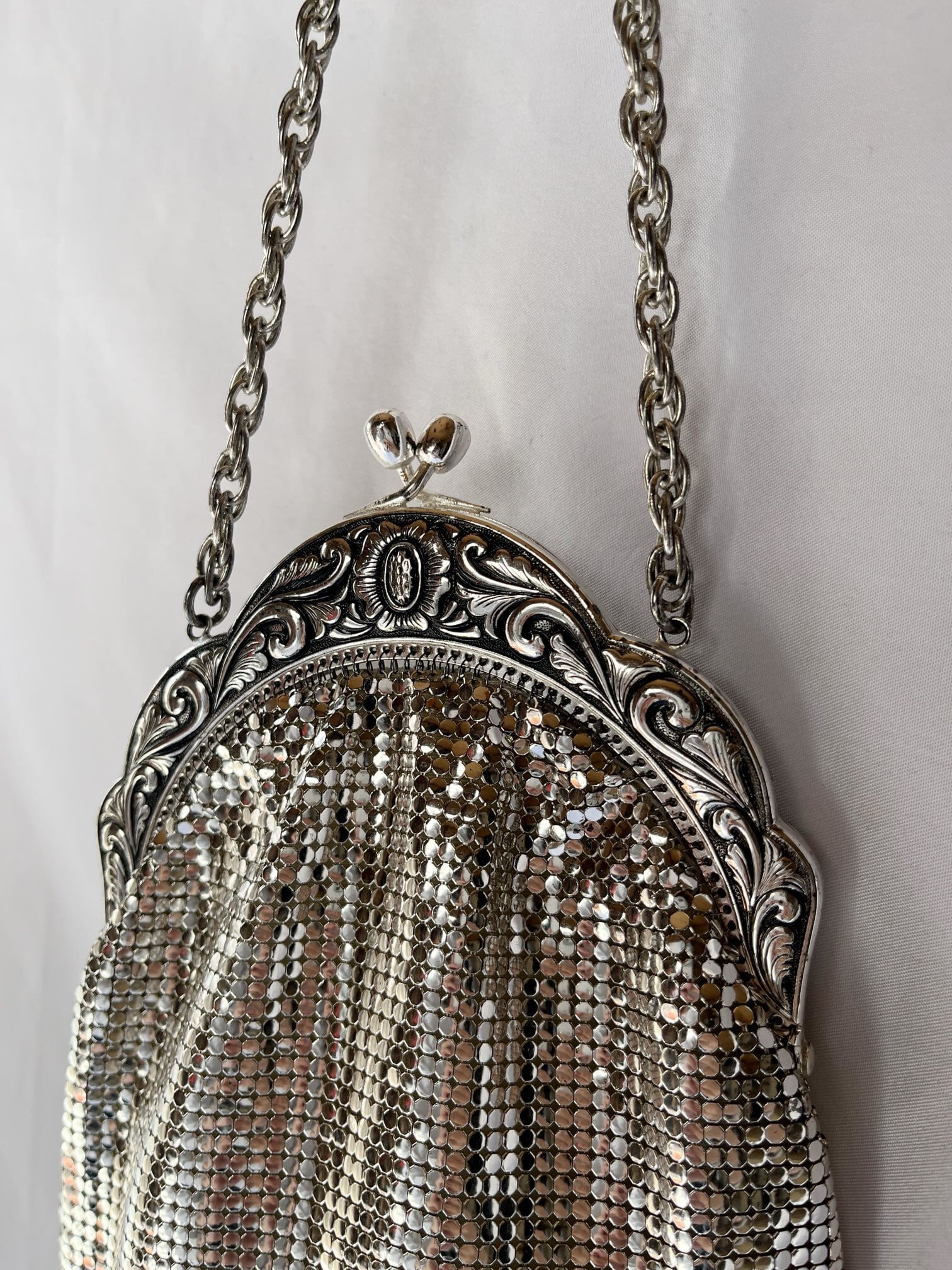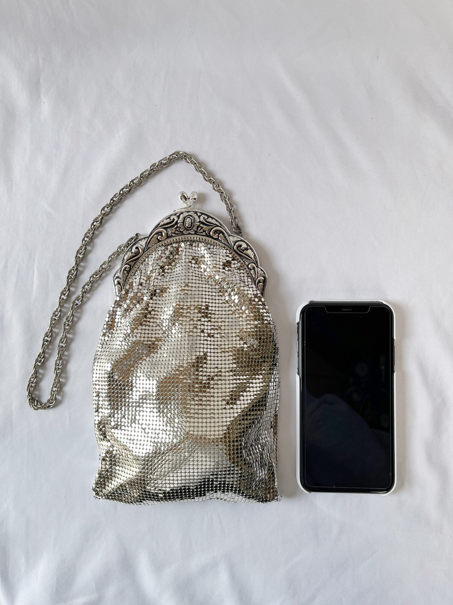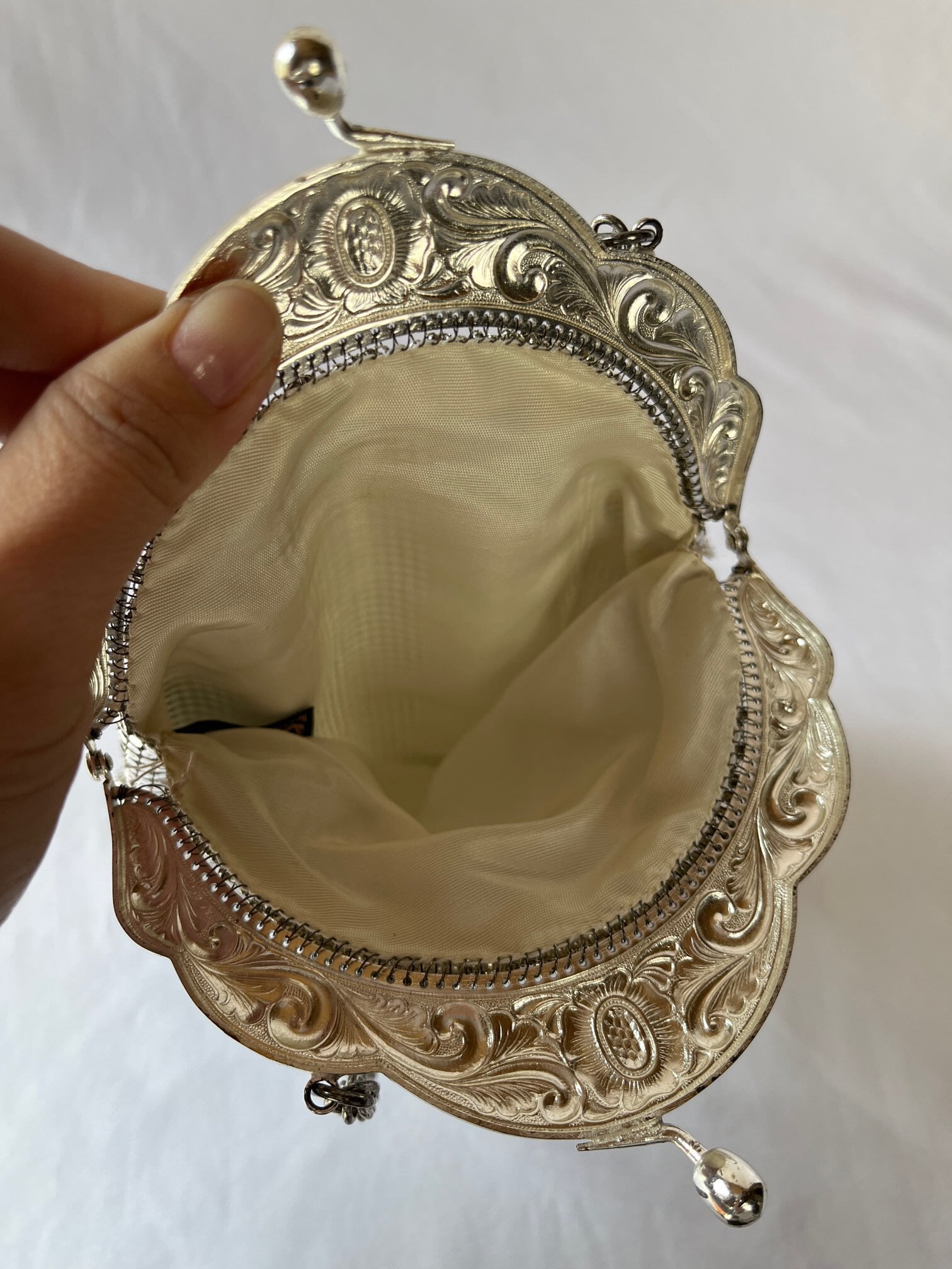 キラキラとしたシルバービーズが華やかな OROTON 80's Vintage メタルBag.
