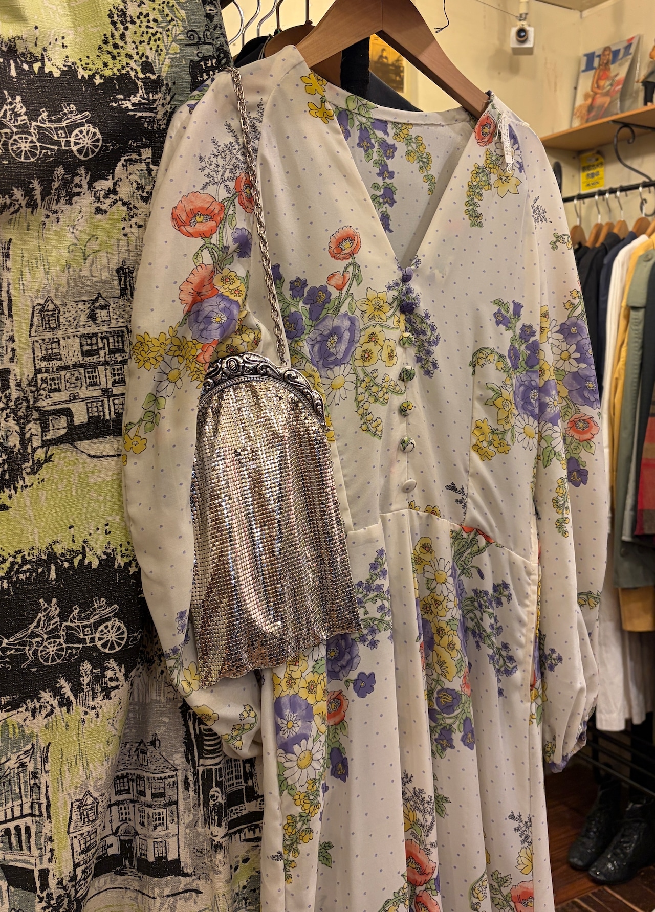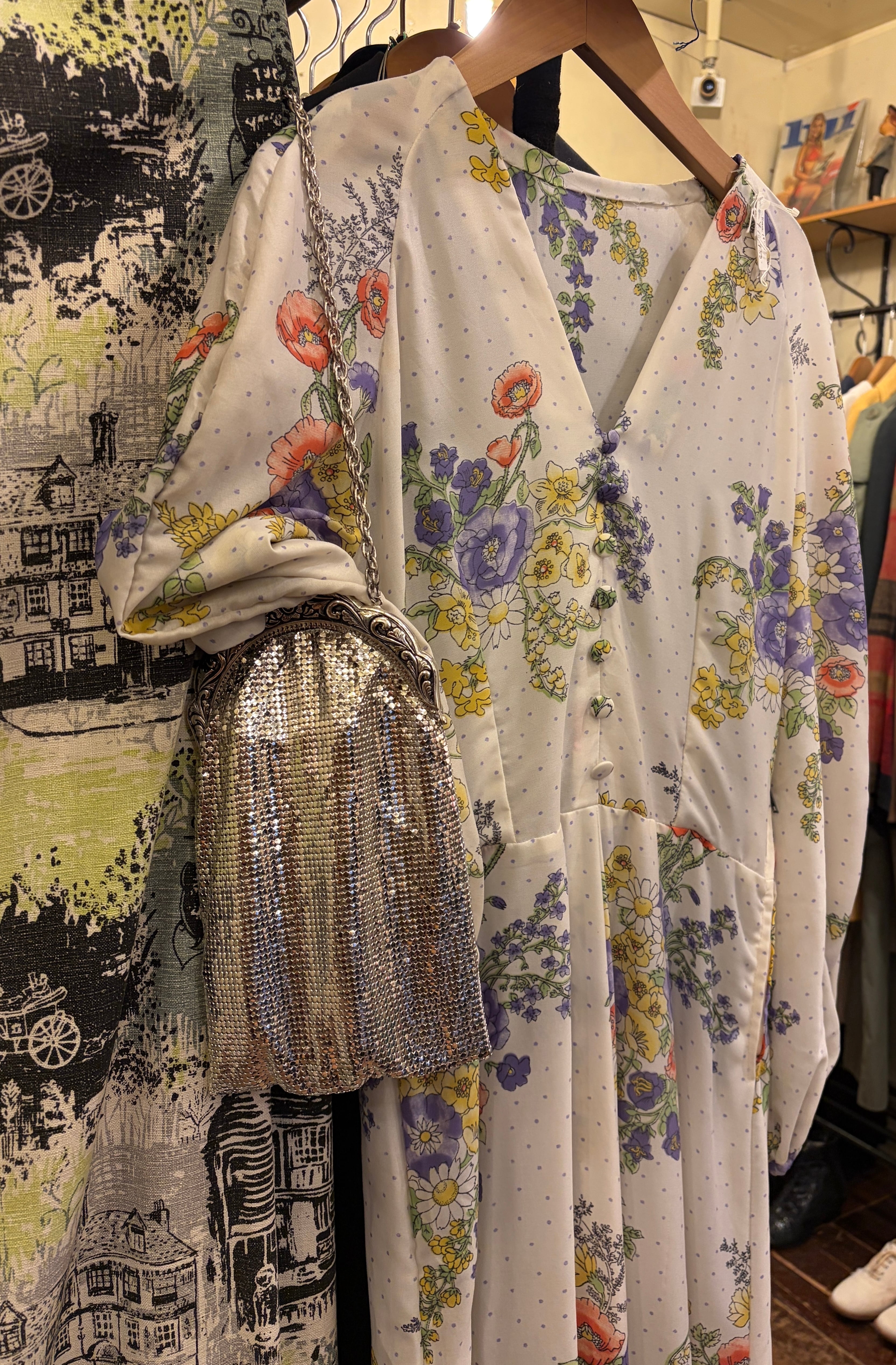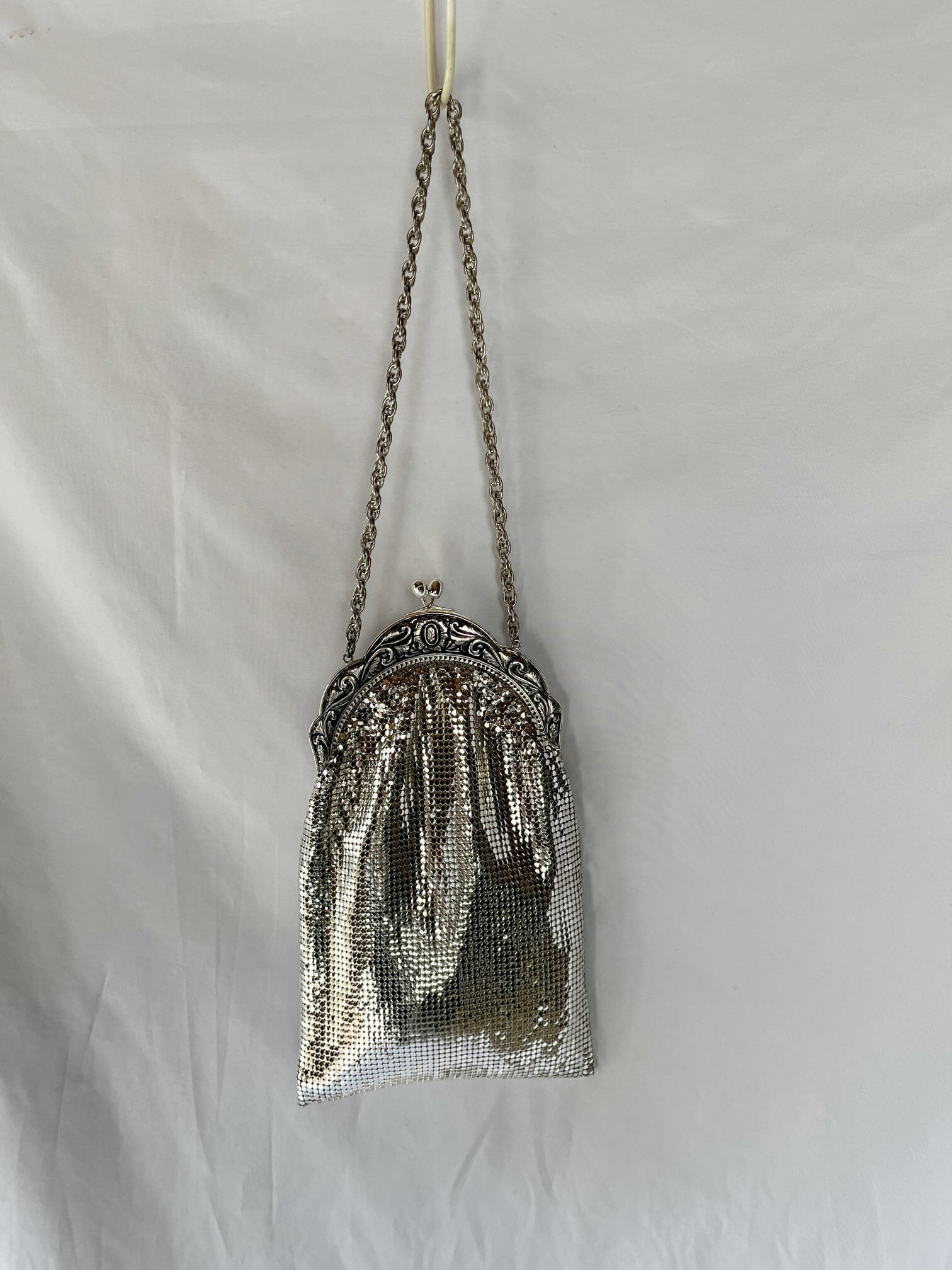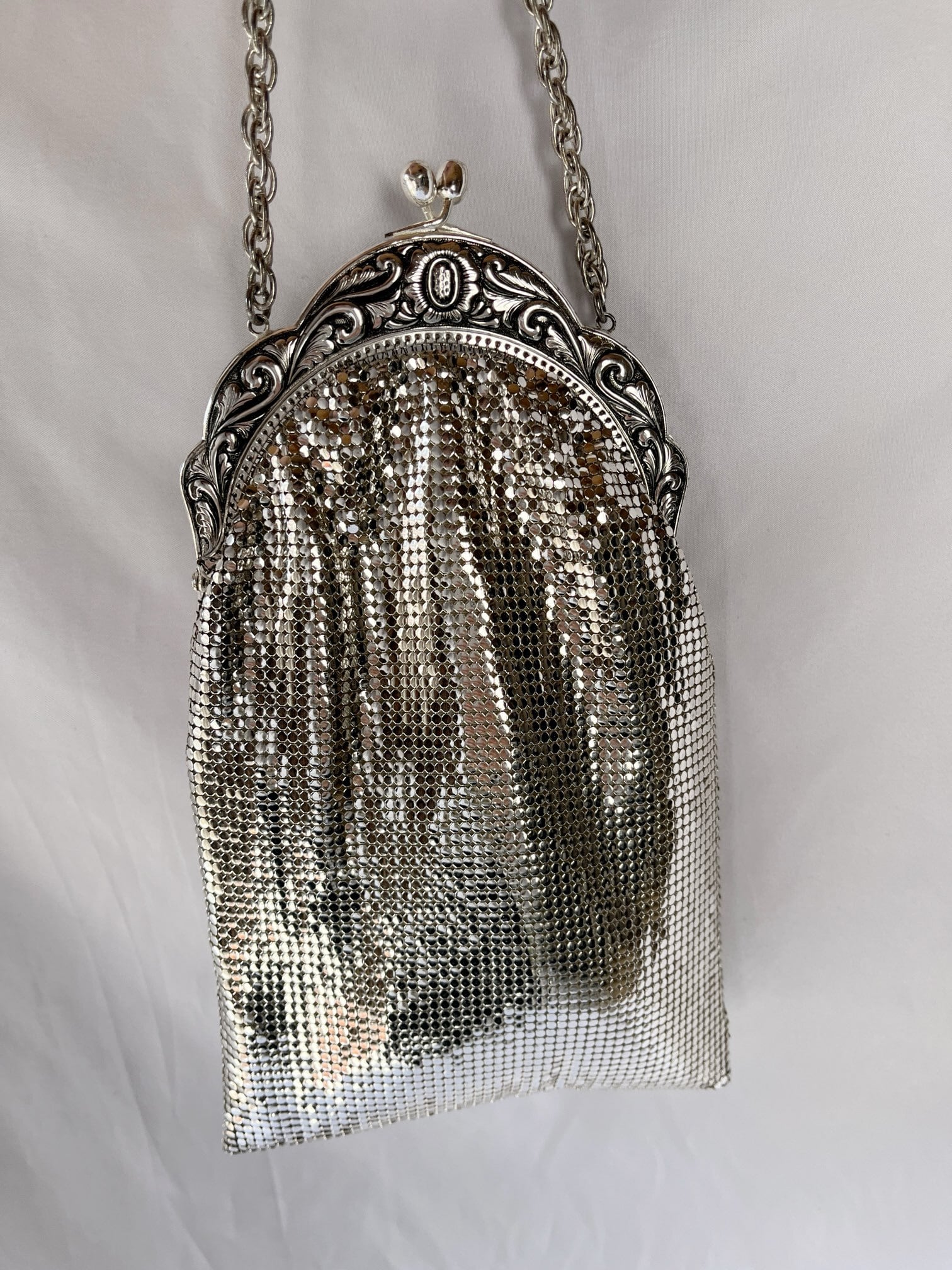 キラキラとしたシルバービーズが華やかな OROTON 80's Vintage メタルBag.