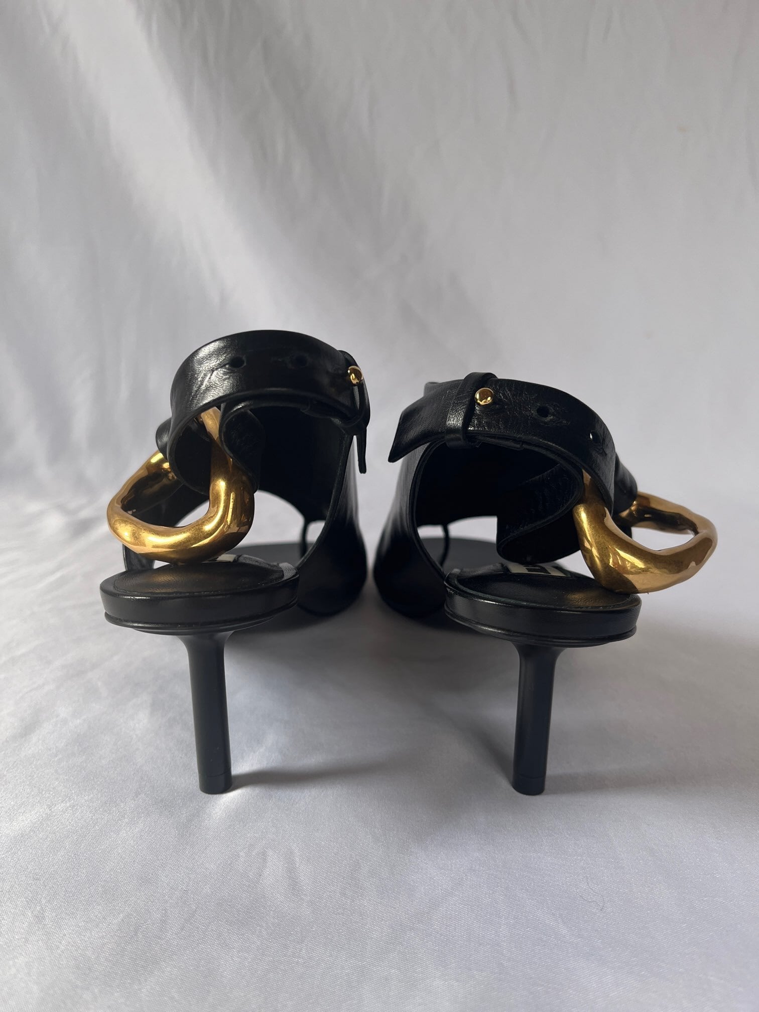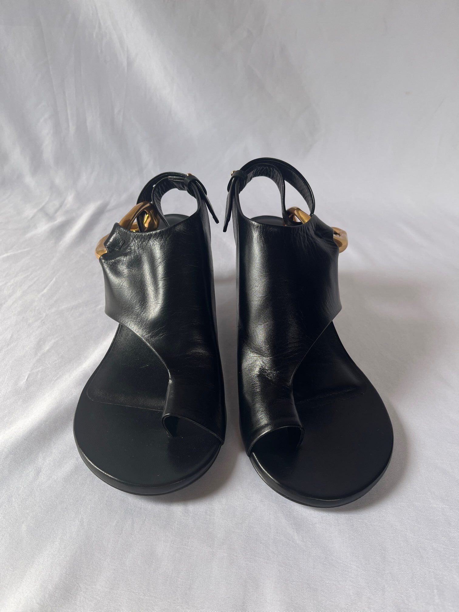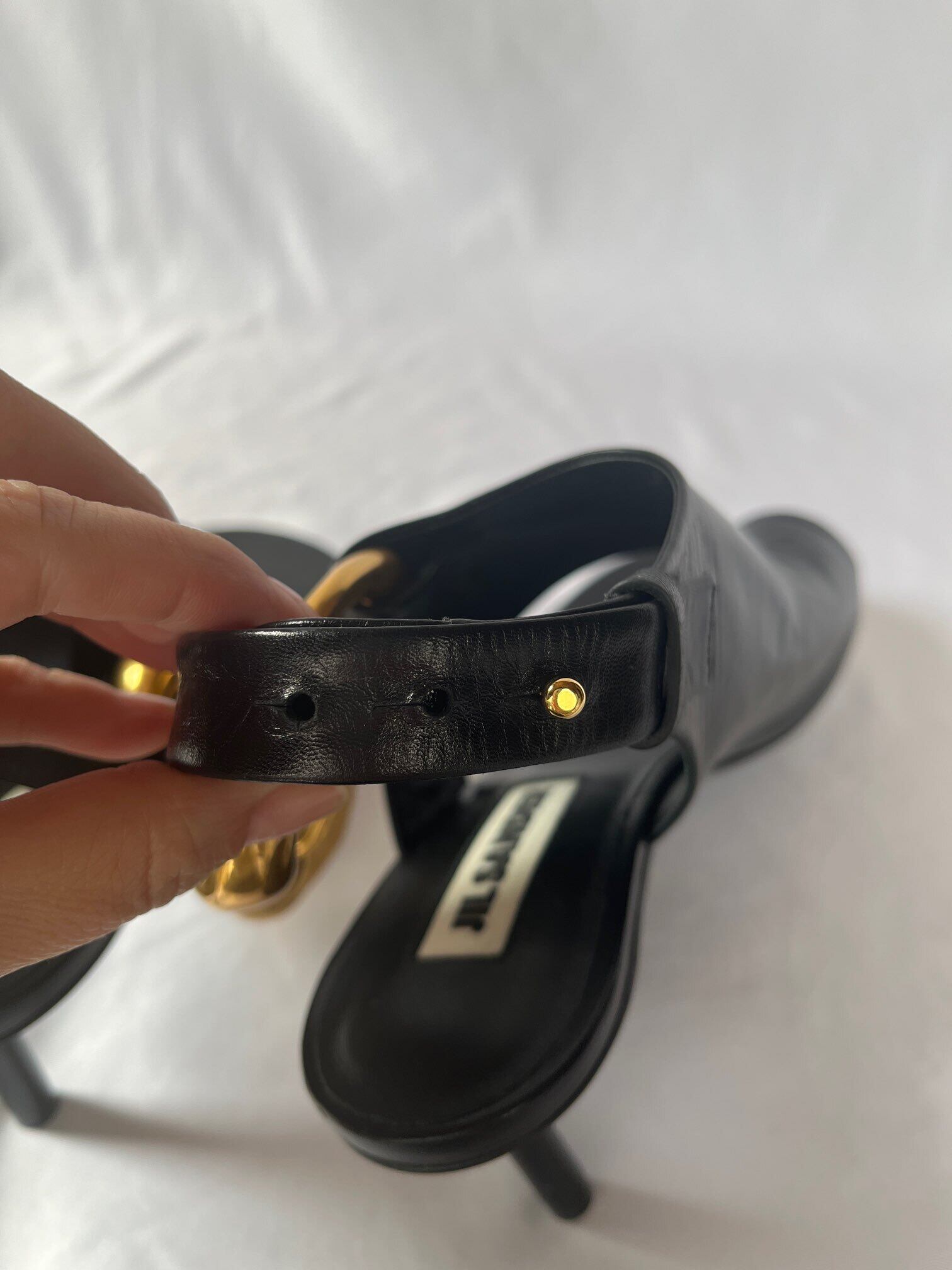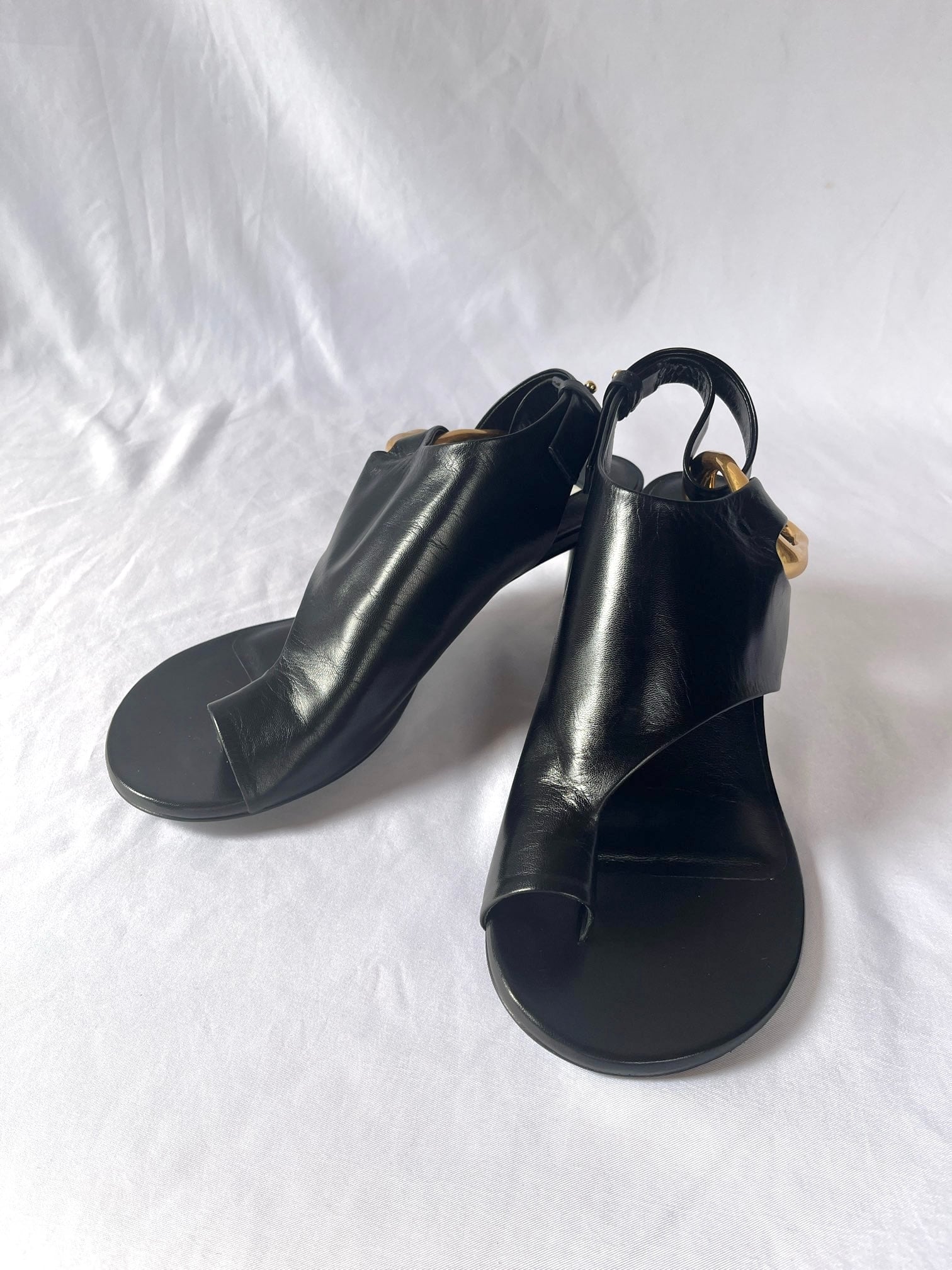 JIL SANDAR “Black Leather”Gold Metal Sandals with Box
