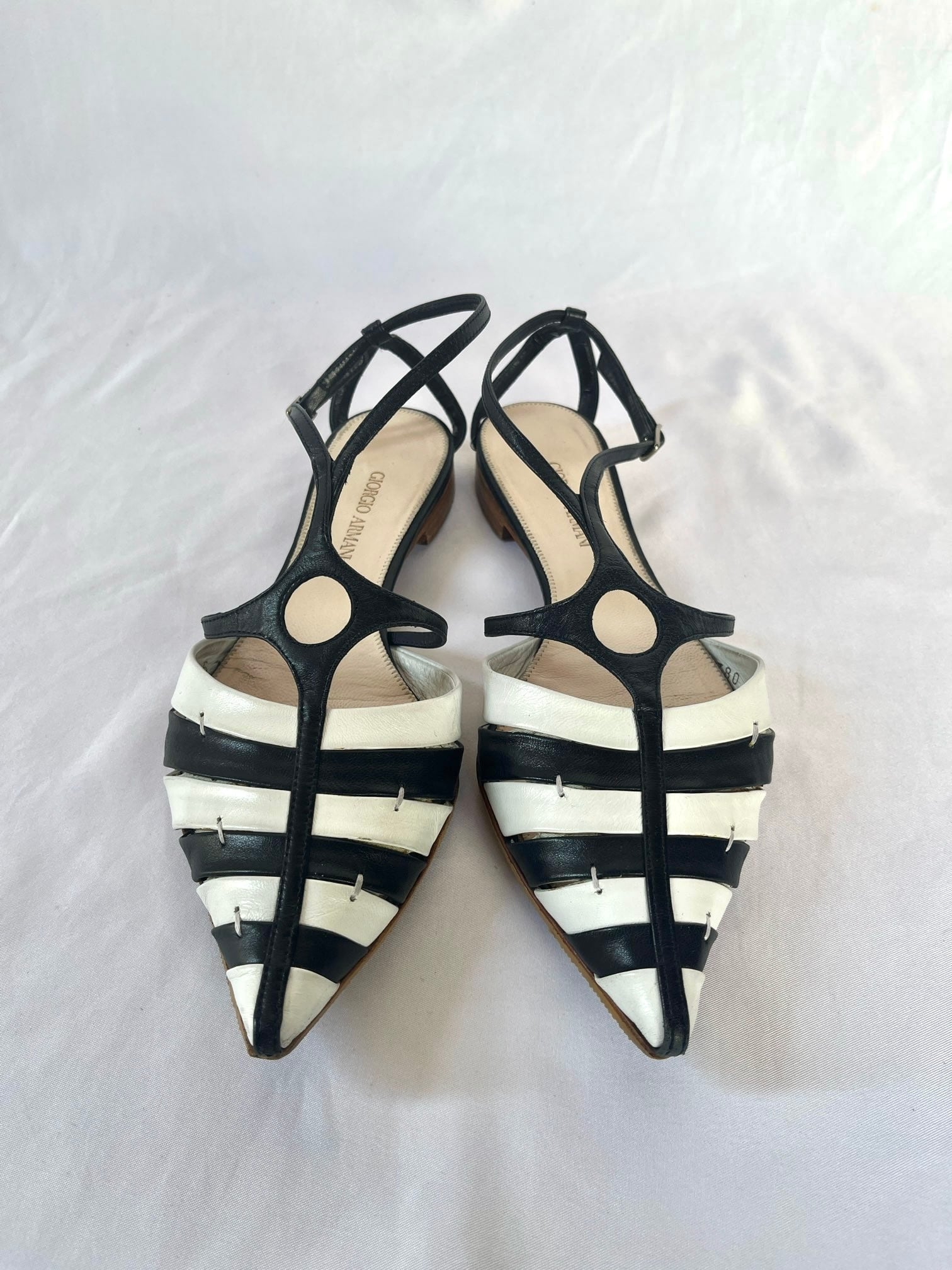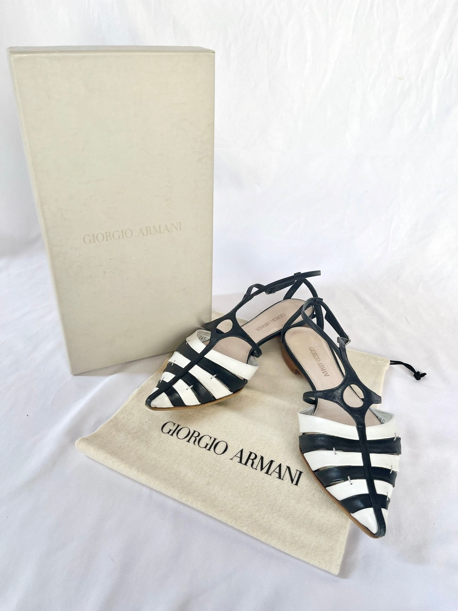 GIORGIO ARMANI “Pointed Toe”Sandals with Box-Navy×White-
