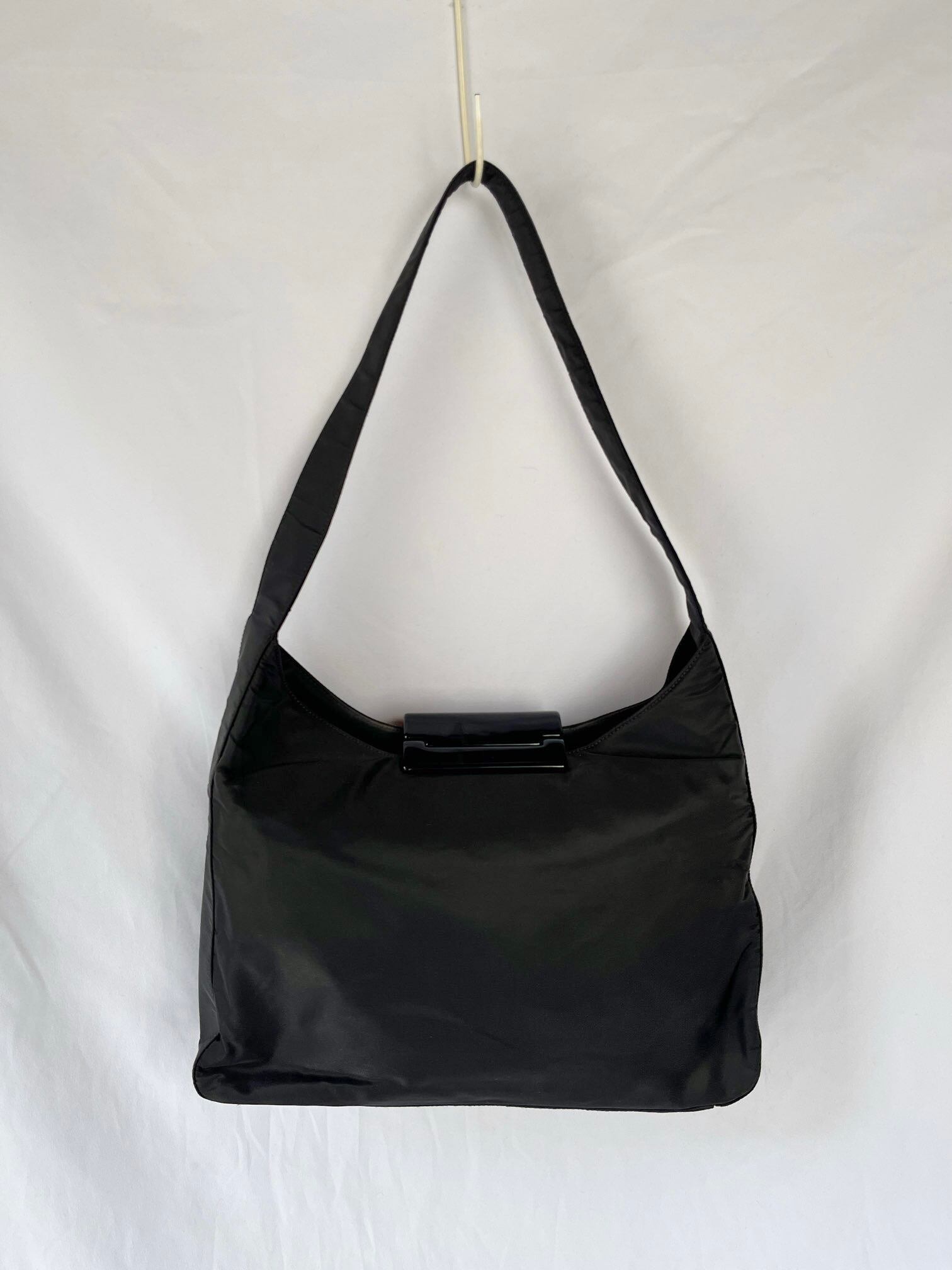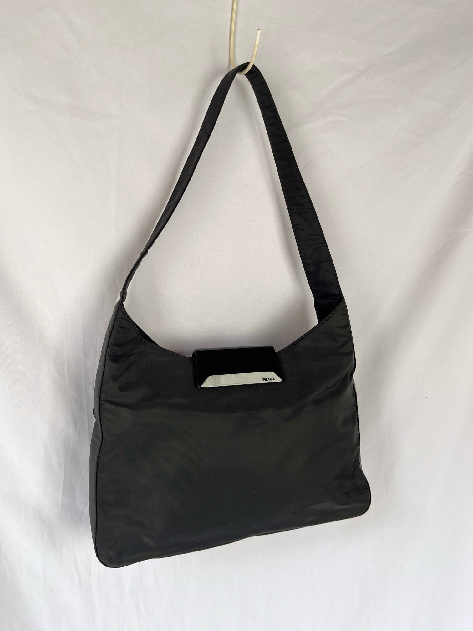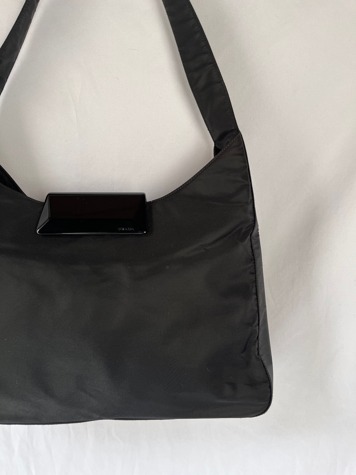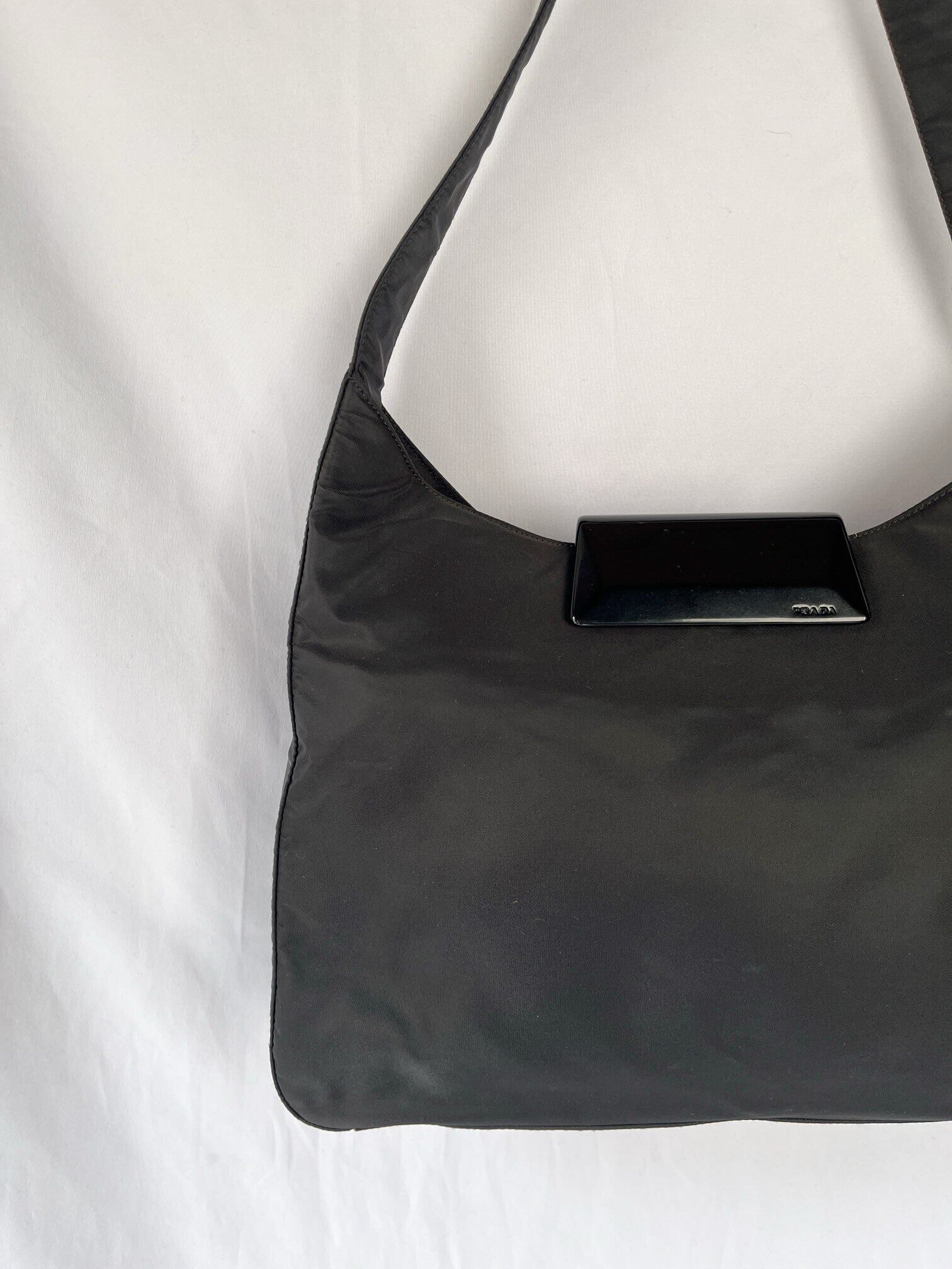 スリムなシルエットが今っぽいPRADAのBlackナイロンショルダーバッグ.