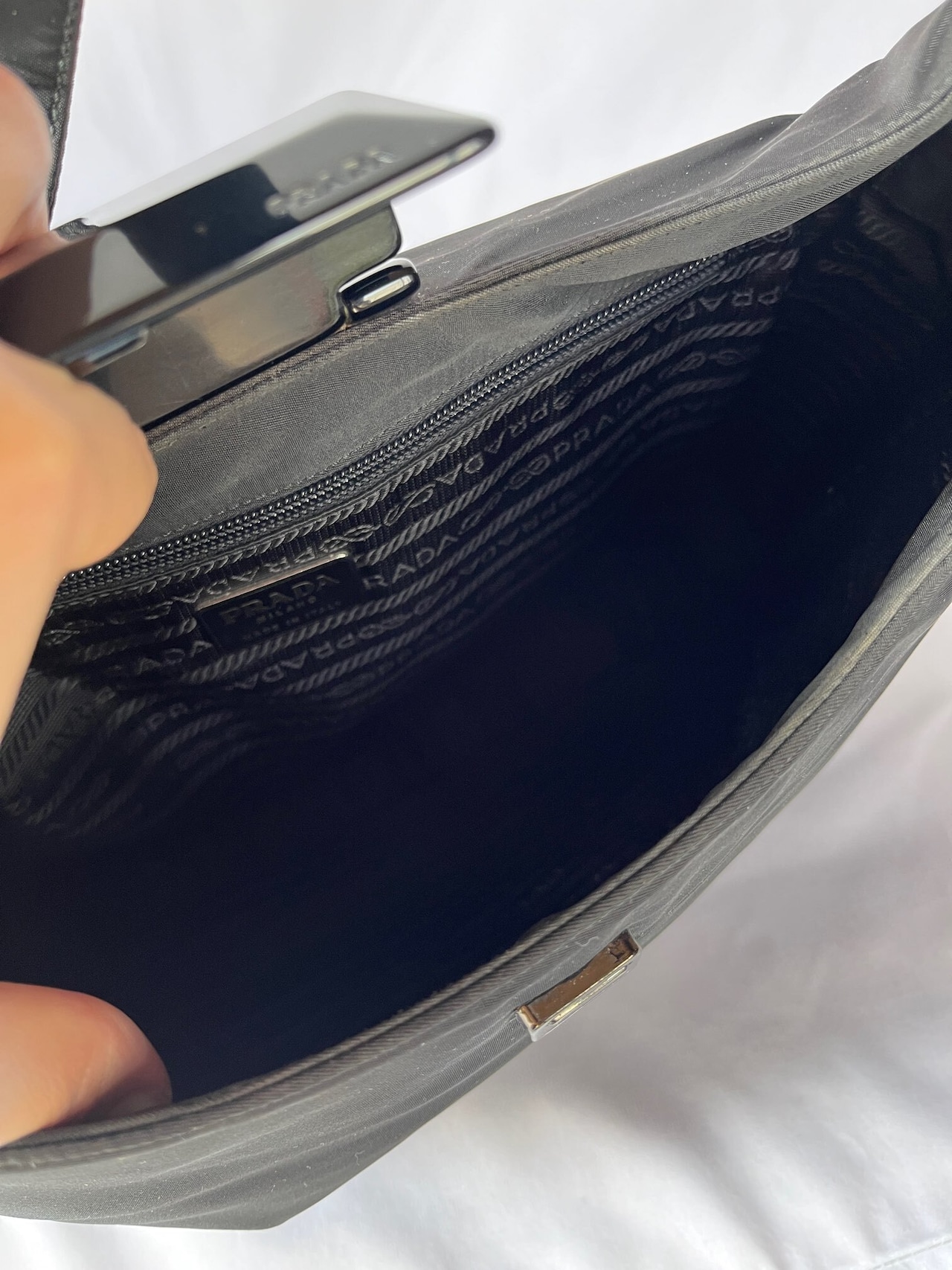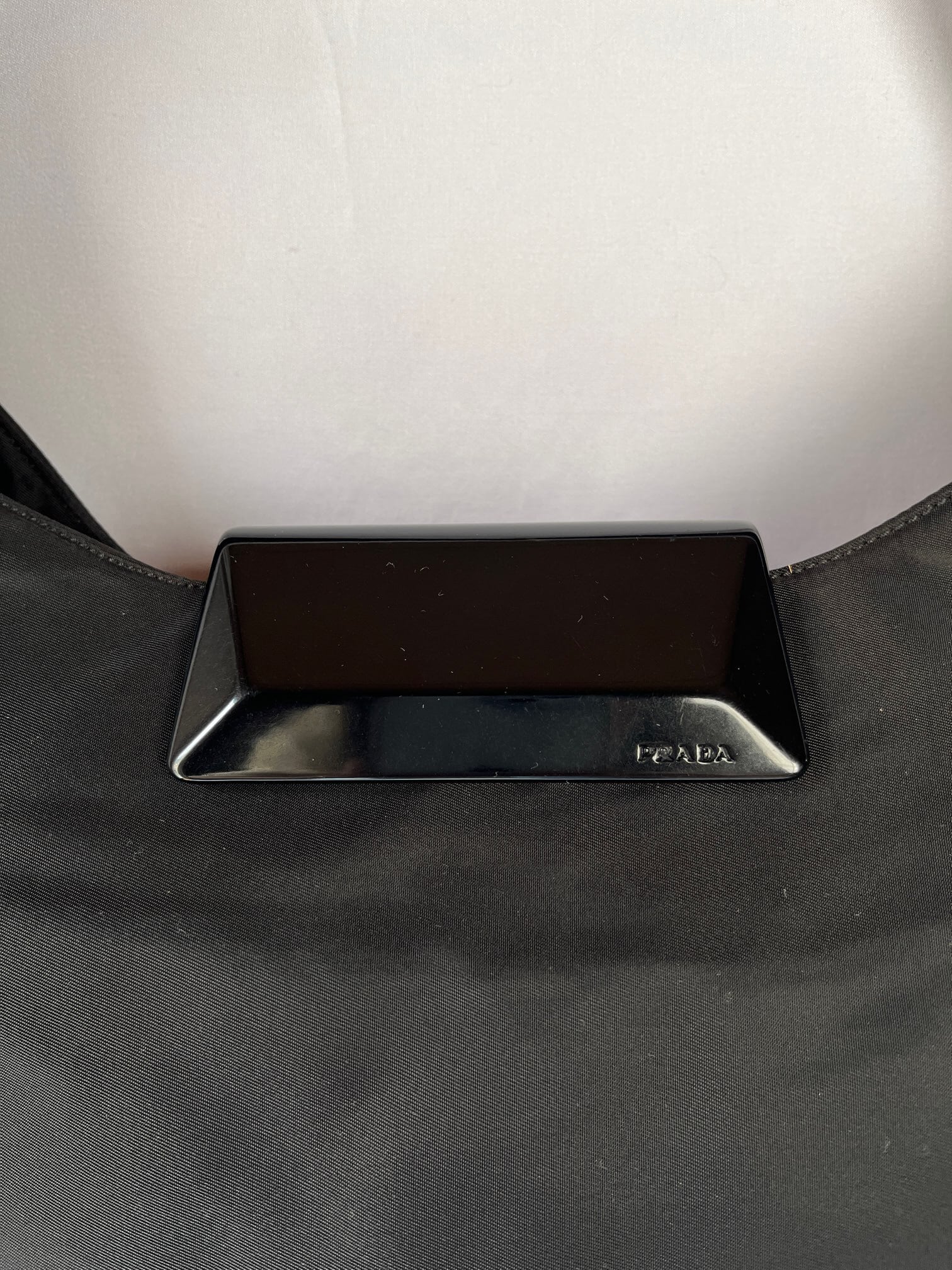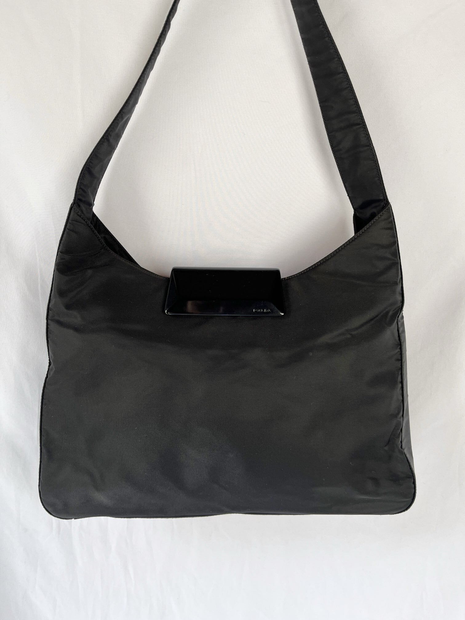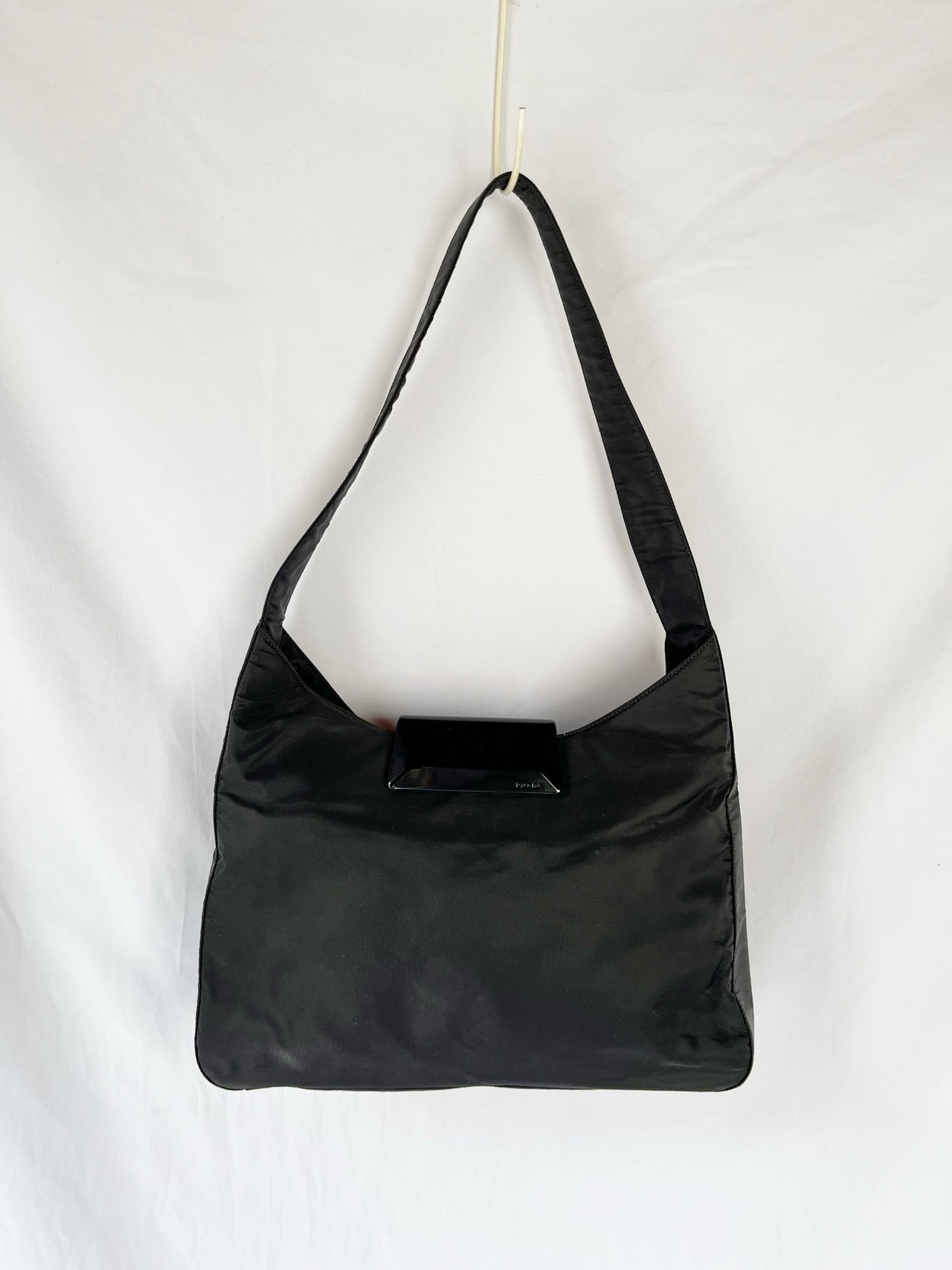 スリムなシルエットが今っぽいPRADAのBlackナイロンショルダーバッグ.