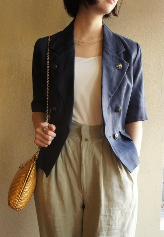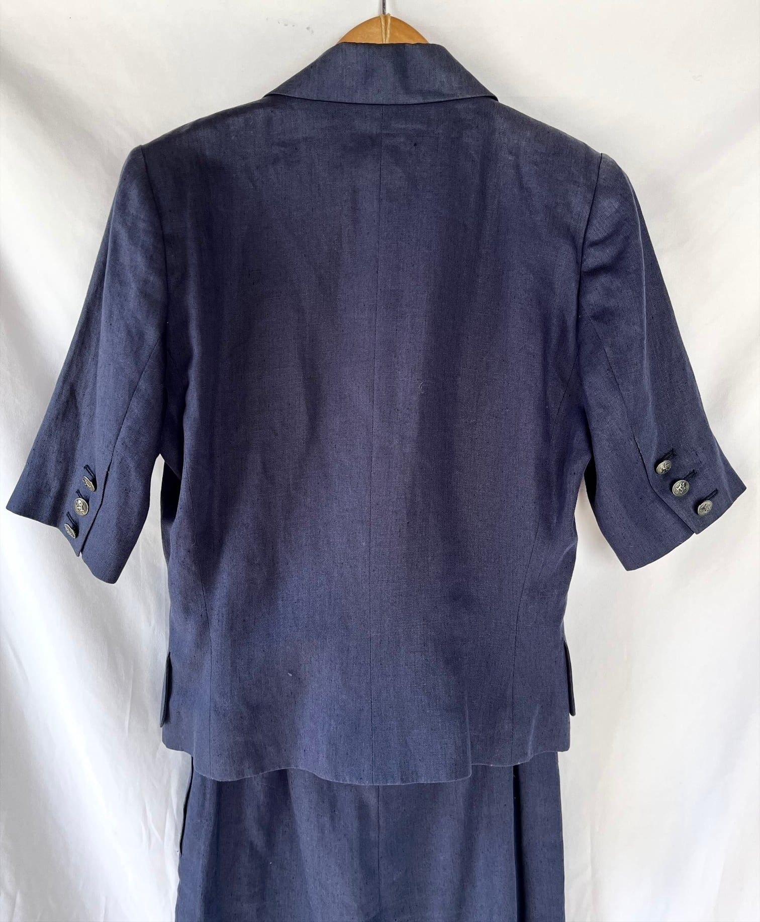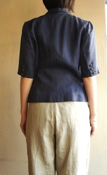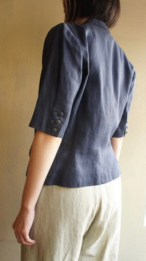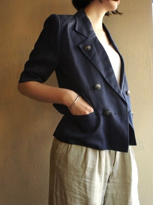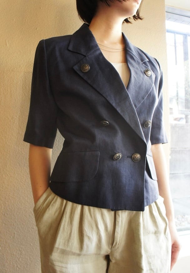 HERMES 80's Navy Linen half sleeve Jacket (&skirt)