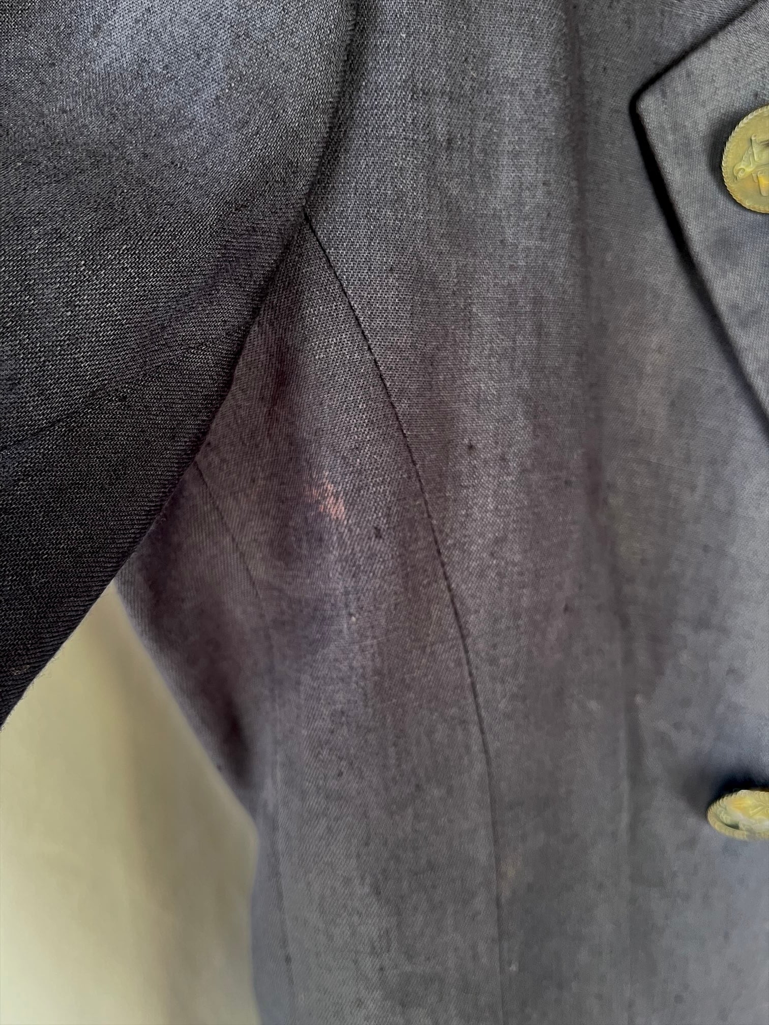 袖は長めの半袖で、三つボタンのスリットがとても上品です。。