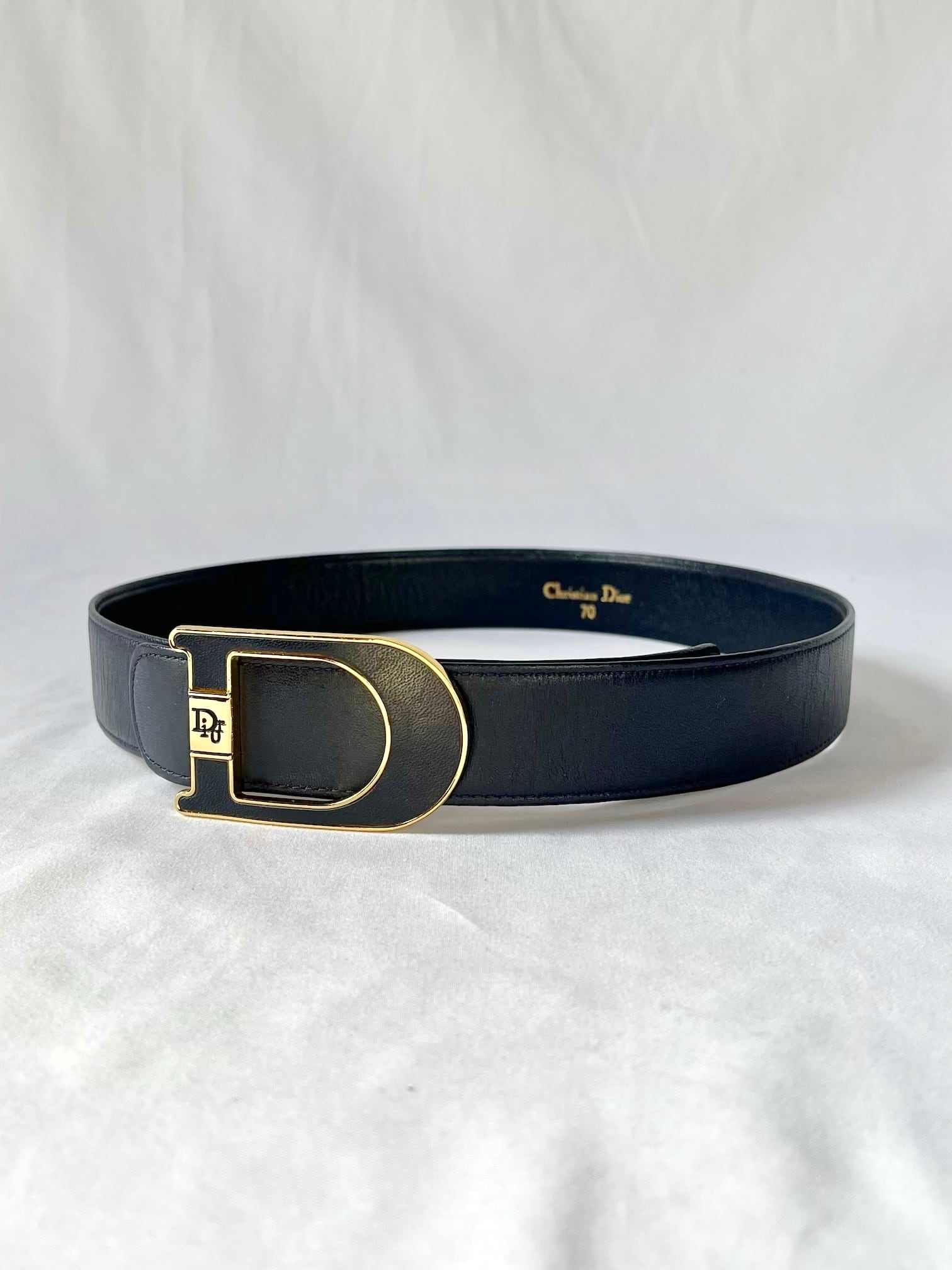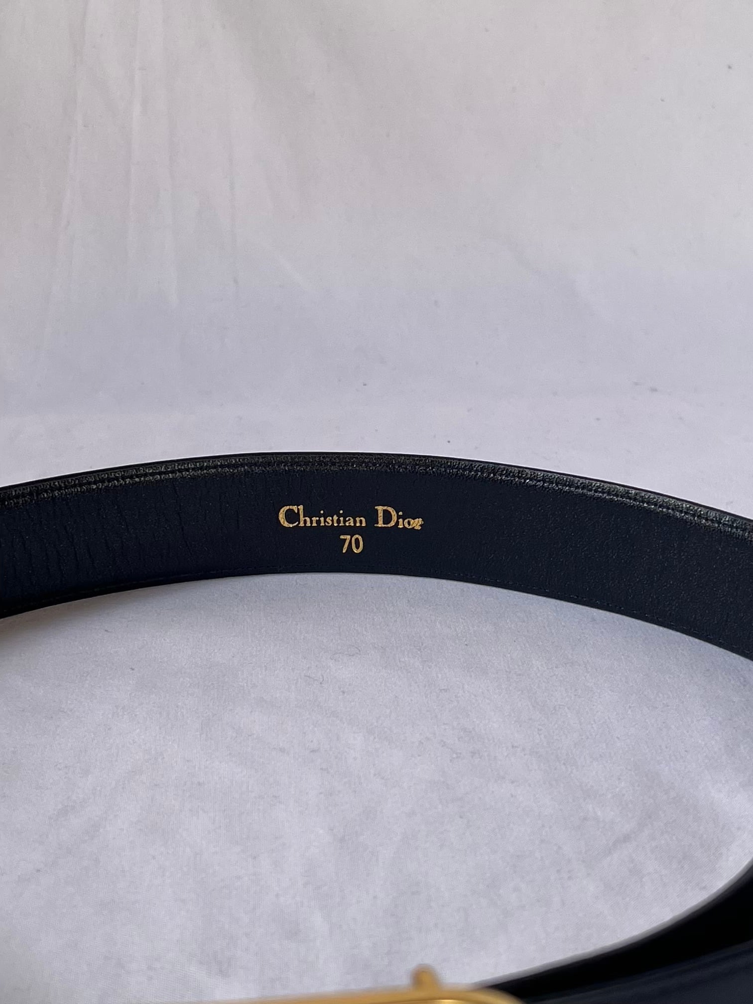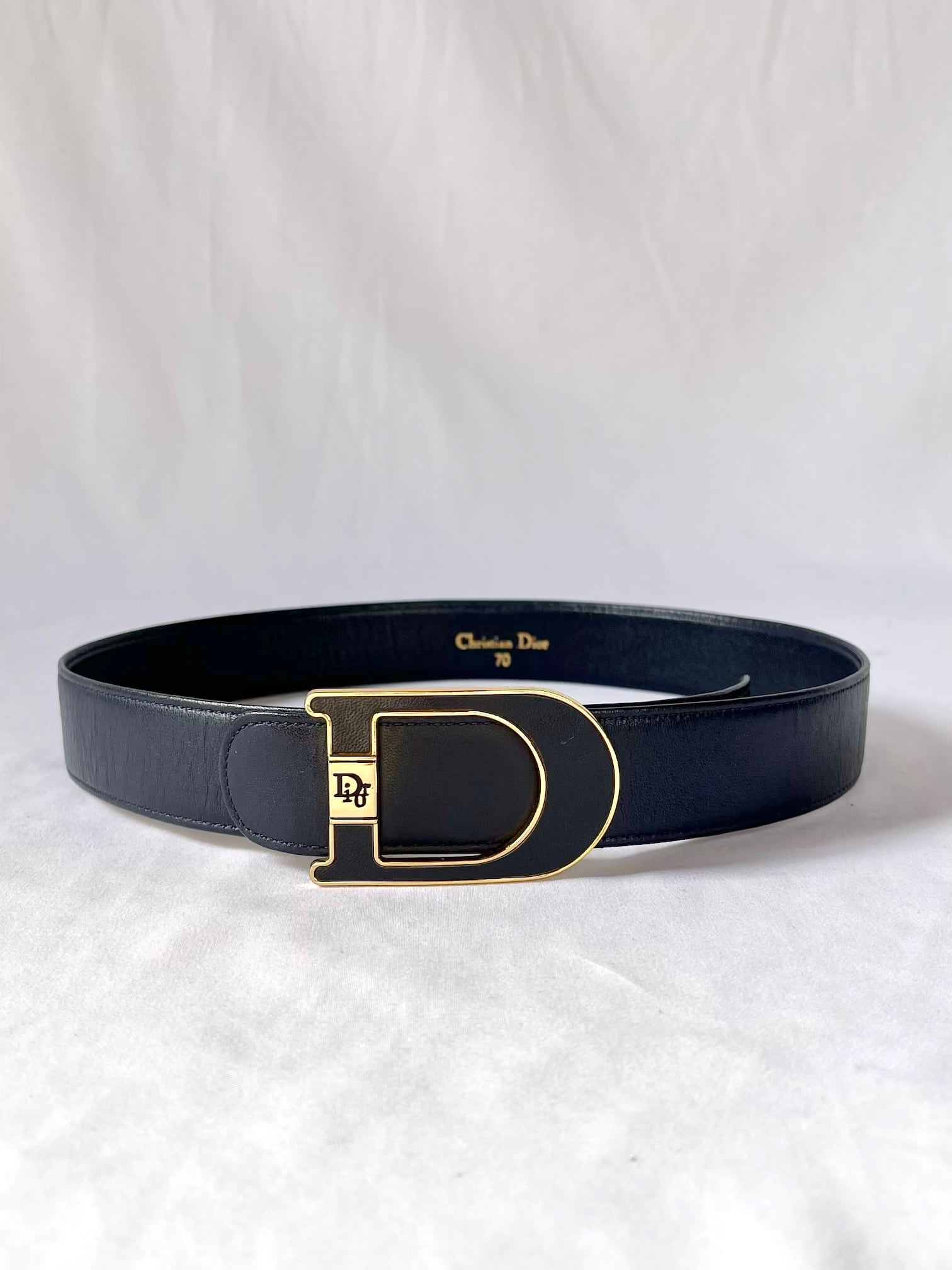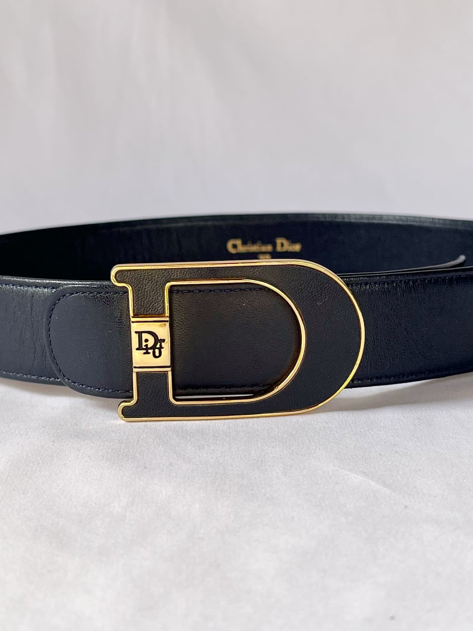 Dior 80's "D"Logo Leather Belt-Deadstock- -Navy-