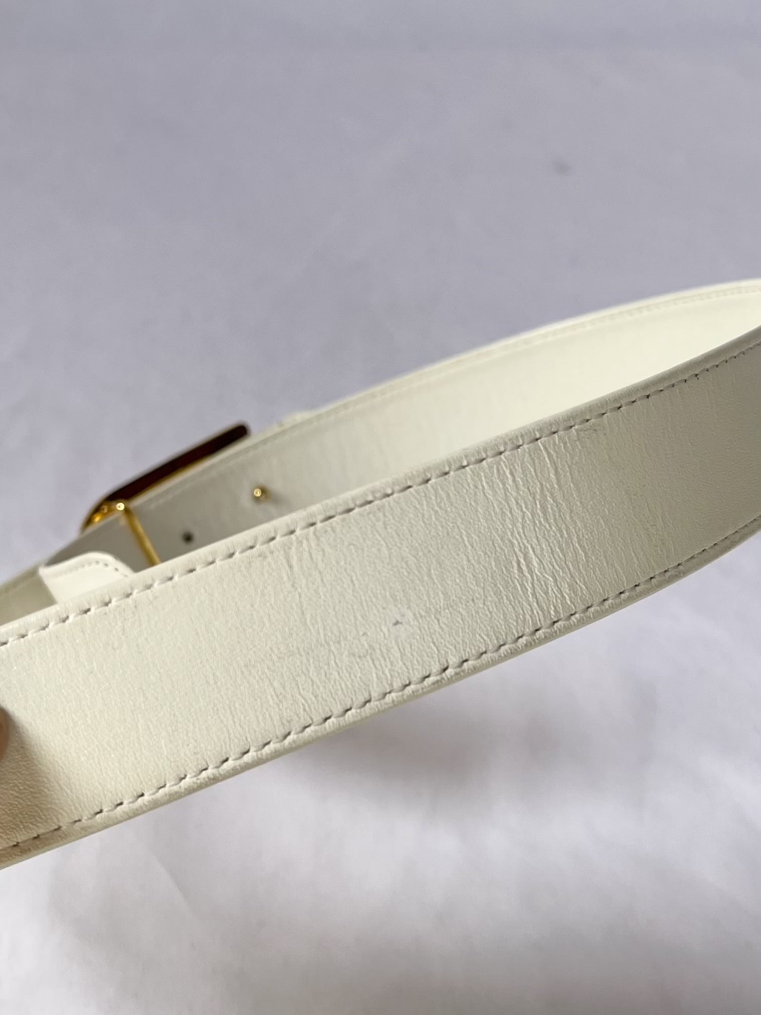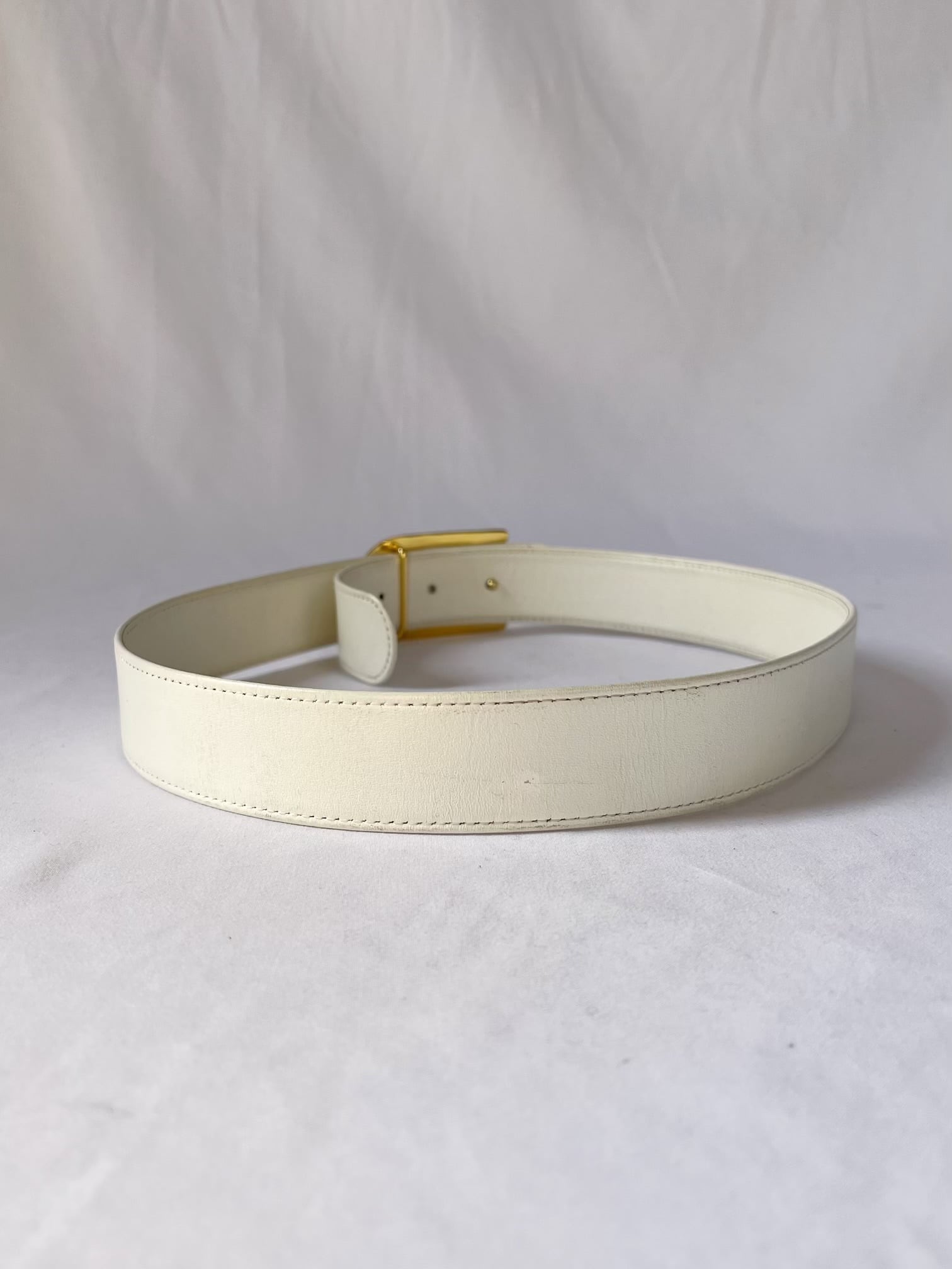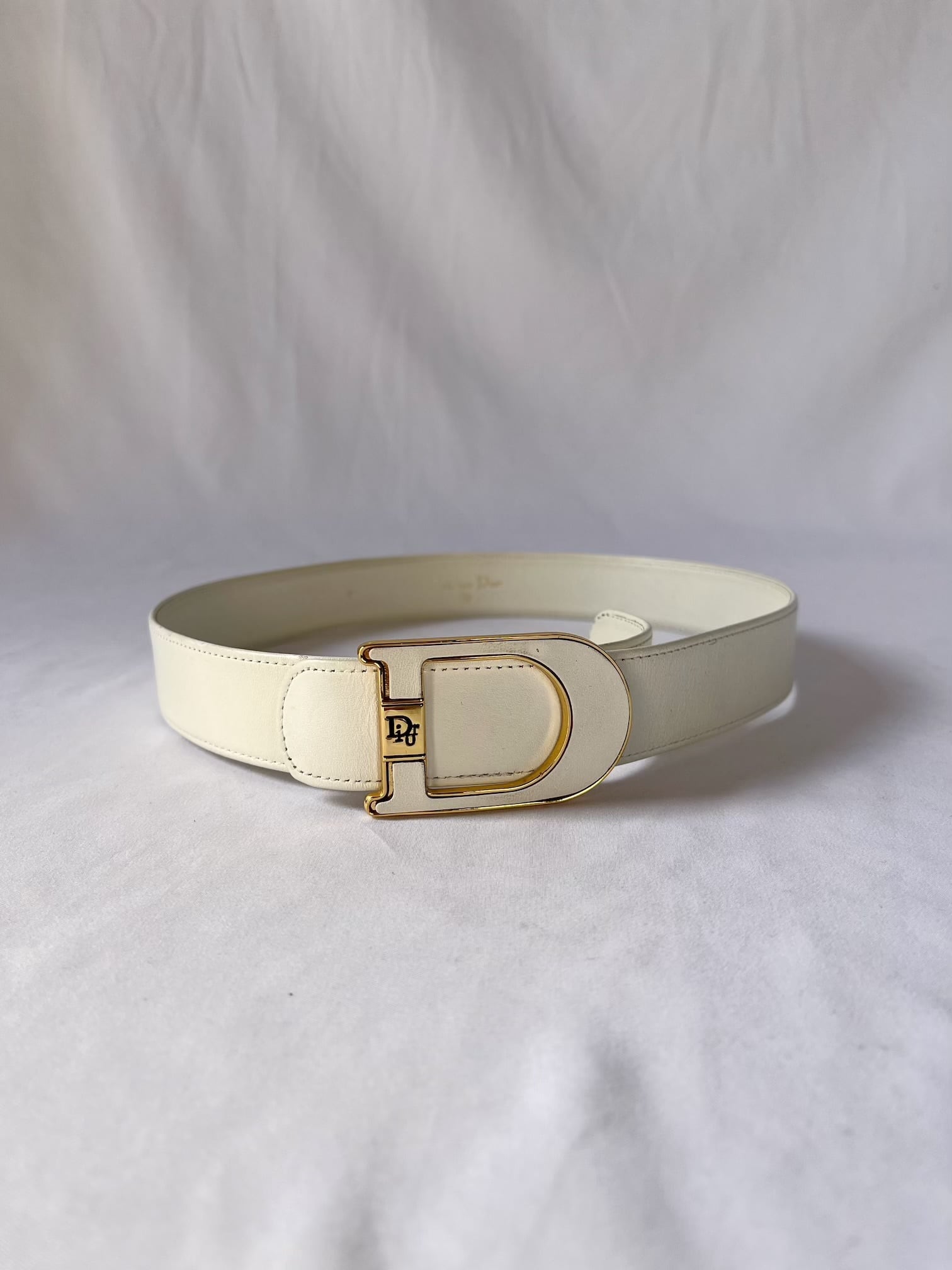 Dior 80's "D"Logo Leather Belt-Deadstock- -White-